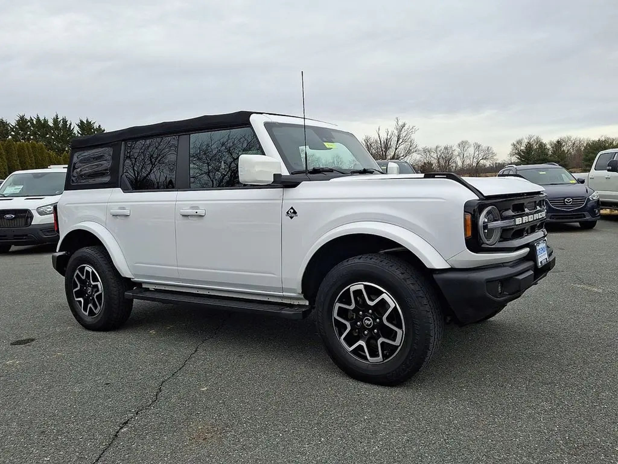 Certified. Recent Arrival! CARFAX One-Owner. This 2022 Oxford White Ford Bronco Outer Banks Advanced 4WD is well equipped and includes these features and benefits: **MARYLAND STATE INSPECTED**CERTIFIED PRE OWNED**BRONCO OUTER BANKS SOFT TOP**ONLY 23K MILES!**312A PACKAGE**PUSH BUTTON START**REAR VIEW CAMERA** . **MARYLAND STATE INSPECTED**, Bronco Outer Banks Advanced, 4D Sport Utility, 2.3L EcoBoost I-4, 10-Speed Automatic, 4WD, Oxford White, Roast w/Black Onyx w/Heated Cloth Bucket Seats, Equipment Group 312A Mid Package, Navigation system: Connected Navigation. 4WD Certification Program Details: Ford Blue Advantage: Blue Certified * 139 Point Inspection * Transferable Warranty * Vehicle History * Warranty Deductible: $100 * Roadside Assistance * Limited Warranty: 3 Month/4,000 Mile (whichever comes first) after new car warranty expires or from certified purchase date * and 11,000 FordPass Rewards Points to use toward first maintenance visit Awards: * NACTOY 2022 North American Utility of the Year Prices do not include tax, tags, title, registration, electronic filing fee, processing fee of $800 (Not required by law), and iKon (Optional $1,295.)