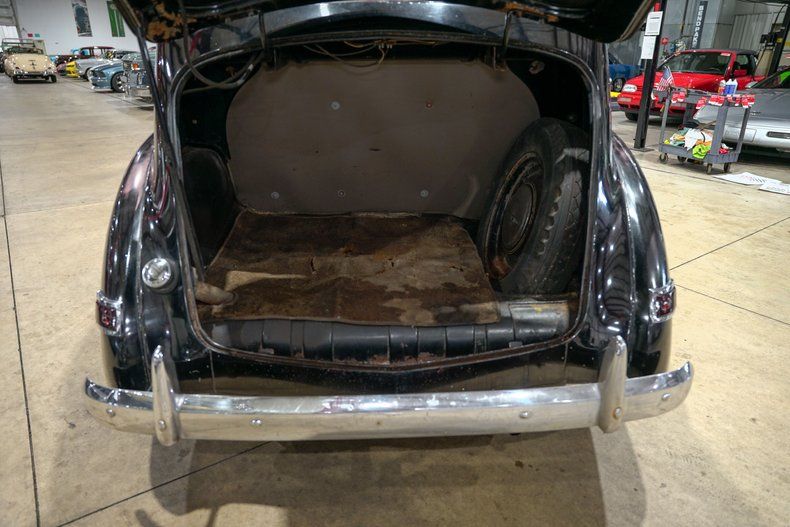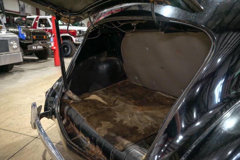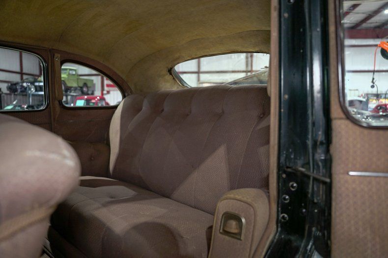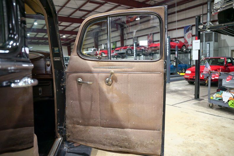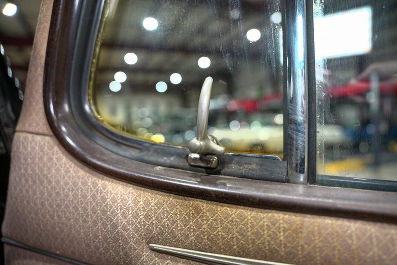 The interior remains largely original, with a rare factory clock, fuel, temperature, oil pressure, and charge gauges, along with an analog clock, all evoking the atmosphere of a true prewar driving experience. Service stickers from decades past remain on the inside of the driver's door, adding to the authenticity. This Traveler is manual in every sense, from windows to locks, offering a direct and engaging connection to its mechanical roots.