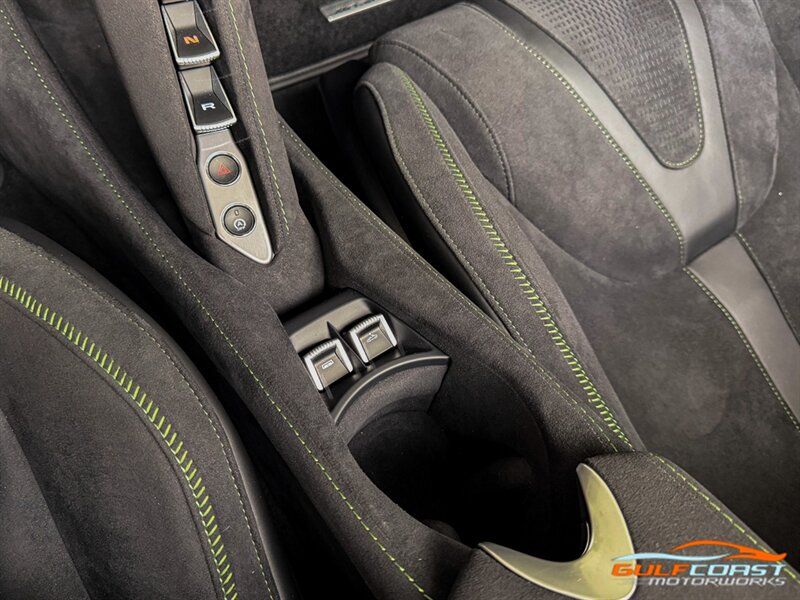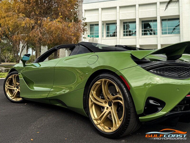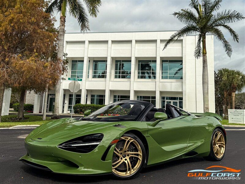 "2025 McLaren 750S Spider. MSO Bespoke Gloss Olive Green Exterior with Black Alcantara Interior. Features Include: 740 Horsepower Twin Turbo 4.0L V8 Engine, Seven-Speed Dual Clutch Seamless Shift Automatic Transmission, Carbon Ceramic Brakes, Brake Calipers in Black, 19"" Front & 20"" Rear 5 Twin Spoke Wheels in a Gold Finish, Front Lift, Active Rear Spoiler, Sports Exhaust, Key in Body Color, Americas Accessories Pack, Stealth Exhaust Finish, Hood in Body Color, Gloss Black Front Splitter, Upper Part Of Rear Bumper in Body Color, Lower Part Of Rear Bumper in Gloss Black, Headlight Surround In Gloss Black, Body Color Front Fenders, Carbon Fiber Fender Louvers, Rear Spoiler in Body Color, Stealth Badge Pack, Power Retractable Hard Top, LED Headlights & Tail Lights, LED DRLs, Front & Rear Parking Sensors, Power Folding Outside Mirrors, Soft Close Door Latching, Digital Instrument Cluster, Black Leather Wrapped Steering Wheel, Shift Paddles, Carbon Fiber Steering Wheel Trim, Performance Interior, Mantis Green Stitching, Seat Belts in Black, Manual Adjustable Seats, Selectable Drive Modes, Launch Control, Leather Dashboard, Alcantara Headliner, Touchscreen Infotainment with Bowers & Wilkins Audio System, 360 Degree Park Assist, Dual Zone Automatic Climate Control, Smartphone Integration, Navigation, Bluetooth. Priced at only $379,995. Financing available. We ship worldwide. We pay top dollar for lightly used sports cars! Call or text our Product Specialists today at 239-522-2262 or email us at sales@gcmworks.com. Fees and Taxes: $1199.00 Doc Fee on all Purchases. Out of state buyers are responsible for all state, county, city taxes and fees, as well as title/registration fees in the state that the vehicle will be registered. -- INSTALLED FEATURES: Air filtration, Front air conditioning: automatic climate control, Front air conditioning zones: dual, Humidity/dewpoint sensors, Airbag deactivation: occupant sensing passenger, Front airbags: dual, Knee airbags: dual front, Side airbags: head protection chambers, Antenna type: diversity / element, Auxiliary audio input: Bluetooth / iPod/iPhone / USB, Radio: FM / HD radio / touch screen display / voice operated, Radio data system, Satellite radio: SiriusXM, Speed sensitive volume control, Total speakers: 4, Watts: 240, ABS: 4-wheel, Brake drying, Braking assist, Cornering brake control, Electronic brakeforce distribution, Electronic parking brake: auto off, Emergency braking preparation, Front brake type: carbon ceramic disc, Painted brake calipers, Power brakes, Rear brake type: carbon ceramic disc, Center console trim: faux suede, Dash trim: faux suede, Door sill trim: faux suede, Door trim: faux suede, Floor material: carpet, Foot pedal trim: aluminum, Headliner trim: faux suede, Interior accents: aluminum, Steering wheel trim: leather, Ambient lighting: color-adjustable, Cargo area light, Center console: front console with armrest and storage, Courtesy lights: door, Cruise control, Cupholders: 2, Footwell lights, Multi-function remote: proximity entry system / trunk release, One-touch windows: 2, Overhead console: front, Power outlet(s): 12V front / USB front / USB-C front, Power steering: variable/speed-proportional, Push-button start, Reading lights: front, Rearview mirror: auto-dimming, Steering wheel: power tilt and telescopic, Steering wheel mounted controls: cruise control / paddle shifter, Storage: door pockets, Vanity mirrors: dual illuminating, Exhaust: dual tip, Exhaust tip color: stainless steel, Front bumper color: body-color, Grille color: black, Ground effects/lower spoilers, Headlight bezel color: black, Mirror color: body-color, Rear bumper color: body-color, Rear spoiler: electronically controlled / wing, Rear spoiler color: body-color, Side door type: butterfly / soft close, Window trim: black, Infotainment: McLaren Infotainment System, Infotainment screen size: 8 in., Smartphone integration: Apple CarPlay, Clock, Compass, Customizable instrument cluster, Digital odometer, External temperature display, Fuel economy display: MPG / range, Gauge: tachometer, Instrument cluster screen size: 8 in., Multi-function display, Trip odometer, Warnings and reminders: coolant temperature warning / lamp failure / low battery / low fuel level / low oil pressure / maintenance due, Daytime running lights: LED, Exterior entry lights: approach lamps, Headlights: auto delay off / auto on/off / LED, Rear fog lights, Taillights: LED, Side mirror adjustments: power / power folding / reverse gear tilt, Side mirrors: heated, Auto start/stop, Battery: lithium ion, Battery saver, Drive mode selector, Mid-mounted engine, Performance exhaust, Convertible rear window: glass, Convertible roof: power retractable hard top, Convertible roof wind blocker, Automatic hazard warning lights, Camera system: rearview, Child seat anchors, Crumple zones: front / rear, Emergency interior trunk release, Impact sensor: door unlock / fuel cut-off / post-collision safety system, Parking sensors: front / rear, Rearview monitor: in dash, Rollover protection system, Emergency locking retractors: front, Front seatbelts: 3-point, Seatbelt force limiters: front, Seatbelt pretensioners: front, Seatbelt warning sensor: front, Driver seat manual adjustments: 4 / reclining, Driver seat power adjustments: 2 / height, Front headrests: 2 / integrated, Front seat type: sport bucket, Passenger seat manual adjustments: 4 / reclining, Upholstery: faux suede, Anti-theft system: alarm / anti-tow sensor / interior motion sensor / vehicle immobilizer, Power door locks: anti-lockout / auto-locking, Hill holder control, Stability control, Traction control, Active suspension, Driver adjustable suspension: ride control, Front shock type: gas, Front spring type: coil, Front struts, Front suspension classification: independent, Front suspension type: double wishbone, Rear shock type: gas, Rear spring type: coil, Rear suspension classification: independent, Rear suspension type: double wishbone, Susp