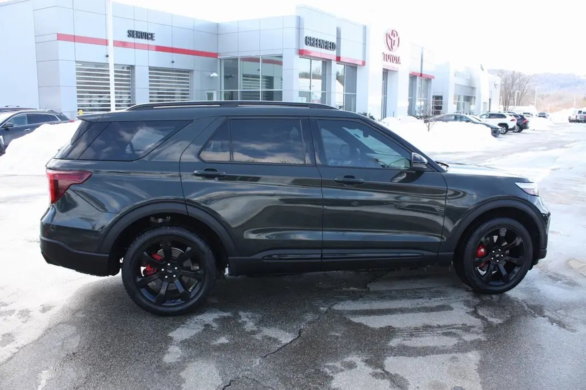 ***Dealer Documentation Fee ($549) Included*** KEY FEATURES: Clean CARFAX, Complete Service Records, Regular Oil Changes, One Owner Vehicle, No Accidents Reported, 4G LTE Wi-Fi Hotspot Credit, Equipment Group 401A, Ford Co-Pilot360 Assist, ST High Package, ST Street Pack. The 2023 Ford Explorer ST in striking Forged Green Metallic combines commanding athletic style with premium performance and advanced technology for every journey. It features a twin panel moonroof, power liftgate, second row heated seats, heated steering wheel, and a power tilt/telescoping steering column for luxurious comfort, while SYNC 3 with Voice-Activated Touchscreen Navigation System, SiriusXM, wireless charging pad, and seamless Apple CarPlay and Android Auto keep you connected. Performance shines through performance front and rear brakes, speed-sensitive and front rain-sensing wipers, and a suite of driver assists including Speed Sign Recognition, Reverse Brake Assist, Evasive Steering Assist, front parking sensors, and a 360-Degree Camera with Split View. Convenience includes remote keyless entry, Universal Garage Door Opener, FordPass Connect with 4G LTE Wi-Fi Hotspot Credit, exterior parking camera, and low tire pressure warning for confident everyday driving in this powerful and sophisticated three-row SUV. Come in for a test drive today at 1 Main Street in Greenfield, Ma off of exit 43 (Previously exit 26) on I-91. Proudly serving Franklin & Hampshire County. Including Greenfield, Montague, Millers Falls, Erving, Gill, Northfield, Deerfield, Sunderland, Bernardston, Hadley, Amherst and Northampton, Massachusetts. Minutes from Brattleboro, VT & Keene, NH. Price excludes, tax, title, and registration fees.