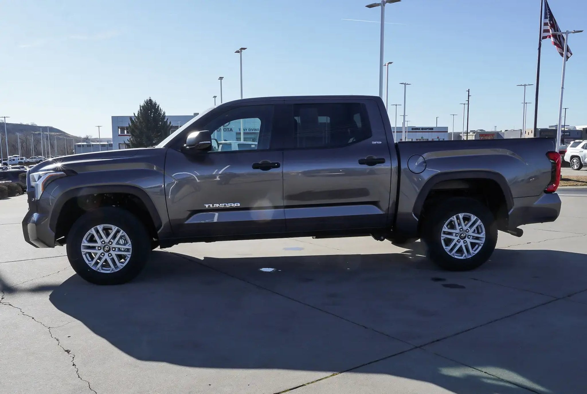 Only 200 Miles! Delivers 22 Highway MPG and 17 City MPG! This Toyota Tundra 4WD delivers a Twin Turbo Regular Unleaded V-6 3.4 L/210 engine powering this Automatic transmission. SR5 CONVENIENCE PACKAGE -inc: 122L Fuel Tank, Blind Spot Monitor w/Lane Change Assist, Parking Support Alert/Brake, HEATED POWER BLACK OUTSIDE MIRRORS -inc: LED turn signal, Blind Spot Monitor, ALL WEATHER FLOOR LINERS (TMS). This Toyota Tundra 4WD Features the Following Options Wheels w/Silver Accents, Vehicle Stability Control (VSC) Electronic Stability Control (ESC), Variable Intermittent Wipers, Urethane Gear Shifter Material, Trip Computer, Transmission: 10-Speed Electronic Controlled Auto -inc: intelligence (ECT-i), sequential shift mode, uphill/downhill shift logic and TOW/HAUL driving modes, Transmission w/Driver Selectable Mode and Oil Cooler, Trailer Wiring Harness, Tires: 265/70R18, Tire Pressure Monitor System (TPMS) Low Tire Pressure Warning. Visit Us Today For a must-own Toyota Tundra 4WD come see us at Tony Divino Toyota|777 West Riverdale Rd, Riverdale, UT 84405. Just minutes away! * Estimated Monthly Payment will depend on vehicle make and model and will be determined upon actual vehicle inspection. All payments are estimates. Tax, title, registration and documentation fee ($349) are extra.* While every reasonable effort is made to ensure the accuracy of this information, we are not responsible for any errors or omissions contained on these pages. Please verify any information in question with Tony Divino Toyota.
