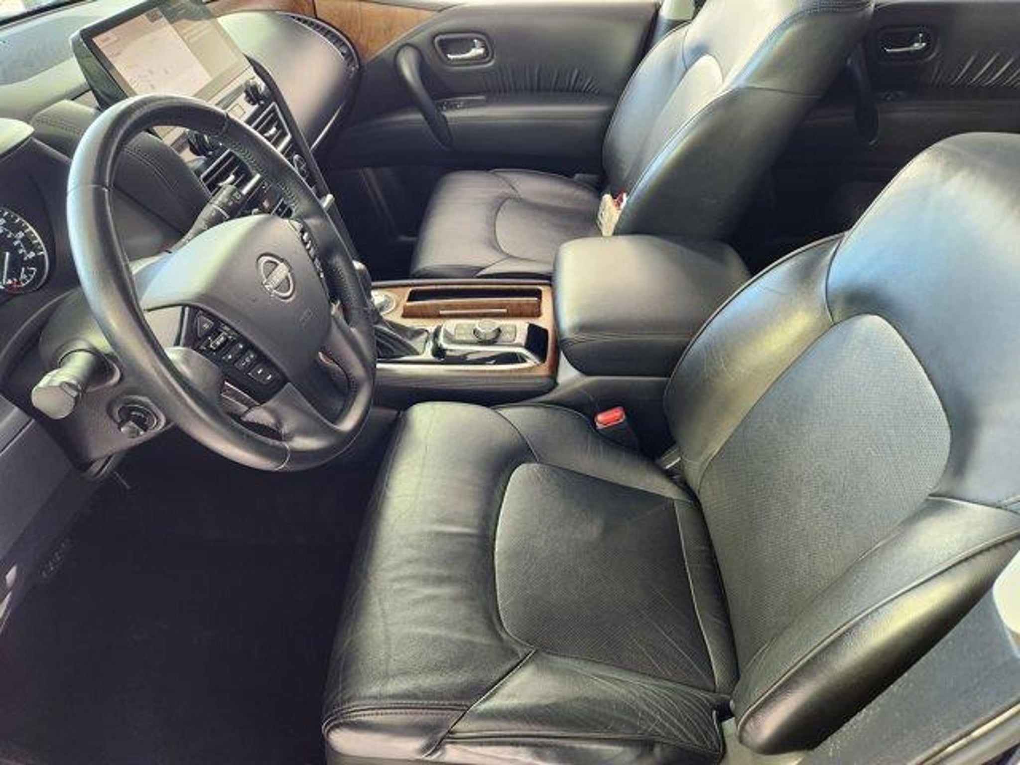 Recent Arrival! Clean CARFAX. CARFAX One-Owner. 4WD with 2-Speed Transfer Case (4Hi / 4Lo) 5.6L Endurance V8 Engine 7-Speed Automatic Transmission Trailer Tow Package Integrated Trailer Brake Controller Trailer Sway Control Hill Start Assist Hill Descent Control Nissan Safety Shield 360 (Automatic Emergency Braking with Pedestrian Detection Blind Spot Warning Rear Cross Traffic Alert Lane Departure Warning High Beam Assist) Intelligent Forward Collision Warning Intelligent Lane Intervention Intelligent Blind Spot Intervention Intelligent Around View Monitor (360 Camera) Front and Rear Parking Sensors Front and Side Airbags with Side Curtain Airbags Tire Pressure Monitoring System LED Headlights and Fog Lights 20 Alloy Wheels Power Liftgate Power-Folding Heated Side Mirrors with Turn Signals Roof Rails Intelligent Key with Push Button Start Remote Engine Start Memory Driver Seat Leather-Appointed Seating Heated Front and Second Row Seats Heated Leather-Wrapped Steering Wheel Power Driver and Passenger Seats Power-Adjustable Pedals Tri-Zone Automatic Climate Control Rear Air Conditioning with Microfilter Wireless Phone Charging NissanConnect 12.3 Touchscreen Display Apple CarPlay Android Auto Bluetooth Hands-Free Connectivity SiriusXM Capability Navigation System Bose Premium Audio System USB-A and USB-C Ports Multiple 12V Power Outlets 120V Power Outlet Rear Seat USB Ports Power Sliding Second Row Seats Split-Folding Third Row Seat Auto-Dimming Rearview Mirror with HomeLink Carpeted Floor Mats Cargo Area Protection Captains Chairs This 2023 Nissan Armada SL 4WD delivers powerful V8 performance true four-wheel-drive capability and full-size SUV comfort. Equipped with advanced safety technologies a premium Bose audio system leather seating heated seats navigation and a 360-degree camera system its built for families road trips and towing alike. With bold styling and impressive capability the Armada offers luxury strength and space in one commanding package.. Priced below KBB Fair Purchase Price! Hermosa Blue Pearl 2023 Nissan Armada SL 4D Sport Utility 5.6L V8 DOHC 32V LEV3-ULEV125 400hp 7-Speed Automatic 4WD VISIT TO SCHEDULE TEST DRIVE!Navigation SystemCaptains Chairs Package13 Speakers6-Speaker Audio SystemAM/FM radio: SiriusXMBose 13-Speaker Premium Audio SystemPremium audio system: BoseRadio: NissanConnect w/SiriusXMAir ConditioningAutomatic temperature controlFront dual zone A/CRear air conditioningRear window defrosterMemory seatPower driver seatPower steeringPower windowsRemote keyless entrySteering wheel memorySteering wheel mounted audio controlsAuto-leveling suspensionFour wheel independent suspensionSpeed-sensing steeringTraction control4-Wheel Disc BrakesABS brakesAnti-whiplash front head restraintsDual front impact airbagsDual front side impact airbagsEmergency communication system: NissanConnect ServicesFront anti-roll barKnee airbagLow tire pressure warningOccupant sensing airbagOverhead airbagRear anti-roll barPower moonroofPower LiftgateBrake assistElectronic Stability ControlExterior Parking Camera RearAuto High-beam HeadlightsDelay-off headlightsFront fog lightsFully automatic headlightsPanic alarmSecurity systemSpeed controlAuto-dimming door mirrorsBumpers: body-colorHeated door mirrorsPower door mirrorsSpoilerTurn signal indicator mirrors3rd Row Carpeted Floor Mats - Captain SeatAuto tilt-away steering wheelAuto-dimming Rear-View mirrorDriver door binDriver vanity mirrorFront reading lightsGarage door transmitter: HomeLinkHeated steering wheelIlluminated entryLeather Shift KnobNissanConnect featuring Apple CarPlay and Android AutoOutside temperature displayOverhead consolePassenger vanity mirrorRear reading lightsRear seat center armrestTachometerTelescoping steering wheelTilt steering wheelTrip computerVoltmeter2nd Row Captains Chairs2nd Row >