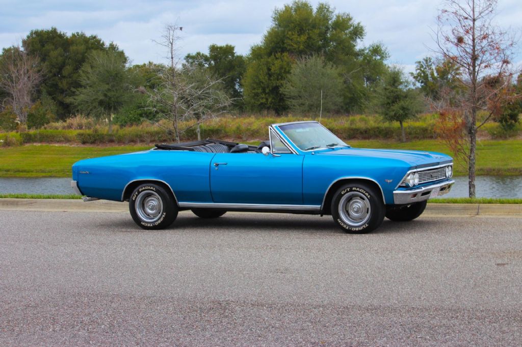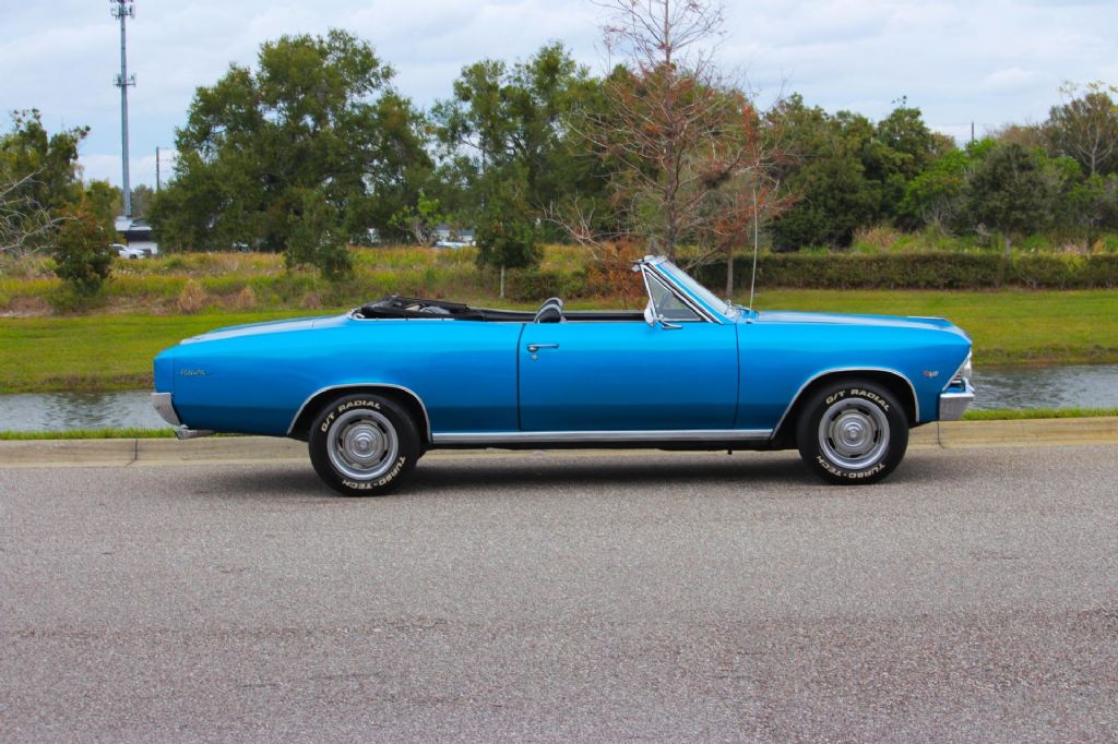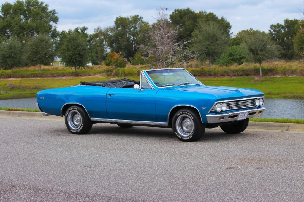 1966 Chevrolet Chevelle Malibu Convertible, Marina Blue, Rebuilt Drivetrain, Classic Cruiser This 1966 Chevrolet Chevelle Malibu Convertible is a timeless A-body drop-top finished in the highly desirable Marina Blue, a color that perfectly complements the Chevelles clean lines and classic muscle-era styling. With its strong mechanicals, attractive presentation, and open-air driving experience, this Malibu is an excellent example of a well-sorted classic convertible. Power comes from a recently rebuilt V8 engine, paired with a recently rebuilt Turbo 350 automatic transmission. The combination delivers smooth acceleration and dependable performance, making this Chevelle easy and enjoyable to drive. Headers and a great-sounding dual exhaust system give the car a strong, authoritative tone without being overbearing. The paint is in nice shape and presents well overall, while the black convertible top is in great condition and operates as it should. Inside, the car features a black bench seat interior that has been recently redone and is very nice throughout, offering a clean, comfortable, and period-correct appearance. Power steering and power brakes add to the overall drivability, making this Chevelle a relaxed cruiser whether around town or on longer drives. It rides on 15-inch Rally wheels fitted with white letter radial tires, completing the classic muscle car look. This Chevelle Malibu Convertible runs and drives nicely and represents a great opportunity to own a well-presented, mechanically refreshed, and highly enjoyable 1960s convertible. Vehicle Highlights: 1966 Chevrolet Chevelle Malibu Convertible Finished in desirable Marina Blue Recently rebuilt V8 engine Recently rebuilt Turbo 350 automatic transmission Headers with great-sounding dual exhaust Power steering Power brakes Black convertible top in great condition Black bench seat interior, recently redone Interior presents very nicely throughout 15-inch Rally wheels White letter radial tires Runs and drives nicely While we do our best to provide the highest quality muscle cars with an honest and reliable description and realize the importance of transparency when selling vehicles. That being said, we have not built, modified, changed or personally owned this vehicle. Whether this vehicle is consigned or owned by Past & Present Motor Cars we do not know the vehicles complete history since new. We want to be clear and try to answer any questions our customers might have prior to purchasing. Additionally, we not only welcome but we encourage 3rd party independent inspections. Please inquire prior to purchase to make sure the advertised vehicle has not already been sold. We list our vehicles on multiple websites and a vehicle can sell at any time. If a customer chooses to purchase sight unseen (many of our customers choose this option) the customer accepts the vehicle AS IS and WHERE IS and understands we cannot address concerns after purchase. For this reason, it's important all concerns are addressed prior to purchase. We make every effort to present accurate and reliable information, but use of this information is voluntary, and should only be deemed reliable after an independent review of its accuracy, completeness, and timeliness. It is the sole responsibility of the customer to verify the existence of options, accessories and the vehicle condition before time of sale. Financing is Available with low rates and Vehicle Shipping is available from our Showroom to your Garage. A Classic Car Warranty is Available for Purchase from a 3rd Party. Please speak to our Sales Associate or Company Representative for more information. Our team is working and available anytime by Phone or Text for your convenience at 407-559-7759. Thank you for your interest!