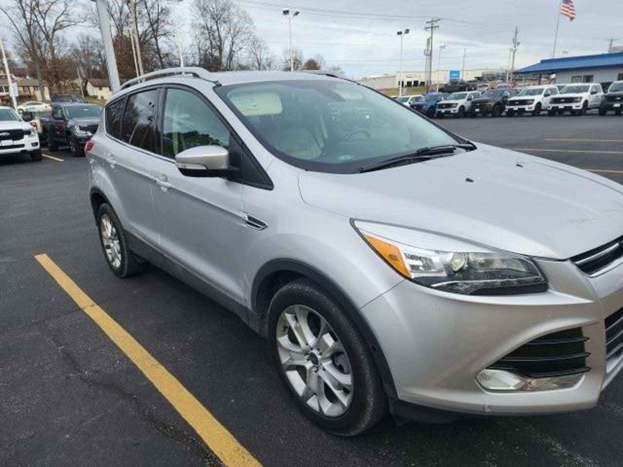 CARFAX One-Owner. Ingot Silver 2015 Ford Escape Titanium AWD AWD 6-Speed Automatic EcoBoost 2.0L I4 GTDi DOHC Turbocharged VCT ONE OWNER!!, CLEAN CARFAX!!, AWD, 10 Speakers, 4-Wheel Disc Brakes, ABS brakes, Active Park Assist, Air Conditioning, Alloy wheels, AM/FM radio: SiriusXM, Auto-dimming Rear-View mirror, Automatic temperature control, Bi-Xenon High-Intensity Discharge Headlamps, BLIS w/Cross Traffic Alert, Brake assist, Bumpers: body-color, CD player, Compass, Delay-off headlights, Driver door bin, Driver vanity mirror, Dual front impact airbags, Dual front side impact airbags, Electronic Stability Control, Equipment Group 301A, Exterior Parking Camera Rear, Four wheel independent suspension, Front anti-roll bar, Front Bucket Seats, Front Center Armrest, Front dual zone A/C, Front fog lights, Front reading lights, Fully automatic headlights, Garage door transmitter, Heated door mirrors, Heated front seats, Heated Leather-Trimmed Buckets w/60/40 Rear Seat, Illuminated entry, Knee airbag, Leather Shift Knob, Low tire pressure warning, Memory seat, Occupant sensing airbag, Outside temperature display, Overhead airbag, Overhead console, Passenger door bin, Passenger vanity mirror, Power door mirrors, Power driver seat, Power Liftgate, Power passenger seat, Power steering, Power windows, Radio data system, Radio: AM/FM Single CD/MP3, Rain-Sensing Wipers, Rear anti-roll bar, Rear Parking Sensors, Rear reading lights, Rear seat center armrest, Rear window defroster, Rear window wiper, Remote keyless entry, Roof rack: rails only, Security system, Speed control, Speed-sensing steering, Split folding rear seat, Steering wheel mounted audio controls, SYNC w/MyFord Touch & SYNC Services, Tachometer, Telescoping steering wheel, Tilt steering wheel, Titanium Technology Package, Traction control, Trip computer, Turn signal indicator mirrors, Variably intermittent wipers, Wheels: 18 Sparkle Nickel Painted Aluminum. It's our 34th anniversary, please come see us. Recent Arrival! 21/28 City/Highway MPG Awards: * JD Power Initial Quality Study (IQS) * 2015 KBB.com 10 Best SUVs Under $25,000 * 2015 KBB.com Brand Image Awards Reviews: * If youâre seeking a compact SUV with great looks, great handling, great fuel economy and great features, the Ford Escape checks off all the boxes. Source: KBB.com * Good performance and fuel efficiency; many high-tech features; agile handling; high-quality cabin; comfortable seating. Source: Edmunds