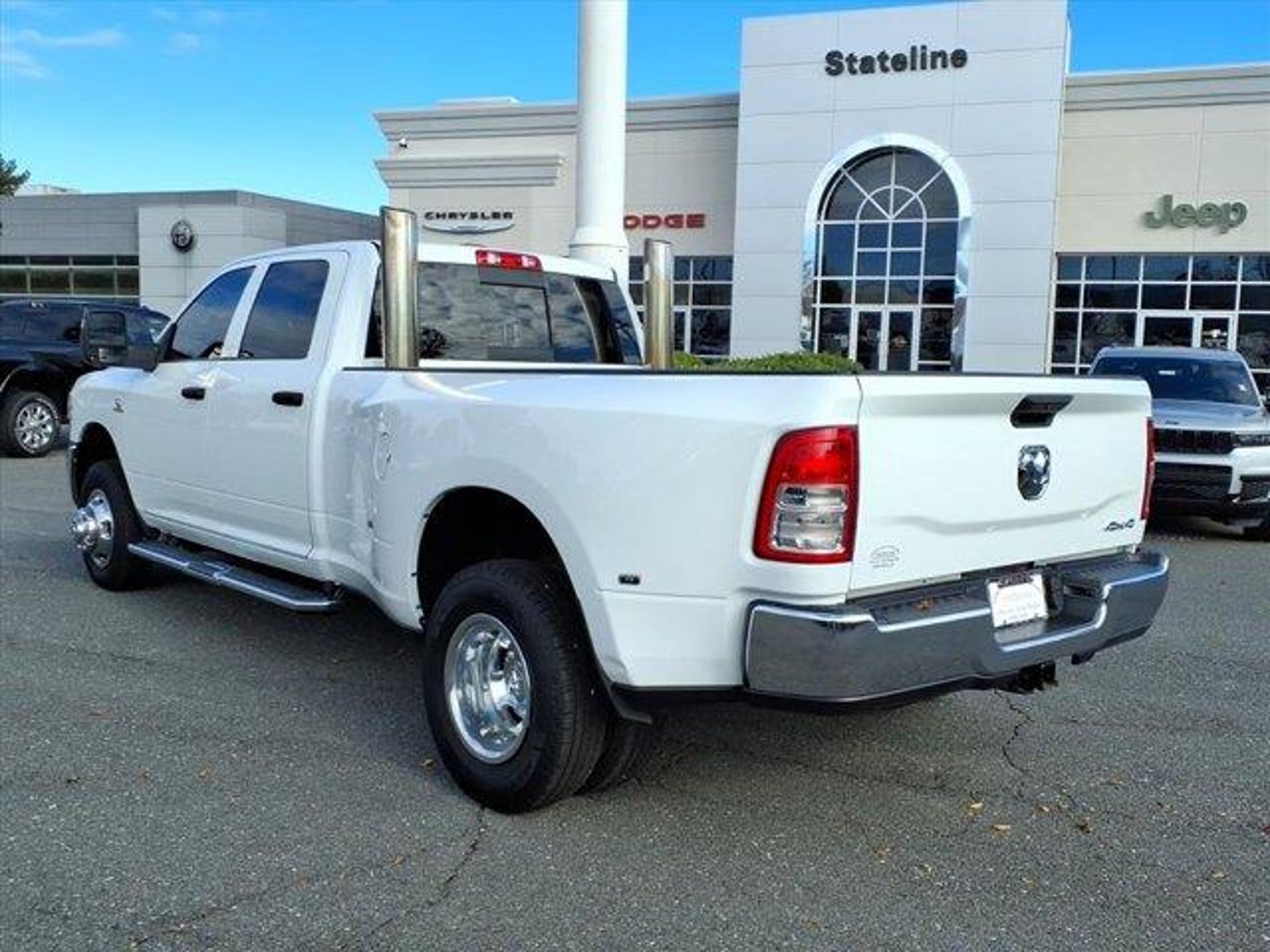 Odometer is 10709 miles below market average! 2024 Ram 3500 Tradesman 4D Crew Cab Bright White Clearcoat Extended Service Programs Available, 115V Auxiliary Front Power Outlet, 2 Way Rear Headrest Seat, 4 Way Front Headrests, 4-Wheel Disc Brakes, 40/20/40 Split Bench Seat, 400W Inverter, 50 Gallon Fuel Tank, 5th Wheel/Gooseneck Towing Prep Group, 6 Speakers, 6000# Front Axle w/Hub Ext, ABS brakes, Active Noise Control System, Air Conditioning, AM/FM radio, Auto Level Rear Air Suspension, Auto Power-Folding Mirrors, Black Exterior Mirrors, Box & Rear Fender Clearance Lamps, Brake assist, Bright Front Bumper, Bright Rear Bumper, Bright Wheel Skins, Carpet Floor Covering, Center Hub, Chrome Appearance Group, Chrome Flat Cab-Length Side Steps, Chrome Grille Surround, Chrome Headlamp Bezels, Clearance Lamps, Cloth 40/20/40 Bench Seat, Cold Weather Group, Compass, Delay-off headlights, Driver door bin, Dual front impact airbags, Dual front side impact airbags, Dual Rear Wheels, Electric Shift-On-The-Fly Transfer Case, Electronic Stability Control, Electronically Controlled Throttle, Emergency communication system: SiriusXM Guardian, Engine Block Heater, Exterior 115V AC Outlet, Exterior Mirrors Courtesy Lamps, Exterior Mirrors w/Heating Element, Exterior Mirrors w/Supplemental Signals, For Details Visit DriveUconnect.com, Forward & Reverse Utility Lights, Front & Rear Floor Mats, Front anti-roll bar, Front Armrest w/Cupholders, Front Center Armrest w/Storage, Front reading lights, Fully automatic headlights, Global Telematics Box Module (TBM), GPS Antenna Input, HD Vinyl 40/20/40 Split Bench Seat, Illuminated entry, Integrated Voice Command w/Bluetooth, Low tire pressure warning, Manual Adjust 4-Way Driver Seat, Manual Adjust 4-Way Front Passenger Seat, Manual Folding Exterior Mirrors, Manual Telescoping Mirrors, Matte Black Mesh w/Chrome Grille, Mirror Running Lights, MOPAR Winter Front Grille Cover, Occupant sensing airbag, Outside temperature display, Overhead airbag, Overhead console, Panic alarm, ParkView Rear Back-Up Camera, Passenger door bin, Passenger vanity mirror, Power Adjust Mirrors, Power Heat Fold Telescopic Mirrors, Power Heated Fold Telescopic Mirrors, Power steering, Power Telescoping Mirrors, Power windows, Power-Adjustable Convex Aux Mirrors, Quick Order Package 2HA Tradesman, Radio data system, Radio: Uconnect 3 w/5" Display, Rear Folding Seat, Rear Power Sliding Window, Rear step bumper, Rear Wheelhouse Liners, Rear Window Defroster, Remote keyless entry, Remote USB Port - Charge Only, Speed control, Storage Tray, Tachometer, Tilt steering wheel, Tip Start, Traction control, Tradesman Level 2 Equipment Group, Trailer Brake Control, Trailer Light Check, Variably intermittent wipers, Voltmeter, Wheels: 17" x 6.0" Steel Argent, Wheels: 17" x 6.0" Steel Chrome Clad, Wheels: 18" x 8.0" Steel. This 2024 Ram 3500 Tradesman is proudly offered to you by Stateline Chrysler Dodge Jeep RAM at 800 Gold Hill Rd Fort Mill, SC 29708 803-306-1000 www.BigStatelineAuto.com Whether you are looking for a new, pre-owned / used, car, truck, crossover or SUV,Stateline Chrysler Dodge Jeep RAM and Mills Auto group are here to make your life easy. This 2024 Ram 3500 Tradesman has been fully serviced. A 2024 Ram 3500 Tradesman in this condition is an absolute rarity. With 30 locations and growing, we have whatever vehicle you are looking for or we can find it for you. Let Stateline Chrysler Dodge Jeep RAM / Stateline Maserati Alfa Romeo and Mills Auto Group be your one stop shop to assist you with all of you automotive needs. Stateline Chrysler Dodge Jeep RAM Stateline Maserati / Alfa Romeo 800 Gold Hill Rd. Fort Mill, SC 29708 803-306-5989 / 803-548-6617 www.BigStatelineAuto.com For ALL new or pre-owned / used car, truck, crossover or SUV Mills Auto Group has locations in or near Goldsboro, NC 27534 - Pineville, NC 28134 - Fort Mill, SC 29708 - Columbia, SC 29210 - Smithfield, NC 27577 - Shelby, N