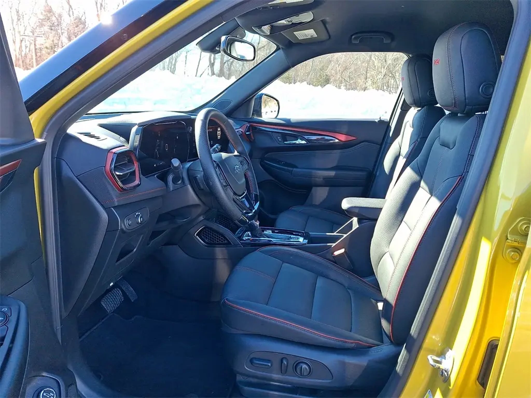 Nitro Yellow Metallic 2024 Chevrolet TrailBlazer RS 1.3L Ecotec Turbo DOHC SIDI w/VVT Convenience Package (1 Type-A & 1 Type-C USB Charging-Only Ports, 120-Volt Power Outlet, Cabin Humidity Sensor, Driver & Front Passenger Illuminated Vanity Mirrors, Hands-Free Power Programmable Liftgate, Inside Rear-View Auto-Dimming Mirror, Single-Zone Auto Climate Control Air Conditioning, and Wireless Charging), Driver Confidence Package (Lane Change Alert w/Side Blind Zone Alert, Rear Cross Traffic Alert, and Rear Park Assist), Preferred Equipment Group 1RS, 1 Type-A & 1 Type-C USB Ports, 11 Diagonal HD Color Touchscreen, 2-Way Power Driver Lumbar Seat Adjuster, 3.17 Final Drive Axle Ratio, 4-Way Manual Front Passenger Seat Adjuster, 4-Wheel Disc Brakes, 6 Speakers, 6-Speaker Audio System Feature w/Amplifier, 8-Way Power Driver Seat Adjuster, ABS brakes, Air Conditioning, Alloy wheels, AM/FM radio: SiriusXM, Auto High-beam Headlights, Brake assist, Bumpers: body-color, Chevrolet Connected Access Capable, Compass, Delay-off headlights, Driver door bin, Driver vanity mirror, Dual front impact airbags, Dual front side impact airbags, Electronic Stability Control, Emergency communication system: OnStar and Chevrolet connected services capable, Evotex Seat Trim, Exterior Parking Camera Rear, Flat-Folding Front Passenger Seatback, Front anti-roll bar, Front Bucket Seats, Front Center Armrest, Front License Plate Bracket, Front reading lights, Front wheel independent suspension, Fully automatic headlights, Heated door mirrors, Heated Driver & Front Passenger Seats, Heated front seats, Heated steering wheel, Illuminated entry, Knee airbag, Low tire pressure warning, Mosaic Black Metallic Two-Tone Roof, Occupant sensing airbag, Overhead airbag, Overhead console, Panic alarm, Passenger door bin, Passenger vanity mirror, Power door mirrors, Power driver seat, Power steering, Power windows, Radio data system, Radio: AM/FM Stereo Audio System, Rear seat center armrest, Rear side impact airbag, Rear window defroster, Rear window wiper, Remote keyless entry, Ride & Handling Suspension, Security system, SiriusXM, Speed control, Split folding rear seat, Spoiler, Steering wheel mounted audio controls, Tachometer, Telescoping steering wheel, Tilt steering wheel, Traction control, Trip computer, Variably intermittent wipers, Wheels: 19 High Gloss Black Machined Aluminum, and Wireless Apple CarPlay/Android Auto. Odometer is 2336 miles below market average! 26/29 City/Highway MPG