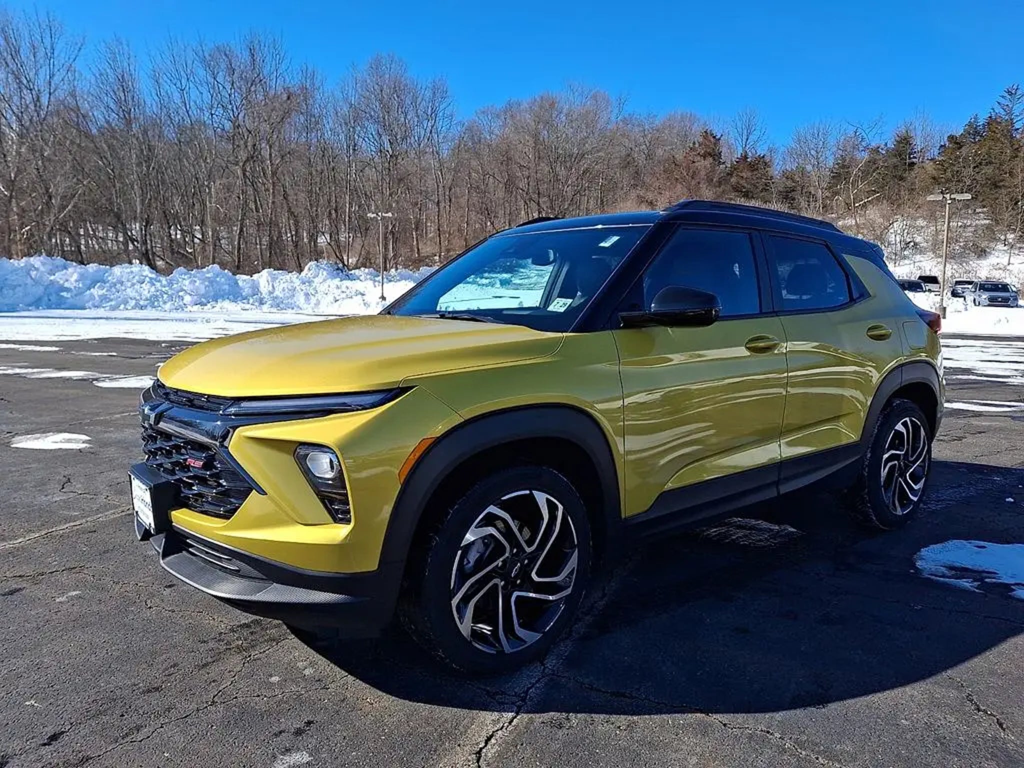 Nitro Yellow Metallic 2024 Chevrolet TrailBlazer RS 1.3L Ecotec Turbo DOHC SIDI w/VVT Convenience Package (1 Type-A & 1 Type-C USB Charging-Only Ports, 120-Volt Power Outlet, Cabin Humidity Sensor, Driver & Front Passenger Illuminated Vanity Mirrors, Hands-Free Power Programmable Liftgate, Inside Rear-View Auto-Dimming Mirror, Single-Zone Auto Climate Control Air Conditioning, and Wireless Charging), Driver Confidence Package (Lane Change Alert w/Side Blind Zone Alert, Rear Cross Traffic Alert, and Rear Park Assist), Preferred Equipment Group 1RS, 1 Type-A & 1 Type-C USB Ports, 11 Diagonal HD Color Touchscreen, 2-Way Power Driver Lumbar Seat Adjuster, 3.17 Final Drive Axle Ratio, 4-Way Manual Front Passenger Seat Adjuster, 4-Wheel Disc Brakes, 6 Speakers, 6-Speaker Audio System Feature w/Amplifier, 8-Way Power Driver Seat Adjuster, ABS brakes, Air Conditioning, Alloy wheels, AM/FM radio: SiriusXM, Auto High-beam Headlights, Brake assist, Bumpers: body-color, Chevrolet Connected Access Capable, Compass, Delay-off headlights, Driver door bin, Driver vanity mirror, Dual front impact airbags, Dual front side impact airbags, Electronic Stability Control, Emergency communication system: OnStar and Chevrolet connected services capable, Evotex Seat Trim, Exterior Parking Camera Rear, Flat-Folding Front Passenger Seatback, Front anti-roll bar, Front Bucket Seats, Front Center Armrest, Front License Plate Bracket, Front reading lights, Front wheel independent suspension, Fully automatic headlights, Heated door mirrors, Heated Driver & Front Passenger Seats, Heated front seats, Heated steering wheel, Illuminated entry, Knee airbag, Low tire pressure warning, Mosaic Black Metallic Two-Tone Roof, Occupant sensing airbag, Overhead airbag, Overhead console, Panic alarm, Passenger door bin, Passenger vanity mirror, Power door mirrors, Power driver seat, Power steering, Power windows, Radio data system, Radio: AM/FM Stereo Audio System, Rear seat center armrest, Rear side impact airbag, Rear window defroster, Rear window wiper, Remote keyless entry, Ride & Handling Suspension, Security system, SiriusXM, Speed control, Split folding rear seat, Spoiler, Steering wheel mounted audio controls, Tachometer, Telescoping steering wheel, Tilt steering wheel, Traction control, Trip computer, Variably intermittent wipers, Wheels: 19 High Gloss Black Machined Aluminum, and Wireless Apple CarPlay/Android Auto. Odometer is 1631 miles below market average! 26/29 City/Highway MPG