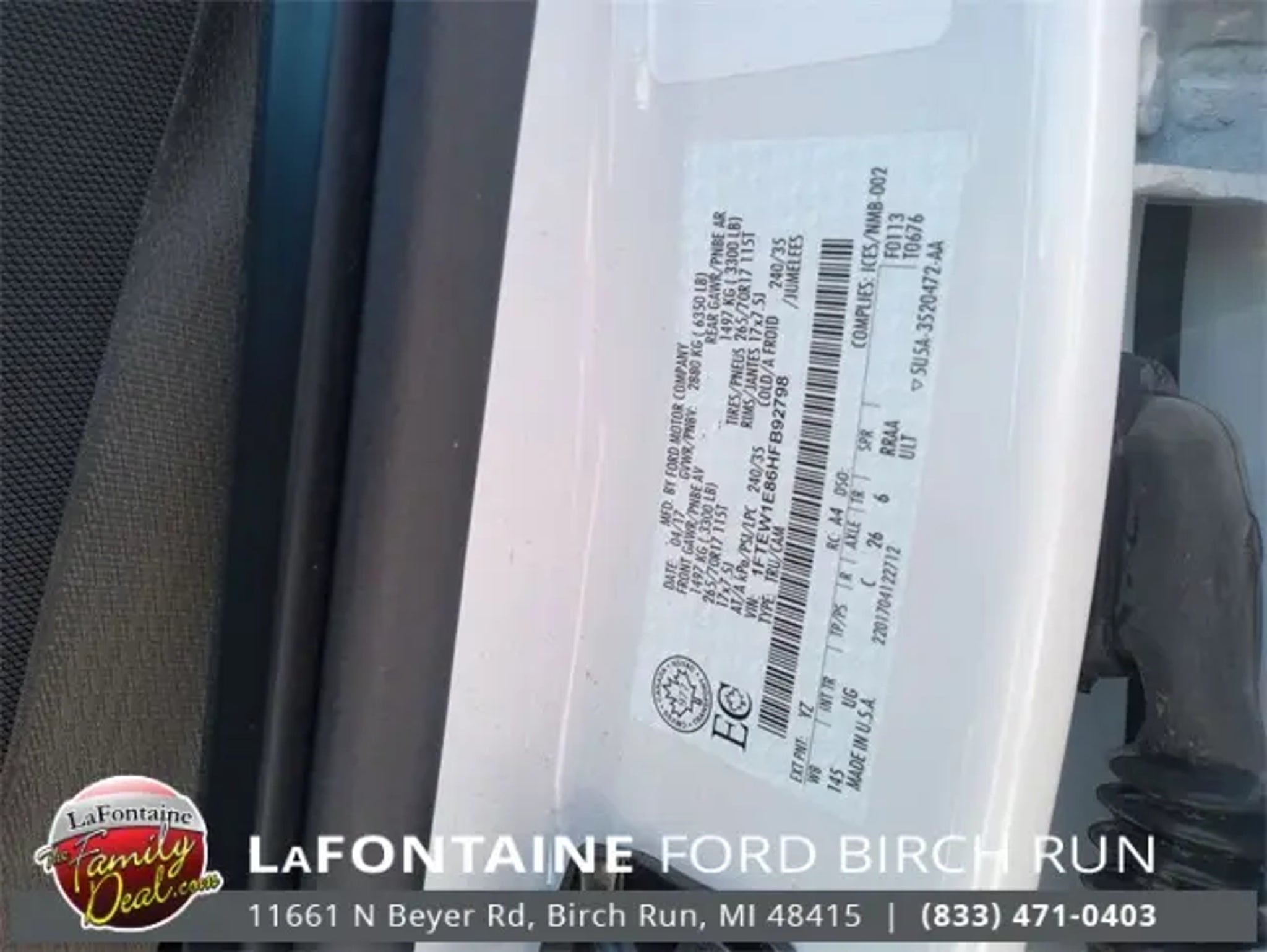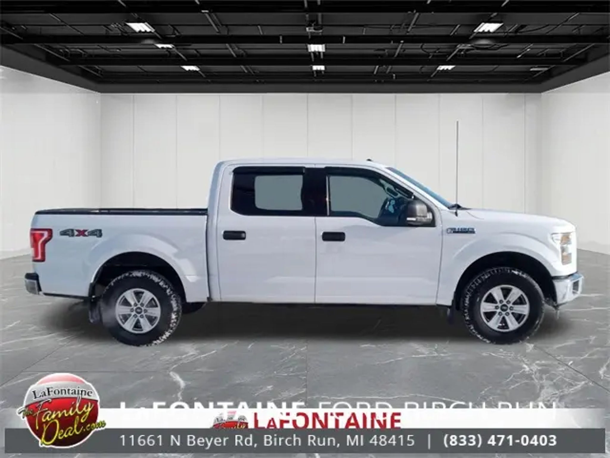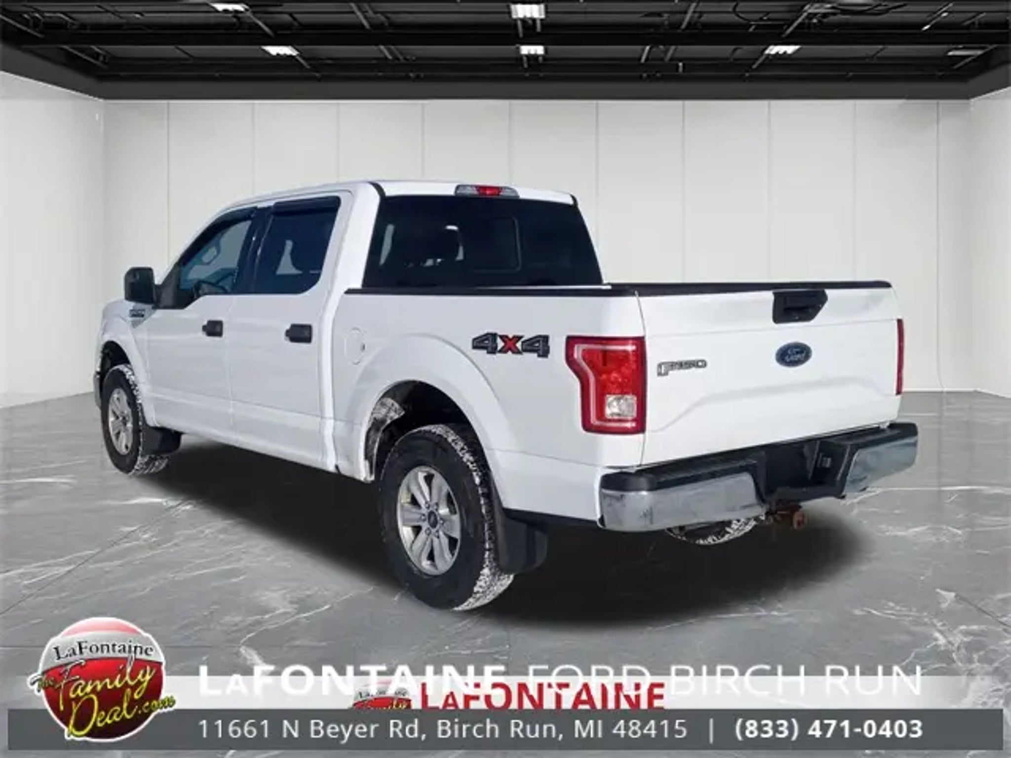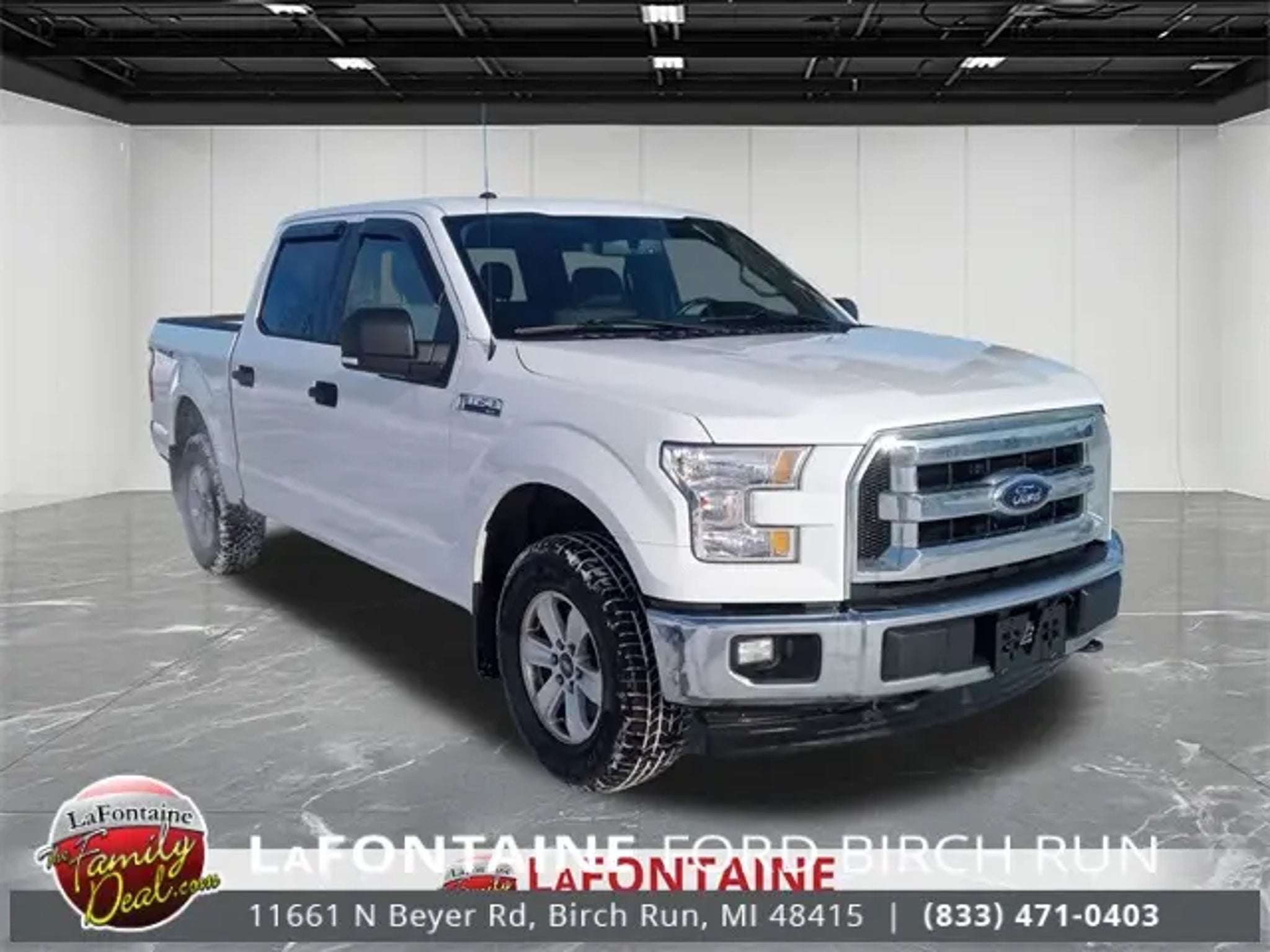 2017 Ford F-150 XLT Sync Hands Free System, 4WD -, F-150 XLT, 4D SuperCrew, 3.5L V6 Ti-VCT, 6-Speed Automatic Electronic, 4WD, Oxford White, Grey 40 Console 40 Cloth, 3.73 Axle Ratio, Class IV Trailer Hitch Receiver, GVWR: 6,350 lbs Payload Package, Pro Trailer Backup Assist, Trailer Tow Package, Upgraded Front Stabilizer Bar, Wheels: 17 Silver Painted Aluminum. 4WD We use state-of-the-art software to price our vehicles to be the most competitive in the market. If you have found a better value, let us know about it. We would love the opportunity to keep giving the best values in the market. Contact our Sales Department at (989) 244-4511 with your questions and to set up an appointment. Be our guest at Lafontaine Ford of Birch Run, and put us to work for you. NOTE: All Equipment Listed May Not Be Available.