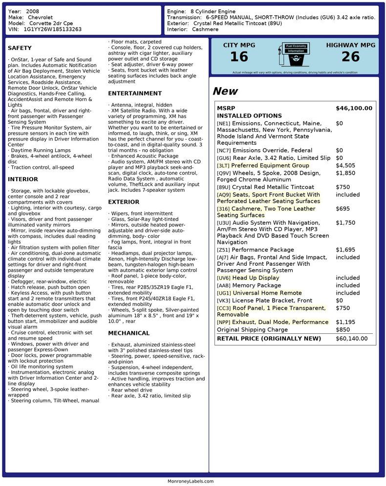 Factory Highlights (per Monroney)