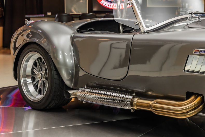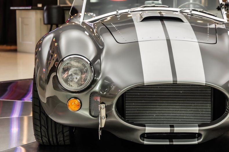 Check out this amazing Backdraft Racing 1965 Shelby Cobra! This Cobra is an RT4 build, and it has less than 5,100 Miles on it! Take a look at the Metallic Grey Exterior Paint with Silver Stripes, Fiberglass Body, 18' Knock - Off Style Black Wheels, Scooped Hood, Front Fender Vents, Driver side Chrome Roll Bar, Quick-Jack Bumpers, LeMans Style Fuel Fill and the Steel Side Pipes. Inside, this roadster is sporting a Black Leather Interior, Bucket Seating, 3 - Spoke Wood Steering Wheel, 4 Point Racing Harness, Big & Tall Package with ample room in the fully Carpeted Trunk for all of your car show essentials!