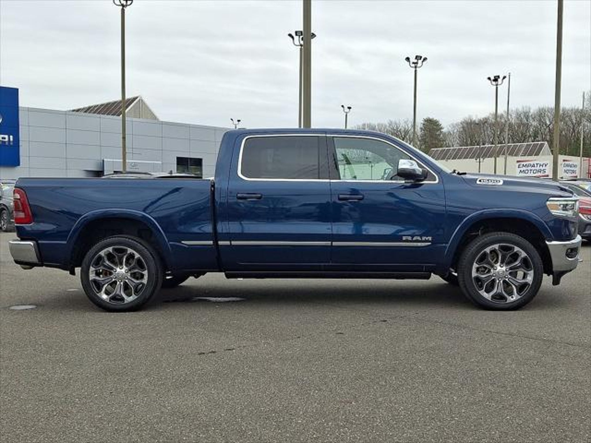 NAVIGATION ! CLEAN CAR FAX BLIND SPOT MONITORING SYSTEM BACK-UP CAMERA APPLE CAR PLAY ANDROID AUTO 4X4 BLUETOOTH Adaptive Cruise Control w/Stop & Go Digital Rearview Mirror Driver door bin Driver vanity mirror Front reading lights Full Length Premium Floor Console Garage door transmitter Genuine wood console insert Genuine wood dashboard insert Genuine wood door panel insert Heads-Up Display Heated Steering Wheel Heated steering wheel Illuminated entry Lane Keep Assist LED CHMSL Lamp Limited Level 1 Equipment Group MOPAR Spray In Bedliner Parallel & Perp Park Assist w/Stop ParkSense Front/Rear Park Assist w/Stop Pedestrian Emergency Braking Pick-Up Box Lighting Power Running Boards Quick Order Package 27M Limited Surround View Camera System Tailgate Ajar Warning Lamp Wireless Charging Pad. 2023 Ram 1500 Limited Patriot Blue Pearlcoat 4WD 8-Speed Automatic HEMI 5.7L V8 Multi Displacement VVT eTorqueOdometer is 8929 miles below market average!**Vehicle Options listed are when the unit was originally built. Please confirm the accuracy of the included equipment by calling the dealer prior to purchase.