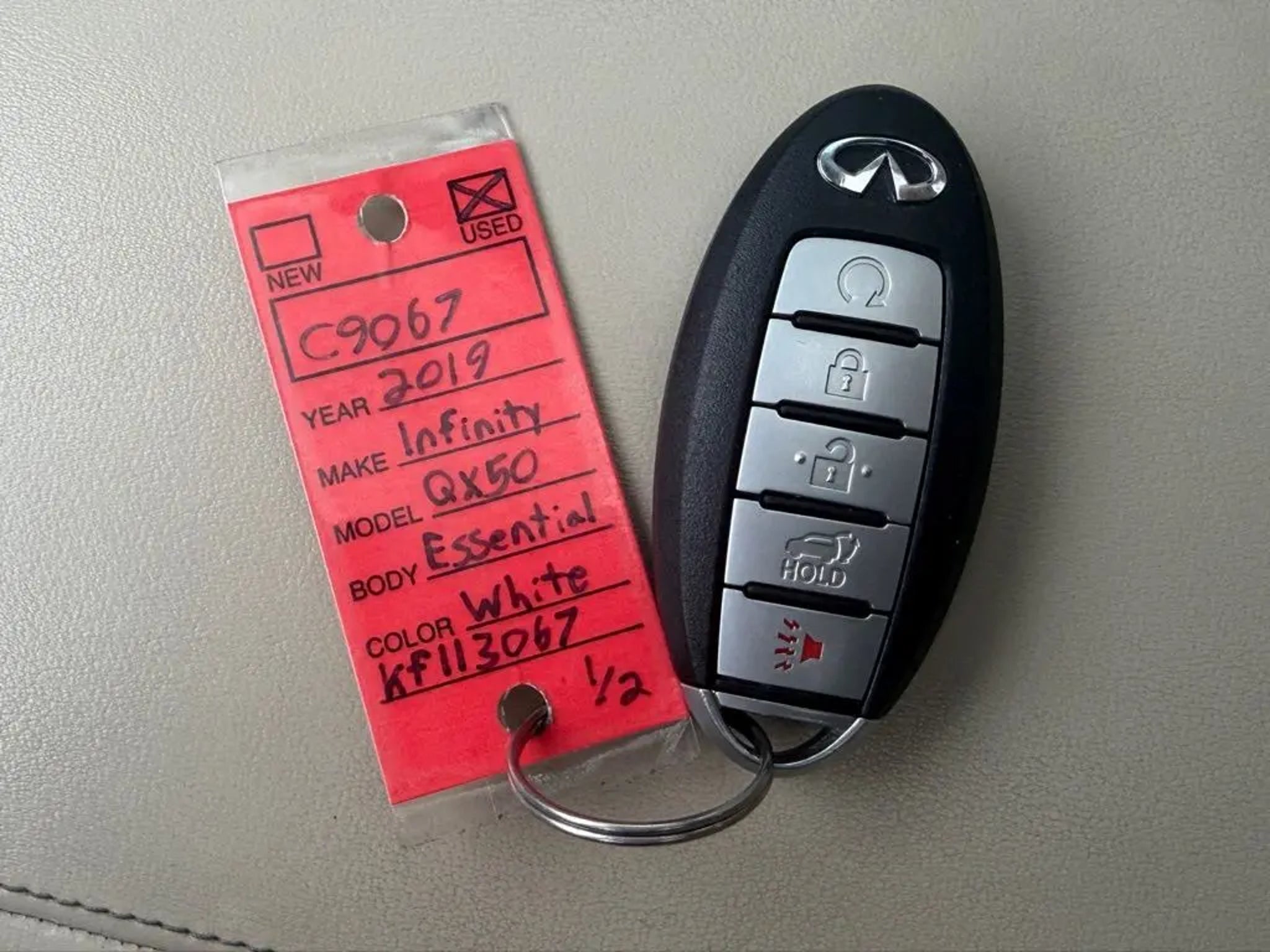 Discover the ultimate driving experience with this exceptional 2019 INFINITI QX50 ESSENTIAL. Meticulously crafted with a refined elegance and packed with cutting-edge technology, this SUV is poised to elevate your daily commute and weekend adventures.Elevating your driving experience, this QX50 ESSENTIAL boasts an impressive array of premium features:? Premium Heat Package: Indulge in the comfort of heated front seats, a heated steering wheel, and memory settings for the driver's seat, mirrors, and steering wheel.? Premium Audio Package: Immerse yourself in the rich, powerful sound of the Bose 16-speaker premium audio system.? ProASSIST Package: Enjoy the peace of mind provided by advanced safety features like Rear Cross Traffic Alert, Back-Up Collision Intervention, Intelligent Cruise Control, and Distance Control Assist.? Illuminated Kick Plates: A stylish touch that elevates the interior ambiance.? Cargo Package: Maximize your storage flexibility with a reversible cargo mat, cargo locks, console net, and cargo net.Powered by a turbocharged I4 engine and equipped with Intelligent All-Wheel Drive, this QX50 ESSENTIAL delivers an exceptional blend of performance and efficiency, with an EPA-estimated 24 city/30 highway MPG. The sleek, sculpted exterior in a stunning White finish exudes a commanding presence on the road.Stepping inside, you'll be greeted by a cabin that seamlessly combines luxury and technology. The INFINITI InTouch Navigation system, Bose premium audio, and a host of advanced driver-assistance features work in harmony to provide a truly sophisticated driving experience.Whether you're commuting to the office, embarking on a family road trip, or seeking an engaging driving experience, this 2019 INFINITI QX50 ESSENTIAL is the perfect companion. Discover the perfect balance of style, performance, and cutting-edge technology ? schedule a test drive today and experience the difference for yourself.
