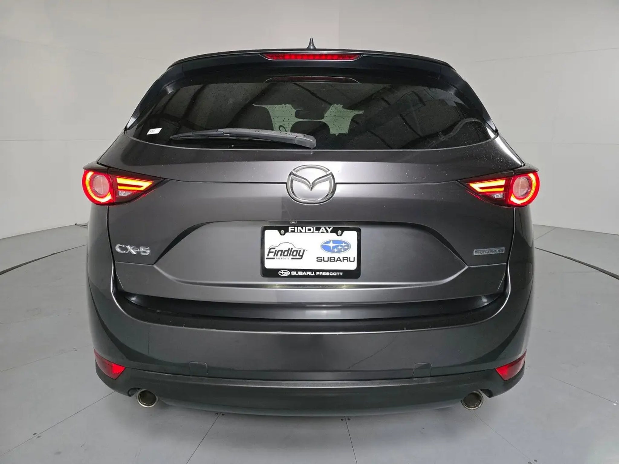 CX-5 Grand Touring, 4D Sport Utility, SKYACTIV® 2.5L 4-Cylinder DOHC 16V, 6-Speed Automatic, FWD, Machine Gray Metallic, Black Leather.Visit with our NON-Commission team, for a hassle free experience! Save more with Findlay Subaru Prescott, with our competitive, market based pricing! This Mazda CX-5 is equipped with the following features: GT Premium Package (Active Driving Display (Windshield Type), Automatic Power Folding Side Mirrors, Heated Rear Seats, Heated Steering Wheel, Ventilated Front Seats, and Windshield Wiper De-Icer), CX-5 Grand Touring, 4D Sport Utility, SKYACTIV® 2.5L 4-Cylinder DOHC 16V, 6-Speed Automatic, FWD, Machine Gray Metallic, Black Leather, 10 Speakers, 4-Wheel Disc Brakes, 4.325 Axle Ratio, ABS brakes, Air Conditioning, Alloy wheels, AM/FM radio: SiriusXM, AppLink/Apple CarPlay and Android Auto, Auto High-beam Headlights, Auto-dimming Rear-View mirror, Automatic temperature control, Bose 10-Speaker Audio Sound System, Brake assist, Bumpers: body-color, Delay-off headlights, Driver door bin, Driver vanity mirror, Dual front impact airbags, Dual front side impact airbags, Electronic Stability Control, Emergency communication system, Exterior Parking Camera Rear, Four wheel independent suspension, Front anti-roll bar, Front Bucket Seats, Front Center Armrest, Front dual zone A/C, Front fog lights, Front reading lights, Fully automatic headlights, Garage door transmitter: HomeLink, Heated door mirrors, Heated front seats, Heated Front Sport Seats, Illuminated entry, Lane Departure Warning System, Leather Seat Trim, Leather Shift Knob, Low tire pressure warning, Machine Gray Metallic Paint, Memory seat, Occupant sensing airbag, Outside temperature display, Overhead airbag, Overhead console, Panic alarm, Passenger door bin, Passenger vanity mirror, Power door mirrors, Power driver seat, Power Liftgate, Power moonroof, Power passenger seat, Power steering, Power windows, Radio data system, Radio: AM/FM/HD Audio System, Rain sensing wipers, Rear anti-roll bar, Rear reading lights, Rear seat center armrest, Rear window defroster, Rear window wiper, Remote keyless entry, Speed control, Speed-sensing steering, Split folding rear seat, Spoiler, Steering wheel mounted audio controls, Tachometer, Telescoping steering wheel, Tilt steering wheel, Traction control, Trip computer, Turn signal indicator mirrors, Variably intermittent wipers, and Wheels: 19 x 7J Aluminum Alloy w/Silver Finish.CARFAX One-Owner. Clean CARFAX.We use Market Based Pricing to give you the best price, upfront, without games. We do the shopping, so you get the deals!2020 Mazda CX-5 Grand Touring 25/31 City/Highway MPG Odometer is 5987 miles below market average!Awards:* JD Power Automotive Performance, Execution and Layout (APEAL) Study