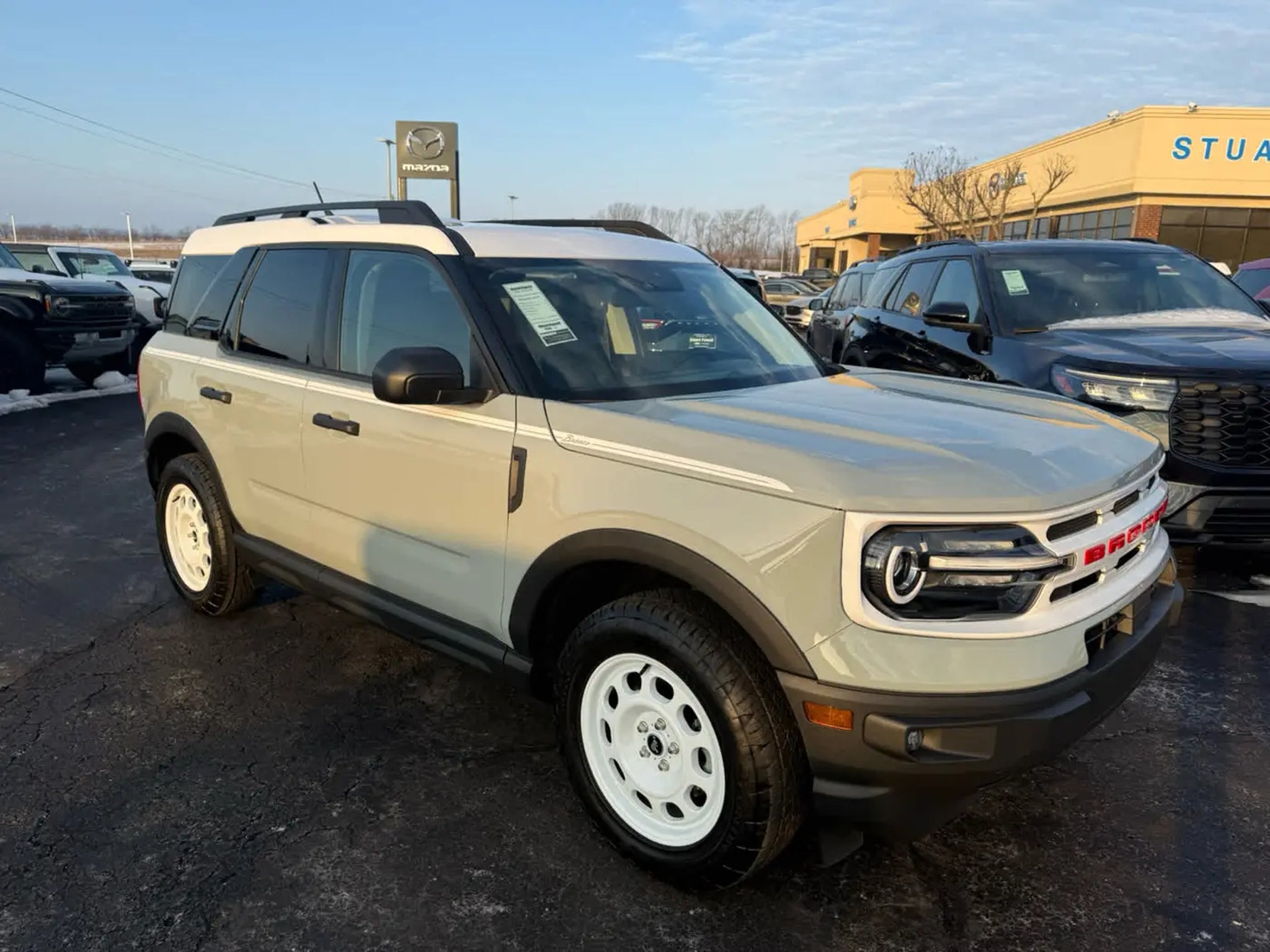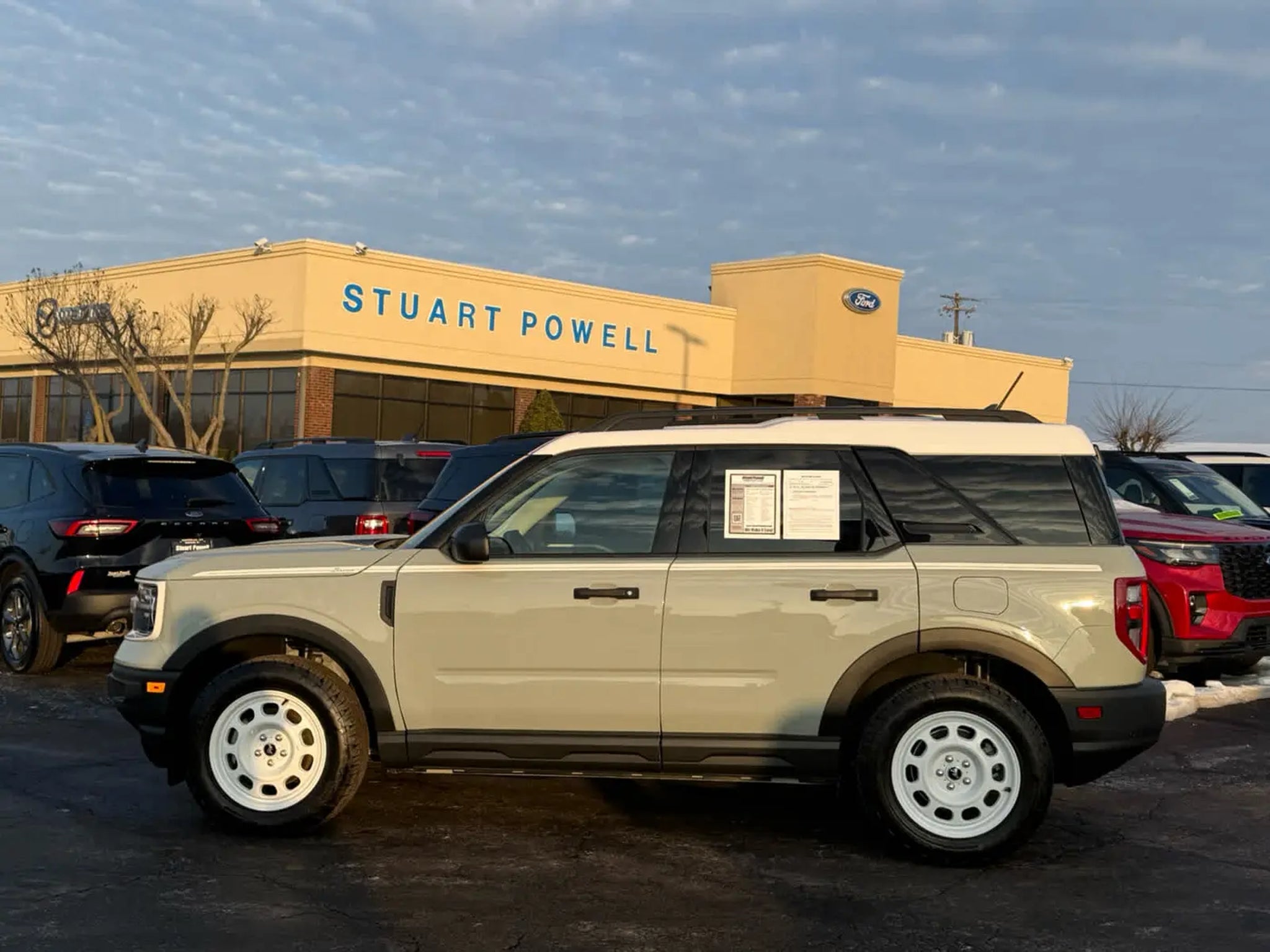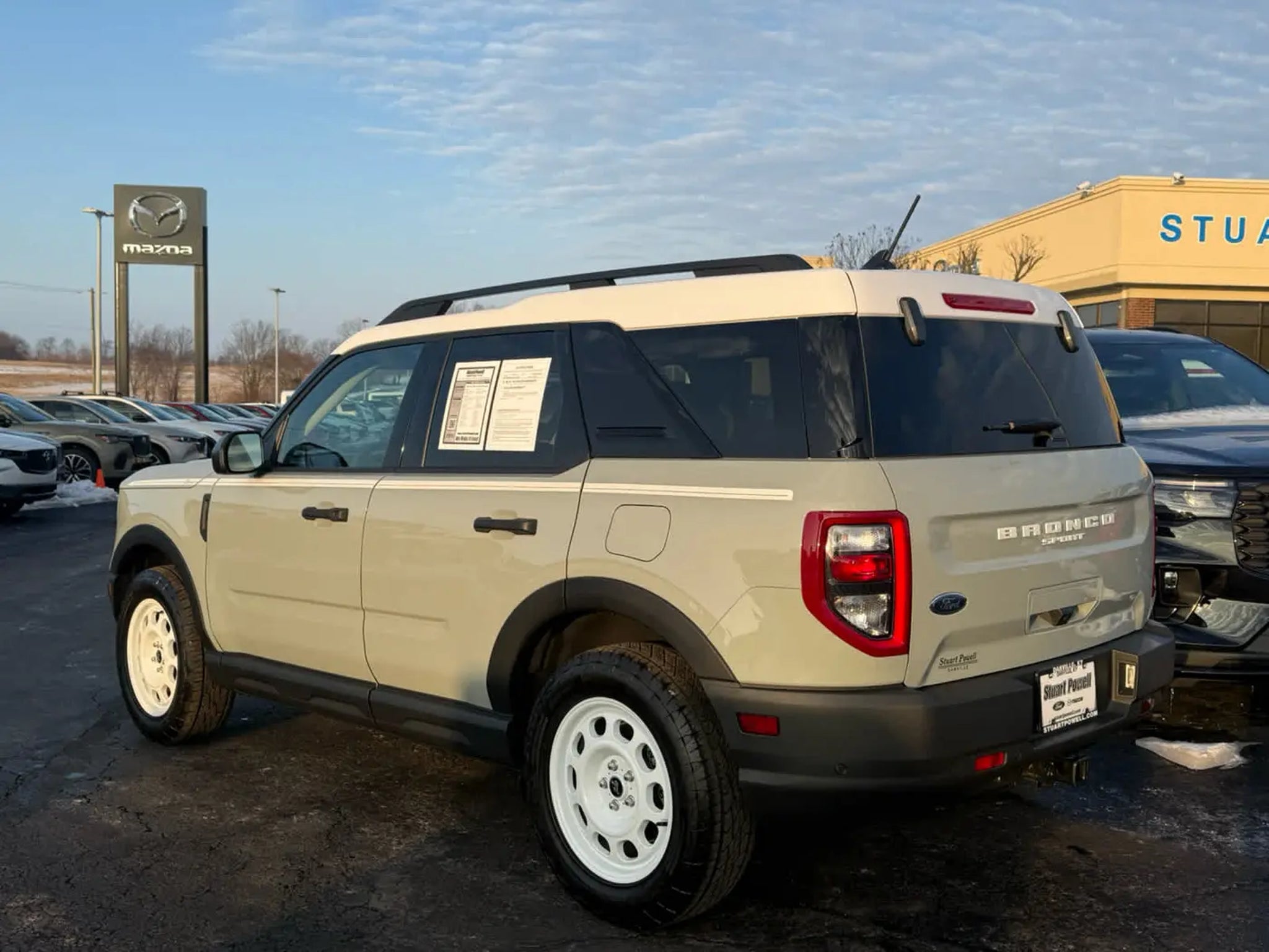 CARFAX 1-Owner. EPA 29 MPG Hwy/25 MPG City! Navigation, Heated Seats, Keyless Start, iPod/MP3 Input, Onboard Communications System, Blind Spot Monitor, Satellite Radio, Trailer Hitch, Alloy Wheels, ENGINE: 1.5L ECOBOOST, Back-Up Camera KEY FEATURES INCLUDE Back-Up Camera, Satellite Radio, iPod/MP3 Input, Onboard Communications System, Trailer Hitch, Aluminum Wheels, Keyless Start, Blind Spot Monitor, Lane Keeping Assist, Cross-Traffic Alert. MP3 Player, Privacy Glass, Keyless Entry, Steering Wheel Controls. Ford Heritage with Cactus Gray exterior and Navy Pier interior features a 3 Cylinder Engine with 181 HP at 6000 RPM*. OPTION PACKAGES Heated Front Seats, 8-way power drivers (fore/aft, up/down, recline, lumbar) seat, Universal Garage Door Opener (UGDO), Premium Wrapped Steering Wheel, Wireless Charging Pad, Rear Parking Sensors, Evasive Steering Assist, Voice-Activated Touchscreen Navigation System, pinch-to-zoom capability and SiriusXM Traffic and Travel Link w/a, SiriusXM Traffic and Travel Links services are not available in Alaska and Hawaii, After your trial period ends, SiriusXM audio and data services each require a subscription sold separately, or as a package, by SiriusXM Radio Inc, See SiriusXM customer agreement for complete terms at www.siriusxm.com, All fees and programming subject to change, Trial subscription available in Alaska and Hawaii, Intelligent Adaptive Cruise Control w/Stop & Go, lane centering and speed sign recognition, auto start-stop technology (STD). A GREAT TIME TO BUY Was $34,904. This Bronco Sport is priced $1,400 below J.D. Power Retail. BUY WITH CONFIDENCE CARFAX 1-Owner BUY FROM AN AWARD WINNING DEALER We Make It Easy! Since 1949, Stuart Powell has earned a reputation for transparent pricing and making it easy to do business. Come see why its worth the drive to Danville for a better way to buy. Pricing analysis performed on 4/16/2026. Horsepower calculations based on trim engine configuration. Fuel economy calculations based on original manufacturer data for trim engine configuration. Please confirm the accuracy of the included equipment by calling us prior to purchase.