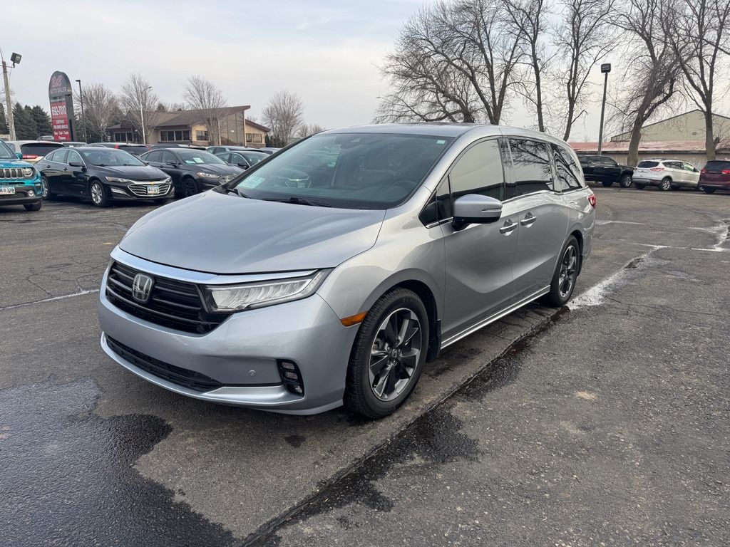 2022 Honda Odyssey Elite " Brookings SD's best-priced family hauler! This premium Honda Odyssey Elite pairs a robust V6 3.5L gasoline engine with supreme comfort and advanced safety, delivering confident highway cruising and effortless daily driving. Packed with luxurious features, this minivan offers leather seats that cradle passengers on long trips, a heated steering wheel for chilly mornings, and convenient remote start to warm up or cool down before you hit the road. Safety and convenience lead the way with Adaptive Cruise Control for relaxed freeway driving and a Back-Up Camera that makes parking and trailer hookups simple and secure. The richly appointed cabin provides flexible seating and smart storage solutions, perfect for family adventures, carpools, and weekend getaways. The Elite trim brings premium touches and technology designed to enhance every drive. Located in Brookings SD, this 2022 Honda Odyssey Elite is available now at the best price in the area " exceptional value for a top-trim minivan with a V6 powertrain and premium amenities. Whether you need a reliable commuter, a comfortable long-distance cruiser, or a versatile family vehicle, this Honda Odyssey checks every box. Act quickly to secure Brookings' top-priced deal on a well-maintained, feature-rich Honda Odyssey Elite " exceptional performance, comfort, and safety await. Contact us today to schedule a test drive and experience this outstanding minivan for yourself.