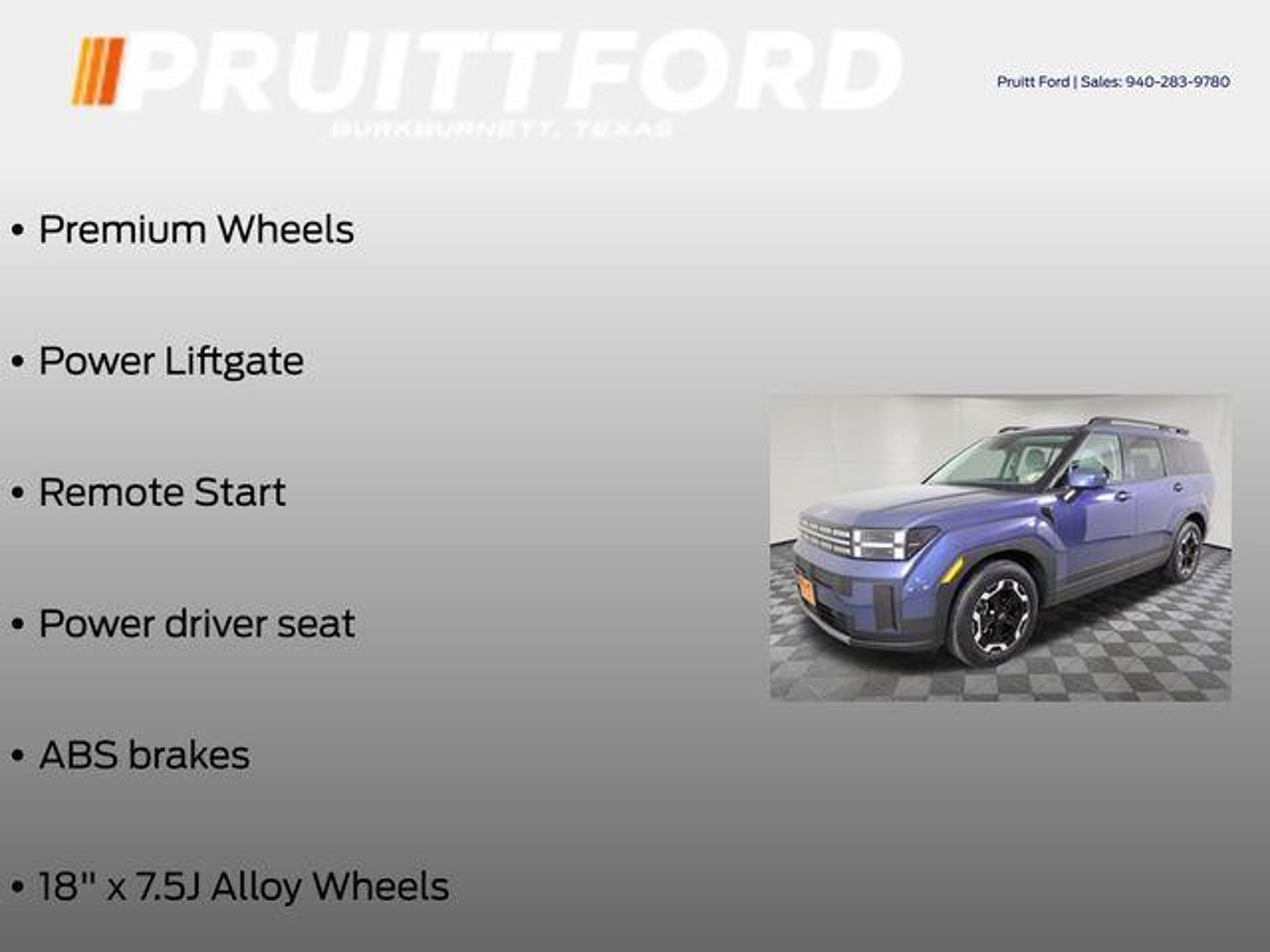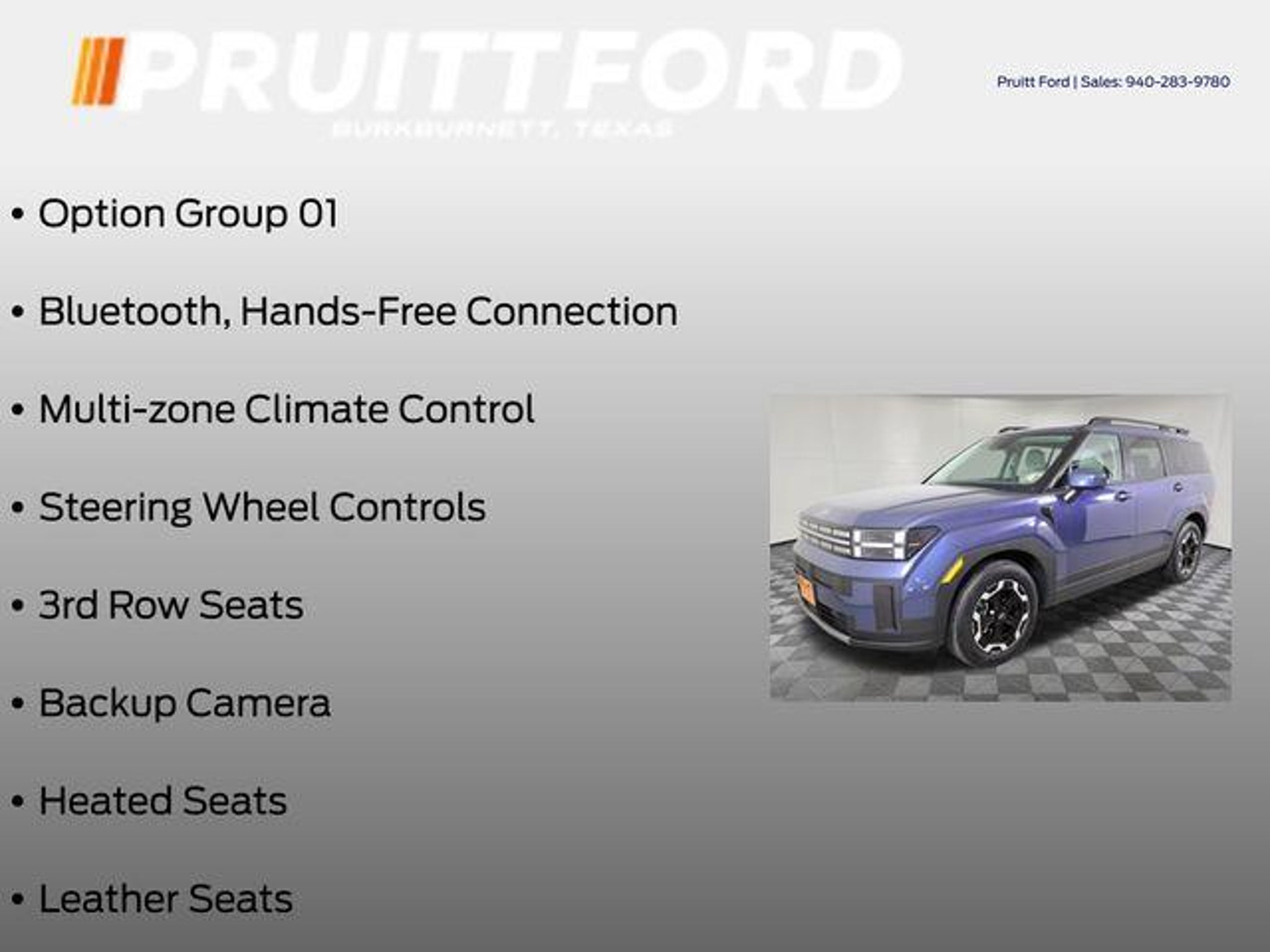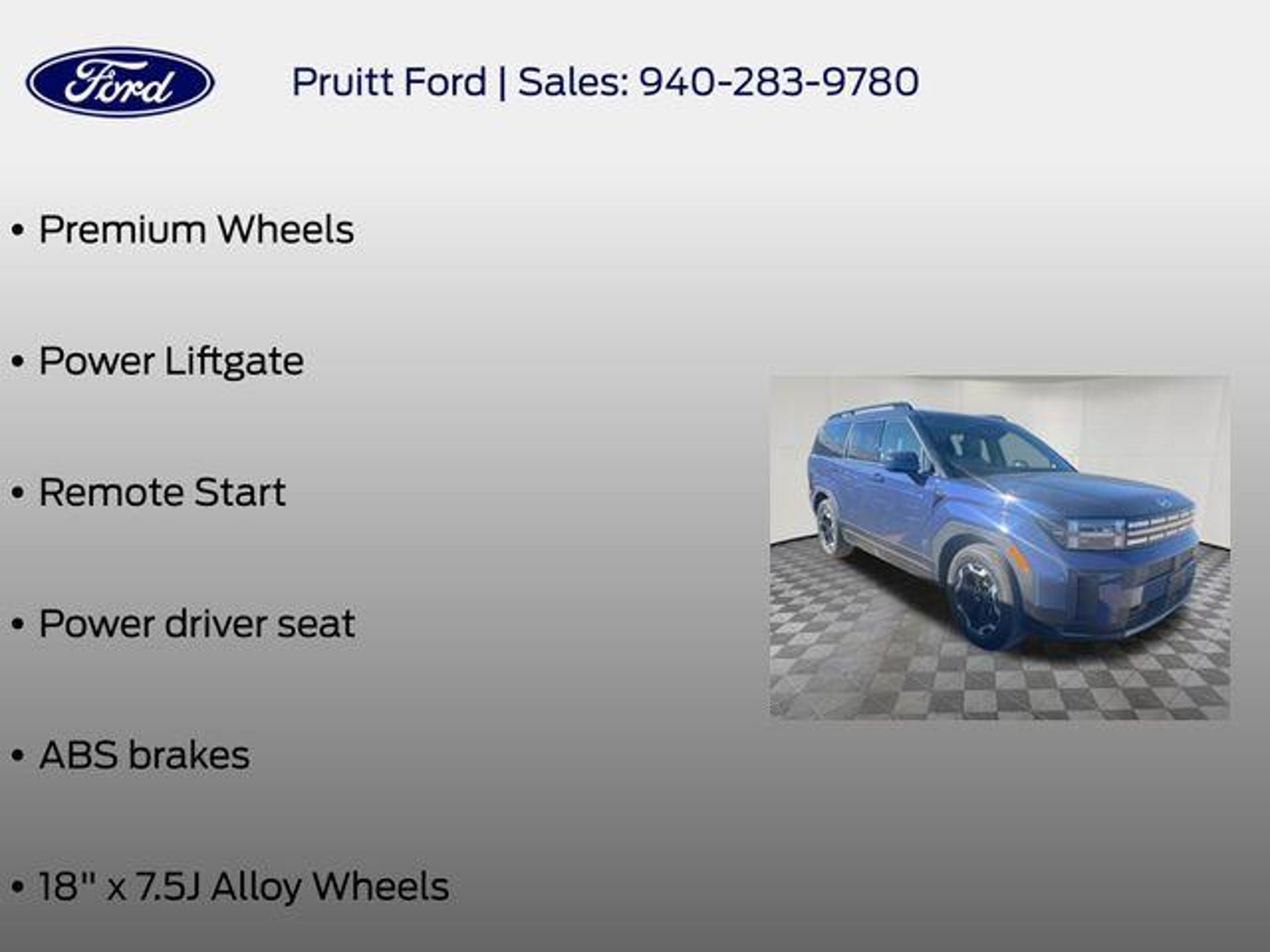 Discover the exceptional 2025 Hyundai Santa Fe SEL, a versatile and well-equipped SUV that blends style, comfort, and advanced technology. With its sleek Blue exterior and a powerful 2.5L I4 engine paired with Shiftronic FWD, this Santa Fe is ready to elevate your driving experience. - Bluetooth, Hands-Free Connection - Multi-zone Climate Control - Steering Wheel Controls - 3rd Row Seats - Backup Camera - Heated Seats - Leather Seats - Premium Wheels - Power Liftgate - Remote Start Designed with your comfort and convenience in mind, the Santa Fe SEL offers a wealth of premium features, including a Power driver seat, ABS brakes, and 18 x 7.5J Alloy Wheels, ensuring a smooth and confident ride. Step inside and discover the refined H-Tex Leatherette Seat Trim, Heated Front Bucket Seats, and a host of connectivity options, including Apple CarPlay and Android Auto. This Santa Fe also boasts a comprehensive suite of safety features, such as Dual front impact airbags, Dual front side impact airbags, Knee airbag, Rear side impact airbag, and Electronic Stability Control, providing you and your loved ones with the utmost protection. With an impressive EPA-estimated 20 city / 29 highway MPG, the 2025 Hyundai Santa Fe SEL offers exceptional efficiency, making it an ideal choice for your daily commute or weekend adventures. The available 3rd row seats and versatile split-folding rear seat provide the flexibility to accommodate your ever-changing needs, whether it's transporting family, friends, or cargo. Discover the exceptional value and refined capabilities of the 2025 Hyundai Santa Fe SEL. Experience the difference for yourself by scheduling a test drive at our showroom today. We're confident you'll be impressed by this remarkable SUV and its ability to exceed your expectations.