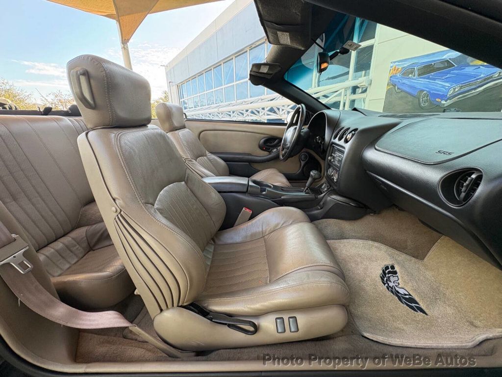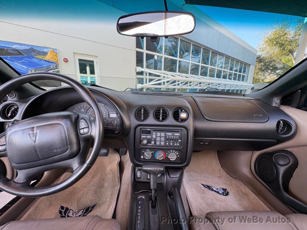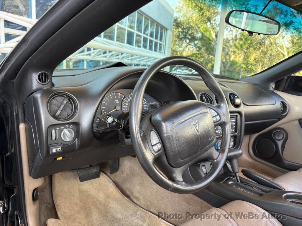 2002 Pontiac Firebird WS6 Tribute Why This Car Is Special The 2002 Pontiac Firebird WS6 Tribute is a classic American sports car that embodies the spirit of the road. With its powerful performance, striking design, and a legacy that dates back to the 1960s, this model continues to captivate enthusiasts. This particular Firebird is a blend of nostalgic design and modern engineering, making it an impressive choice for collectors and driving enthusiasts alike. The Firebird has a rich history, having originally been launched in 1967 as a response to the muscle car craze sweeping the nation. This 2002 model, while bearing the marks of its storied lineage, offers contemporary features that enhance both the driving experience and aesthetic appeal. It carries the refined performance of the WS6 package, adding a level of excitement to your daily drive or weekend adventures. Features List 5.7-liter LS1 V8 engine 345 horsepower 4-speed automatic transmission Rear-wheel drive SLP Ram Air induction system Composite hood with functional air scoops High-flow air box Stainless steel performance exhaust system SLP-specific suspension components 17-inch lightweight aluminum wheels P275/40ZR17 performance tires Power-assisted four-wheel disc brakes with ABS Power rack-and-pinion steering Limited-slip differential Removable glass T-top roof panels Pop-up halogen headlights Fog lamps Integrated rear spoiler Leather-trimmed bucket seats 6-way power drivers seat Tilt steering wheel Leather-wrapped steering wheel with audio controls Cruise control Air conditioning Power windows, locks, and mirrors Remote keyless entry 10-speaker Monsoon premium audio system with CD player Mechanical Under the hood, the 2002 Firebird is powered by an impressive 5.7-liter LS1 V8 engine, generating a robust 345 horsepower. This potent engine is coupled with a 4-speed automatic transmission, delivering smooth, responsive shifts that enhance the overall driving experience. The rear-wheel drive setup ensures exceptional handling while allowing for a truly thrilling ride. Sporting a WS6 Tribute, this Firebird features an SLP Ram Air induction system that enhances airflow and acceleration, contributing to the cars exhilarating performance. The high-flow air box and stainless steel performance exhaust system further increase power output, giving this vehicle a captivating sound that turns heads wherever it goes. Interior Step inside the Firebird, and youre greeted by a driver-focused cockpit, perfectly tailored for comfort and performance. The interior boasts leather-trimmed bucket seats that provide excellent support, making it ideal for both spirited driving and everyday use. The 6-way power driver's seat enhances your ability to find the ideal position behind the wheel, ensuring a comfortable drive. Cruise control, air conditioning, and a 10-speaker Monsoon premium audio system with a CD player are just a few of the luxuries found in this Firebird. The leather-wrapped steering wheel includes audio controls, allowing you to manage your tunes without taking your eyes off the road. Exterior This Firebird is dressed in a sleek black exterior that exudes an aggressive presence on the road. Functional air scoops on its composite hood not only emphasize its sporty design but also contribute to its performance. The pop-up halogen headlights and fog lamps add a distinctive look while ensuring visibility in various driving conditions. The integrated rear spoiler enhances aerodynamics, further ensuring that this beauty is not just about looks but also performance. Riding on 17-inch lightweight aluminum wheels fitted with P275/40ZR17 performance tires provides an excellent blend of style and handling, elevating this Firebird's driving experience. Conclusion The 2002 Pontiac Firebird WS6 Tribute is not just a car; it is a statement of style and performance that has stood the test of time. With its powerful LS1 V8 engine, refined interior features, and aggressivKEY FEATURES AND OPTIONS Comes equipped with: Air Conditioning. This Pontiac Firebird also includes Power Driver's Seat, Clock, Climate Control, Tachometer, Cruise Control, Tilt Steering Wheel, Power Steering, Power Windows, Steering Radio Controls, Power Mirrors, Leather Steering Wheel, Driver Airbag, Fog Lights, Passenger Airbag, Intermittent Wipers, Keyless Entry, Rear Defogger, AM/FM, CD Player, Cup Holders, Remote Trunk Lid, Vanity Mirrors, Body Side Moldings, Premium Sound, Carpeted Floor Mats. WeBe Autos Specializes in Marketing and Advertising Muscle, Classic, Vintage and Specialty Cars. We offer Professional Photography, HD Movies, and Staging that Sells Cars. Let us showcase and sell your specialty car. Please visit our website for more details. Keep in Touch, Michael Runnalls Specialty Car Marketing & Media WeBe Autos Ltd. Long Island, NY 11780 Michael@WeBeAutos.com www.WeBeAutos.com (O)631-339-0399 (C)516-729-2003 Skype: webeautos (F)631-389-2605 - - Air Conditioning, Climate Control, Cruise Control, Power Steering, Power Windows, Power Mirrors, Leather Steering Wheel, Power Drivers Seat, Clock, Tachometer, Tilt Steering Wheel, Steering Wheel Radio Controls, Driver Airbag, Passenger Airbag, Keyless Entry, Rear Defogger, Fog Lights, Intermittent Wipers, AM/FM, CD Player, Body Side Moldings, Carpeted Floor Mats, Cup Holders, Premium Sound, Remote Trunk Lid, Vanity Mirrors - Contact Michael Runnalls at 631-339-0399 or Michael@WeBeAutos.com for more information. -