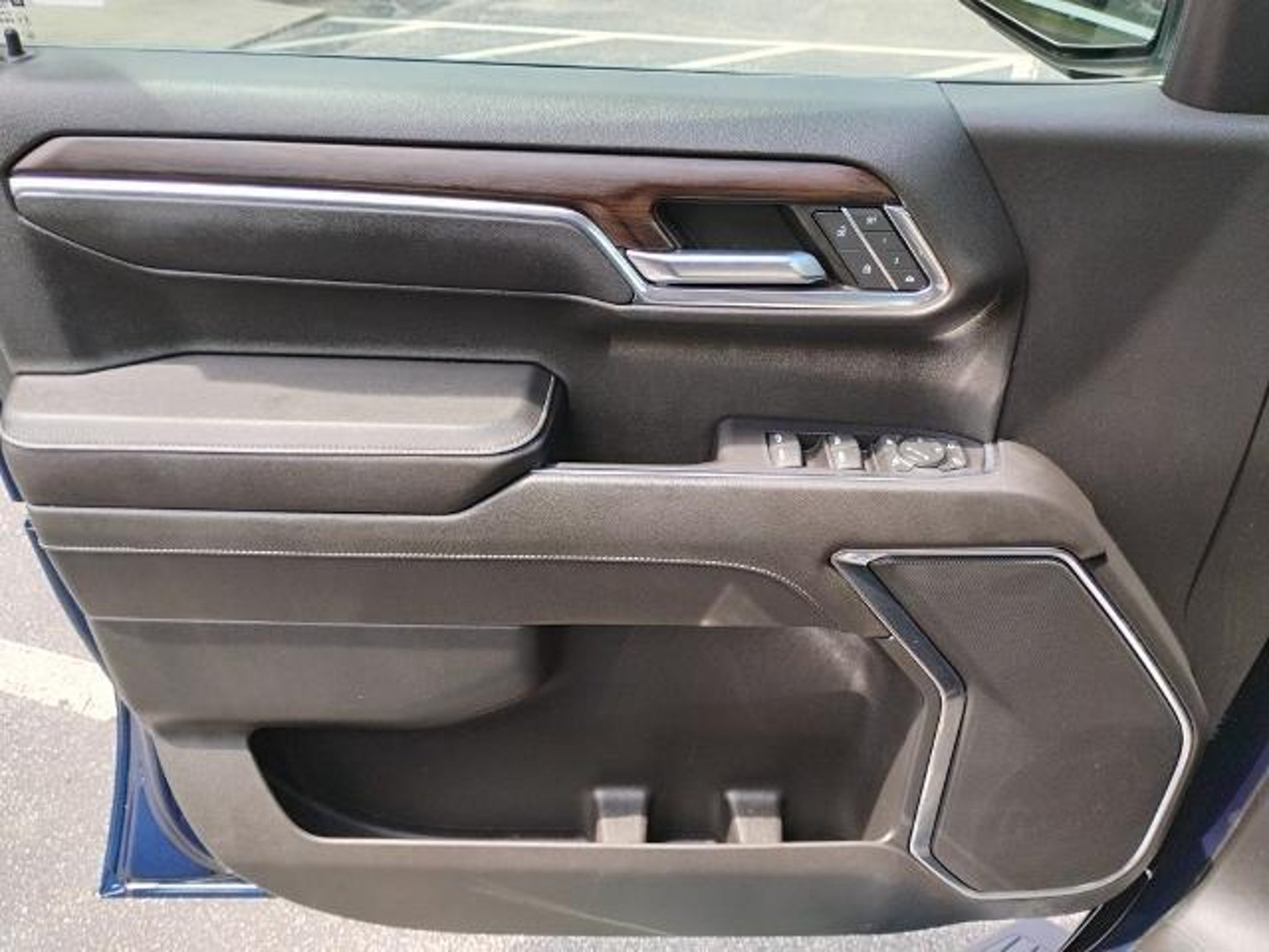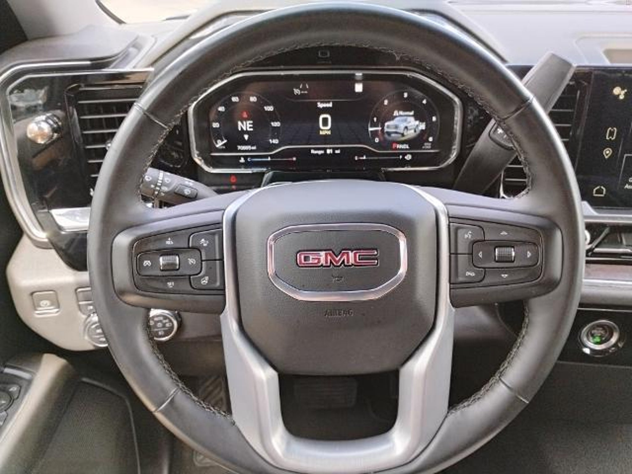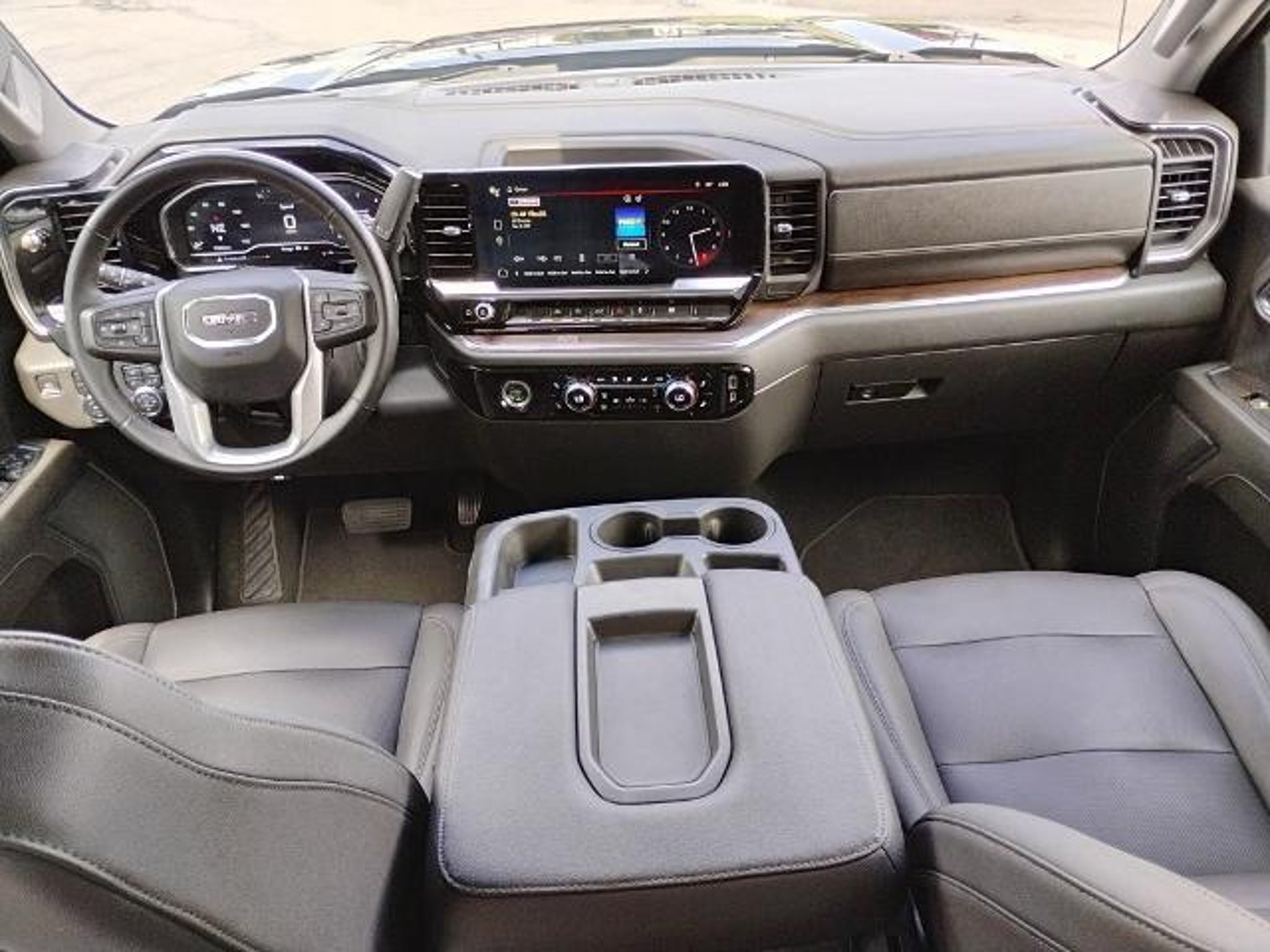 This 2023 GMC Sierra 1500 SLT in Pacific Blue Metallic comes with the following features: EcoTec3 5.3L V8 10-Speed Automatic 4WD Preferred Equipment Group 4SA (120-Volt Bed Mounted Power Outlet, 120-Volt Instrument Panel Power Outlet, 170 Amp Alternator, 2 Charge/Data USB Ports, 2 Type-C Charge-Only Rear USB Ports, 6-Speaker Audio System Feature, Auto-Locking Rear Differential, Auxiliary External Transmission Oil Cooler, Chrome Header & Chrome Grille Insert Bars, Color-Keyed Carpeting Floor Covering, Compass, Deep-Tinted Glass, Electric Rear-Window Defogger, Electrical Steering Column Lock, Front Frame-Mounted Black Recovery Hooks, Front Rainsensing Wipers, GMC Connected Access Capable, HD Rear Vision Camera, Keyless Open & Start, LED Cargo Area Lighting, Manual Tilt-Wheel & Telescoping Steering Column, OnStar & GMC Connected Services Capable, Perimeter Lighting, Power Door Locks, Power Front Passenger Windows w/Express Up/Down, Power Front Windows w/Driver Express Up/Down, Power Rear Windows w/Express Down, Push Button Start, Rear Wheelhouse Liners, Remote Vehicle Starter System, SiriusXM w/360L, Steering Wheel Audio Controls, Theft Deterrent System (Unauthorized Entry), Wi-Fi Hotspot Capable, and Wireless Phone Projection), Standard Suspension Package, Trailering Package (Hitch Guidance), 10-Speed Automatic, 4WD, Black Leather, 10-Way Power Driver Seat Adjuster w/Lumbar, 10-Way Power Passenger Seat Adjuster w/Lumbar, 3.23 Rear Axle Ratio, 4-Wheel Disc Brakes, 6 Speakers, ABS brakes, Air Conditioning, Alloy wheels, AM/FM radio, Apple CarPlay/Android Auto, Auto High-beam Headlights, Auto-dimming door mirrors, Auto-dimming Rear-View mirror, Automatic Emergency Braking, Automatic temperature control, Brake assist, Buckle to Drive, Bumpers: chrome, Delay-off headlights, Driver door bin, Driver Memory, Driver vanity mirror, Dual front impact airbags, Dual front side impact airbags, Electronic Stability Control, Emergency communication system: OnStar and GMC connected services capable, Following Distance Indicator, Forward Collision Alert, Front 40/20/40 Split-Bench Seat, Front anti-roll bar, Front Center Armrest w/Storage, Front dual zone A/C, Front fog lights, Front Pedestrian Braking, Front reading lights, Front wheel independent suspension, Fully automatic headlights, Heated door mirrors, Heated Driver & Front Outboard Passenger Seating, Heated front seats, Heated steering wheel, Illuminated entry, IntelliBeam Automatic High Beam On/Off, Lane Keep Assist w/Lane Departure Warning, Low tire pressure warning