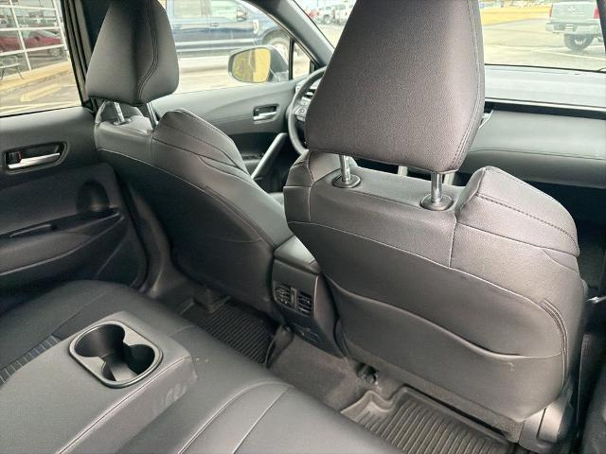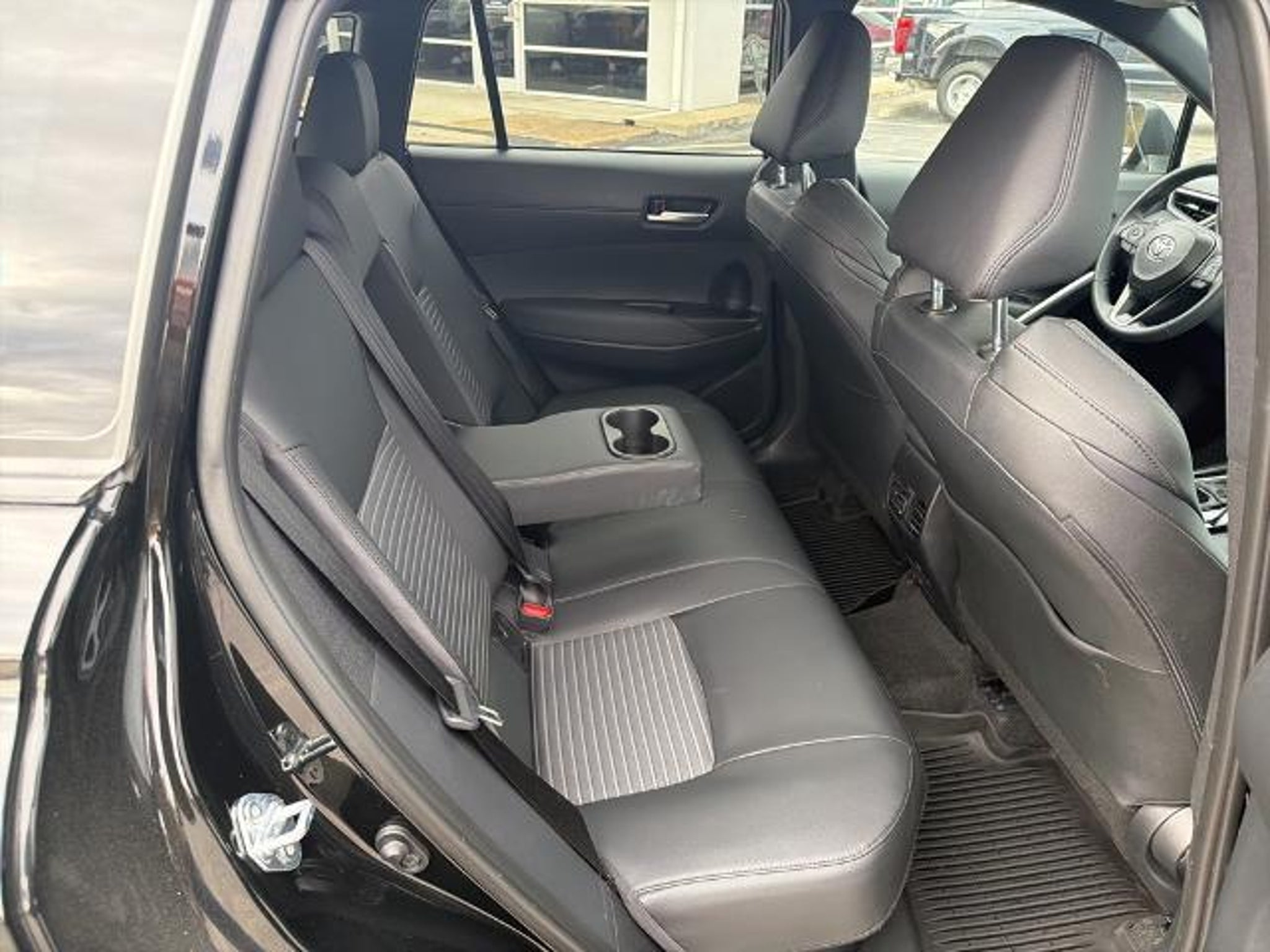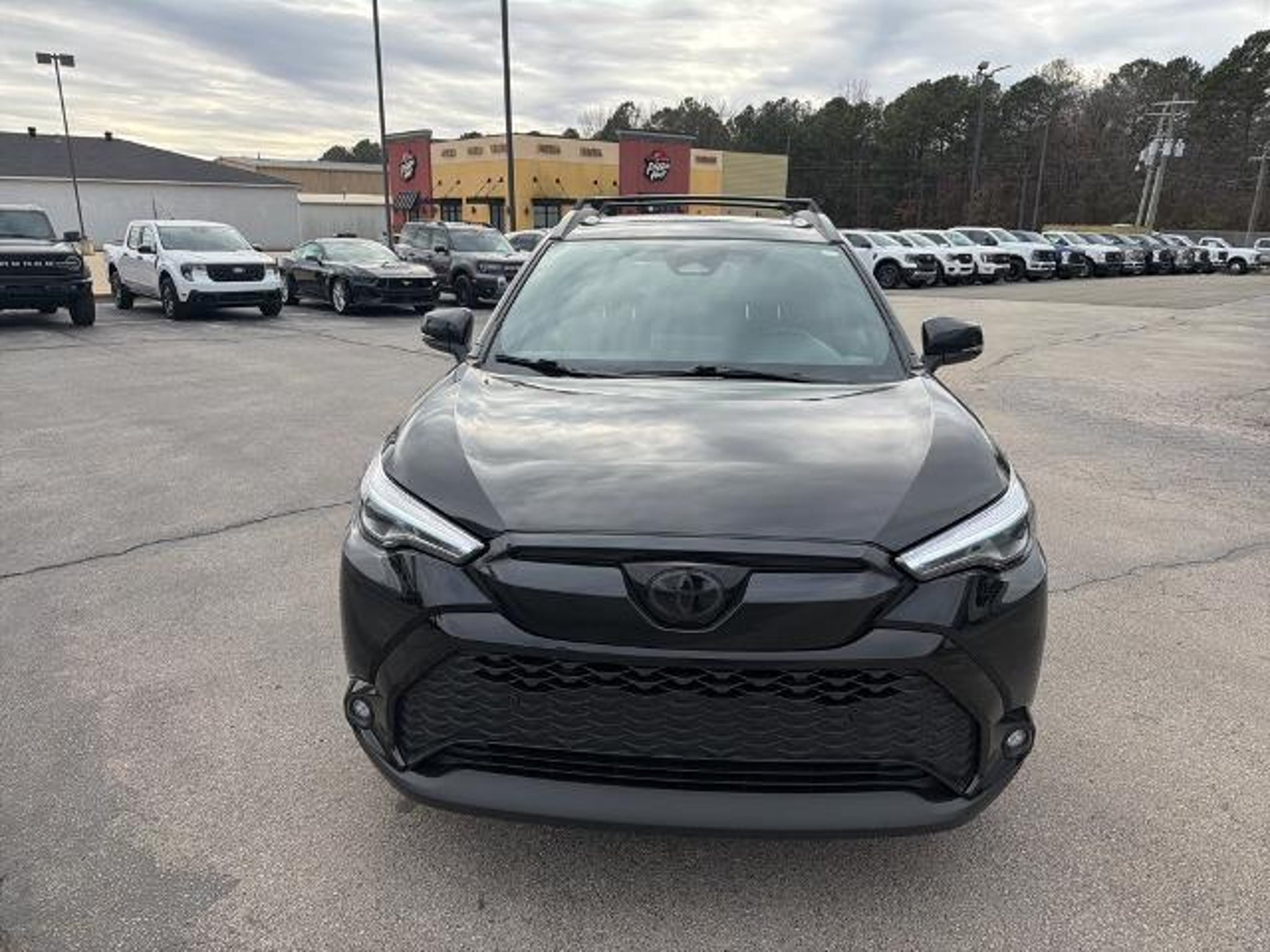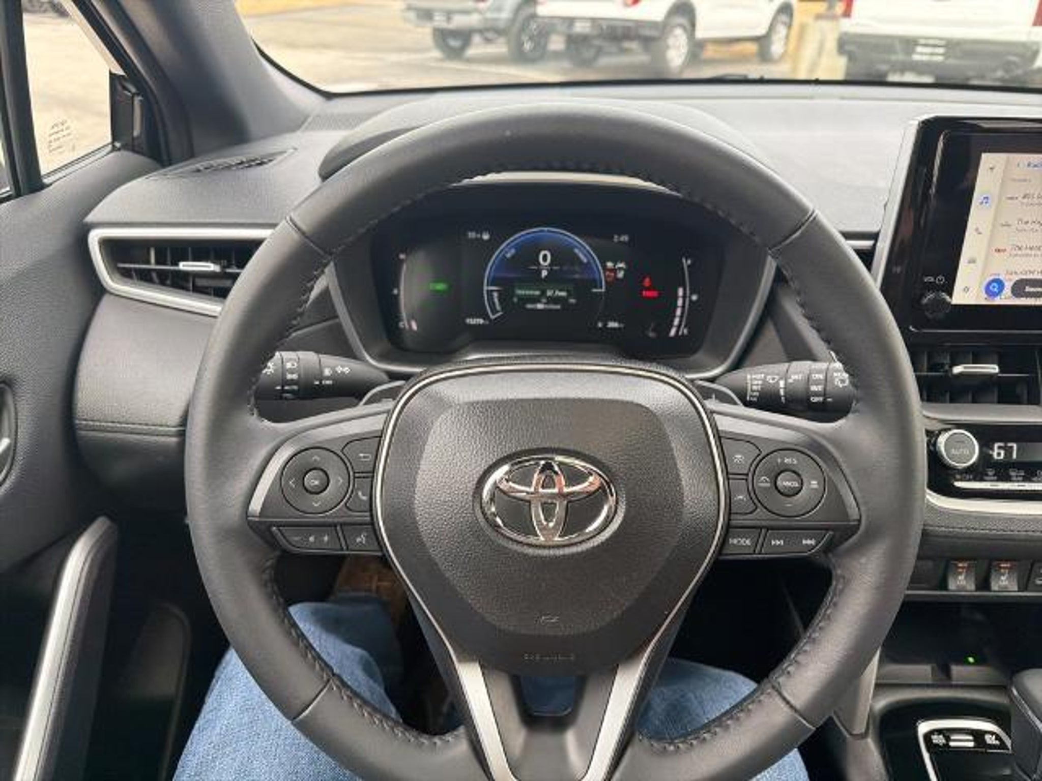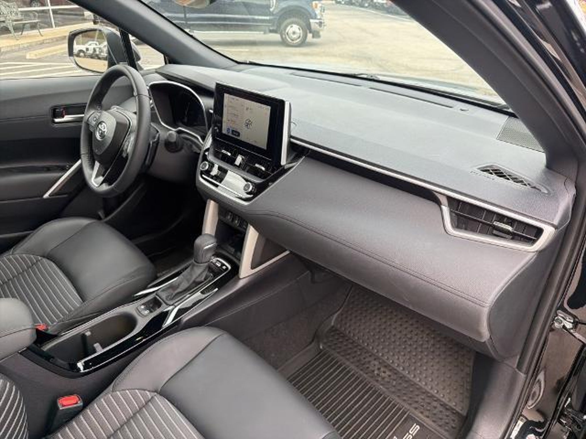 This 2025 Toyota Corolla Cross Hybrid XSE in Jet Black comes with the following features: 2.0L I4 PDI Hybrid DOHC 16V LEV3-SULEV30 150hp eCVT AWD 2.0L I4 PDI Hybrid DOHC 16V LEV3-SULEV30 150hp, ABS brakes, Active Cruise Control, Alloy wheels, Electronic Stability Control, Front dual zone A/C, Heated door mirrors, Heated Front Bucket Seats, Heated front seats, Illuminated entry, Low tire pressure warning, Remote keyless entry, Traction control, 4-Wheel Disc Brakes, 6 Speakers, Air Conditioning, AM/FM radio: SiriusXM, Apple CarPlay/Android Auto, Auto High-beam Headlights, Auto-dimming Rear-View mirror, Automatic temperature control, Brake assist, Bumpers: body-color, Delay-off headlights, Driver door bin, Driver vanity mirror, Dual front impact airbags, Dual front side impact airbags, Emergency communication system: Safety Connect (up to 10-year trial subscription), Exterior Parking Camera Rear, Four wheel independent suspension, Front anti-roll bar, Front Bucket Seats, Front Center Armrest, Front fog lights, Front reading lights, Fully automatic headlights, Garage door transmitter: HomeLink, Knee airbag, Leather steering wheel, Occupant sensing airbag, Outside temperature display, Overhead airbag, Panic alarm, Passenger door bin, Passenger vanity mirror, Power door mirrors, Power driver seat, Power steering, Power windows, Radio data system, Radio: 8 Toyota Audio Multimedia with 6 Speakers, Rear anti-roll bar, Rear seat center armrest, Rear side impact airbag, Rear window defroster, Rear window wiper, SofTex Mixed Media Seat Trim, Speed control, Split folding rear seat, Spoiler, Steering wheel mounted audio controls, Tachometer, Telescoping steering wheel, Tilt steering wheel, Trip computer, Turn signal indicator mirrors, Variably intermittent wipers, and Wheels: 18 Black-Painted Machined Sport Alloy. 2.0L I4 PDI Hybrid DOHC 16V LEV3-SULEV30 150hp, ABS brakes, Active Cruise Control, Alloy wheels, Electronic Stability Control, Front dual zone A/C, Heated door mirrors, Heated Front Bucket Seats, Heated front seats, Illuminated entry, Low tire pressure warning, Remote keyless entry, Traction control. Odometer is 1639 miles below market average! CARFAX One-Owner. 45/38 City/Highway MPG Clean CARFAX.