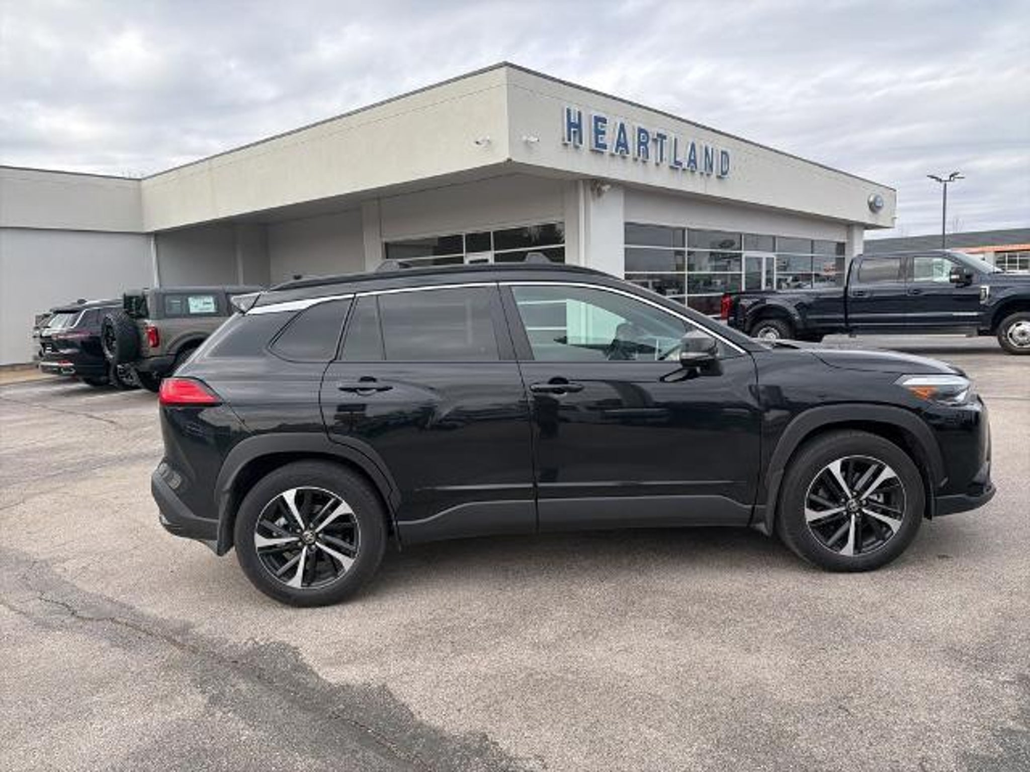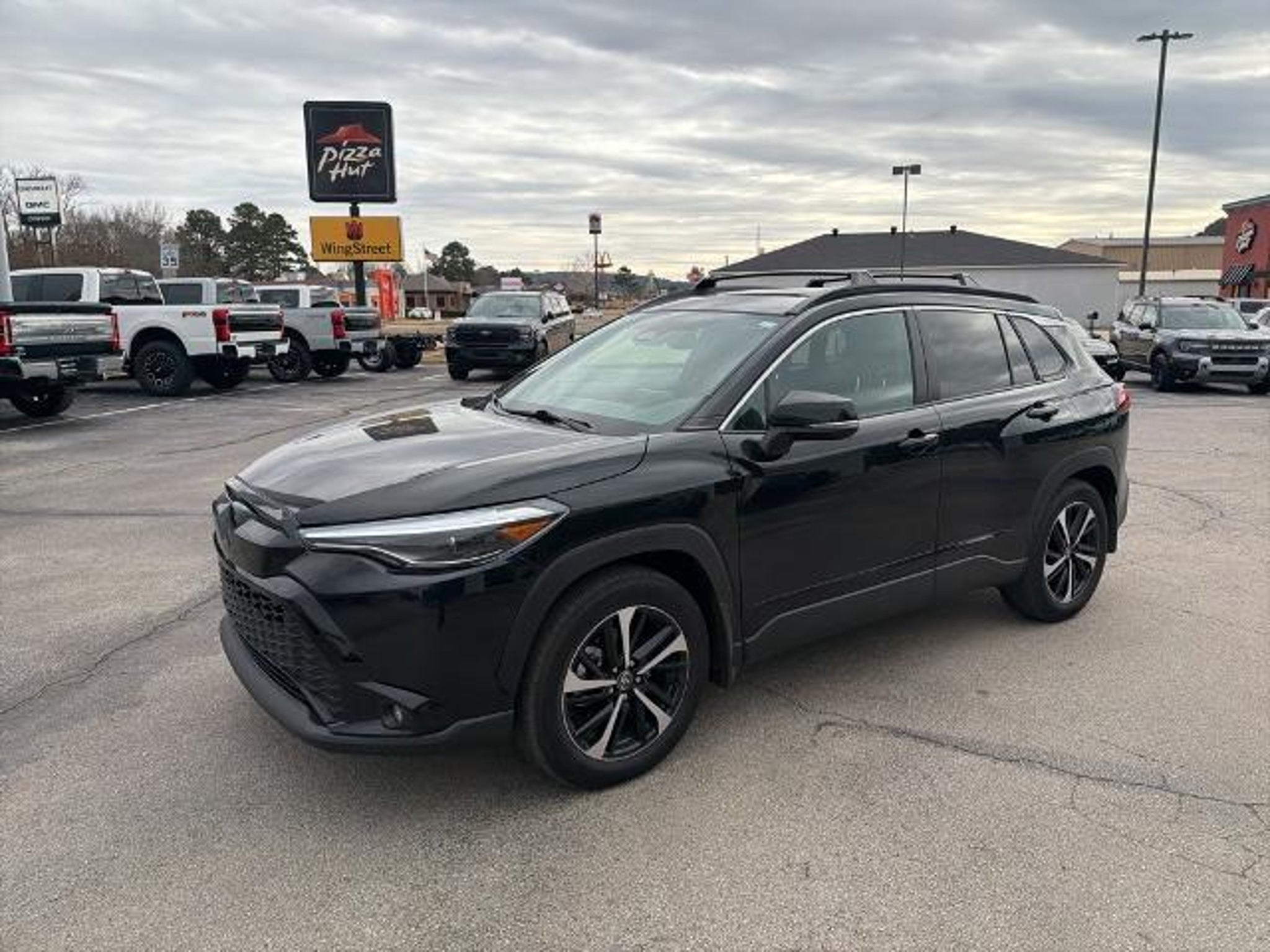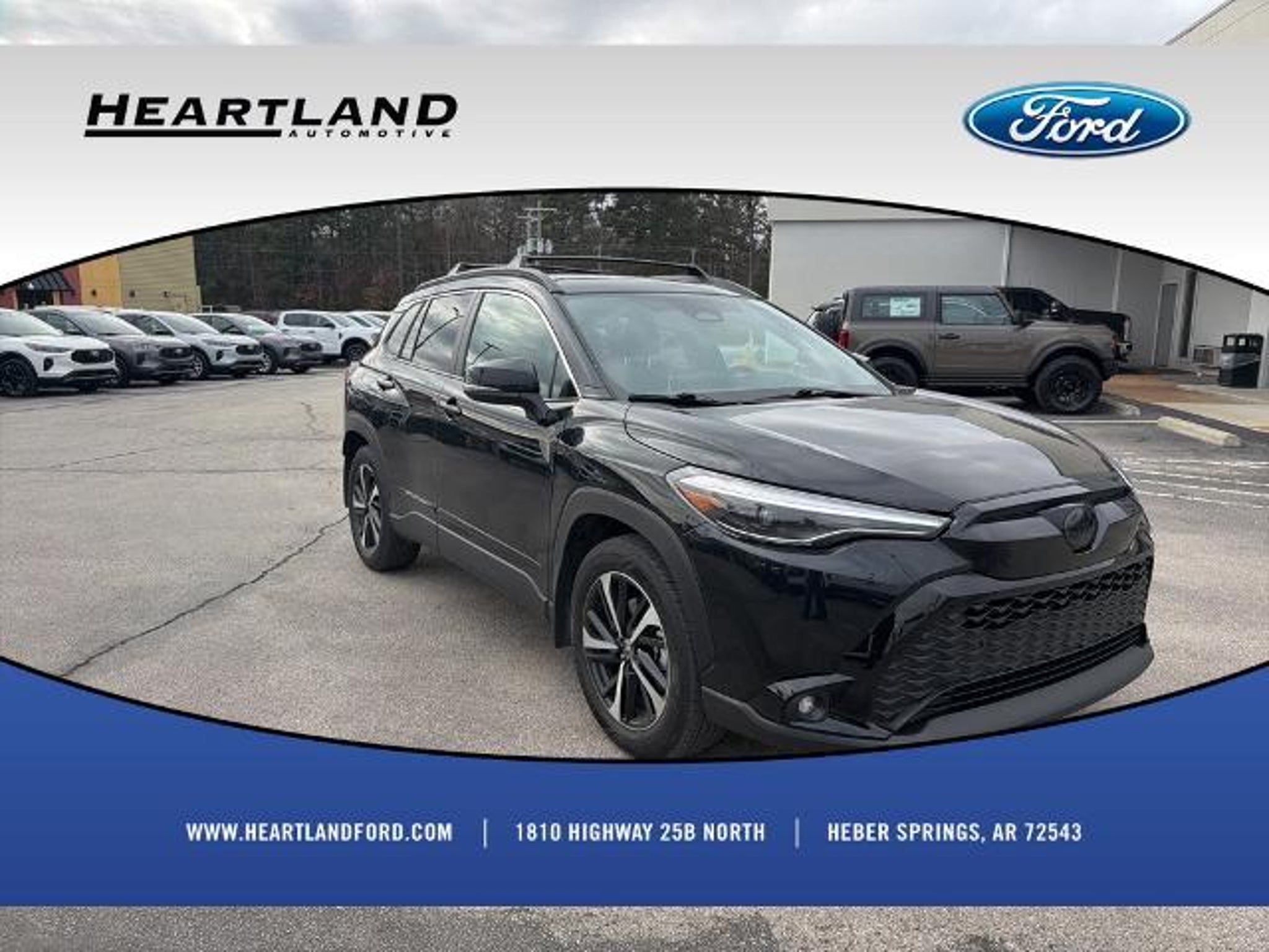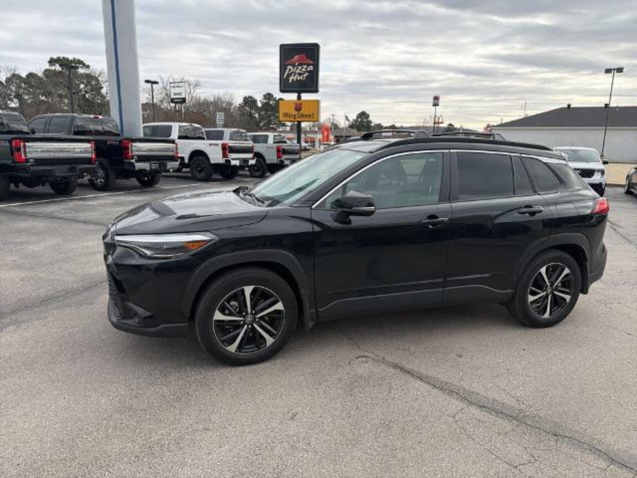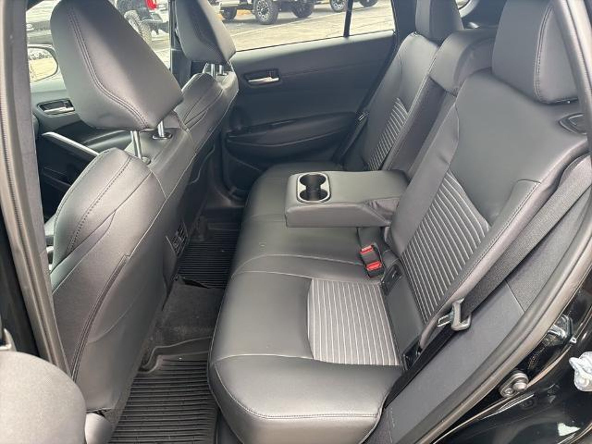 This 2025 Toyota Corolla Cross Hybrid XSE in Jet Black comes with the following features: 2.0L I4 PDI Hybrid DOHC 16V LEV3-SULEV30 150hp eCVT AWD 2.0L I4 PDI Hybrid DOHC 16V LEV3-SULEV30 150hp, ABS brakes, Active Cruise Control, Alloy wheels, Electronic Stability Control, Front dual zone A/C, Heated door mirrors, Heated Front Bucket Seats, Heated front seats, Illuminated entry, Low tire pressure warning, Remote keyless entry, Traction control, 4-Wheel Disc Brakes, 6 Speakers, Air Conditioning, AM/FM radio: SiriusXM, Apple CarPlay/Android Auto, Auto High-beam Headlights, Auto-dimming Rear-View mirror, Automatic temperature control, Brake assist, Bumpers: body-color, Delay-off headlights, Driver door bin, Driver vanity mirror, Dual front impact airbags, Dual front side impact airbags, Emergency communication system: Safety Connect (up to 10-year trial subscription), Exterior Parking Camera Rear, Four wheel independent suspension, Front anti-roll bar, Front Bucket Seats, Front Center Armrest, Front fog lights, Front reading lights, Fully automatic headlights, Garage door transmitter: HomeLink, Knee airbag, Leather steering wheel, Occupant sensing airbag, Outside temperature display, Overhead airbag, Panic alarm, Passenger door bin, Passenger vanity mirror, Power door mirrors, Power driver seat, Power steering, Power windows, Radio data system, Radio: 8 Toyota Audio Multimedia with 6 Speakers, Rear anti-roll bar, Rear seat center armrest, Rear side impact airbag, Rear window defroster, Rear window wiper, SofTex Mixed Media Seat Trim, Speed control, Split folding rear seat, Spoiler, Steering wheel mounted audio controls, Tachometer, Telescoping steering wheel, Tilt steering wheel, Trip computer, Turn signal indicator mirrors, Variably intermittent wipers, and Wheels: 18 Black-Painted Machined Sport Alloy. 2.0L I4 PDI Hybrid DOHC 16V LEV3-SULEV30 150hp, ABS brakes, Active Cruise Control, Alloy wheels, Electronic Stability Control, Front dual zone A/C, Heated door mirrors, Heated Front Bucket Seats, Heated front seats, Illuminated entry, Low tire pressure warning, Remote keyless entry, Traction control. Odometer is 1639 miles below market average! CARFAX One-Owner. 45/38 City/Highway MPG Clean CARFAX.