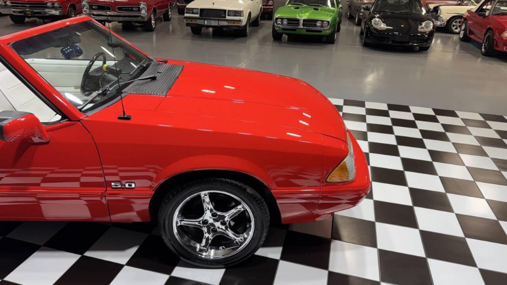 1992 Ford Mustang LX Supercharged This 1992 Ford Mustang LX convertible was acquired by the previous owner in 2018, and subsequent work consisted of installing a Vortech-supercharged 331ci V8 linked with a Freddy Brown three-speed automatic transmission with overdrive. The car is finished in red over white leather upholstery, and additional modifications include subframe connectors, long-tube exhaust headers, MSD ignition components, aluminum SVO cylinder heads, an aluminum radiator, a MagnaFlow exhaust system, and AutoMeter instrumentation. Features include chrome 17 five-spoke wheels, a white convertible soft top, a rear spoiler, and power windows and door locks. The car was repainted red under prior ownership. Exterior details include a white convertible soft top, a fixed antenna, a rear spoiler, bright exhaust finishers, and body-color mirrors. Chrome 17 five-spoke wheels are mounted with 245/45 Sumitomo HTR ZII tires. Full-length subframe connectors have been fitted along with aftermarket shocks, struts, and sway bars. Braking is handled by power-assisted front discs and rear drums. The front bucket seats and a rear bench were re-trimmed in white leather upholstery with red piping. Amenities include a B&M shifter and power windows and door locks. The four-spoke steering wheel frames a 140-mph speedometer and a tachometer as well as gauges for coolant temperature, oil pressure, voltage, and fuel level. AutoMeter Phantom instrumentation consists of a tachometer and gauges for boost pressure, transmission temperature, and coolant temperature. The replacement 331ci V8 was installed in 2018 at Mustang Magic of Deer Park, New York, and is fitted with the following components: Vortech self-oiling supercharger B303 camshaft Resurfaced aluminum SVO cylinder heads Ford Racing hardened pushrods, lifters, and high-flow fuel injectors Long-tube exhaust headers COMP Cams Ultra Pro Magnum roller rocker arms ARP head bolts Aeromotive 340 electric fuel pump MSD ignition system components Aluminum radiator. Power is sent to the rear wheels through a three-speed automatic with overdrive and a limited-slip differential. You will proud to own this one! Check out my Video Clip! TRADE IN s WELCOME! *IF YOU can dream it YOU can do it! MGM Buy it Now price $18,995.00 Financing available $2000 down pmt Must have good credit Sales tax/delivery can be financed Apply today on our website Text zip code for delivery quote 847-848-1850 All cars are sold in as-is condition Shown by appointment only! MGM Classic Cars LLC 150 S. Church Street Addison, IL 60101 Mon-Fri 9 am-5 pm Sat 10 am-3 pm WE HAVE OVER 180 CARS IN STOCK! WE OWN OUR INVENTORY! NO CONSIGNMENTS INFLATED COMMISSIONS! Visit our website Mgmclassiccars.com