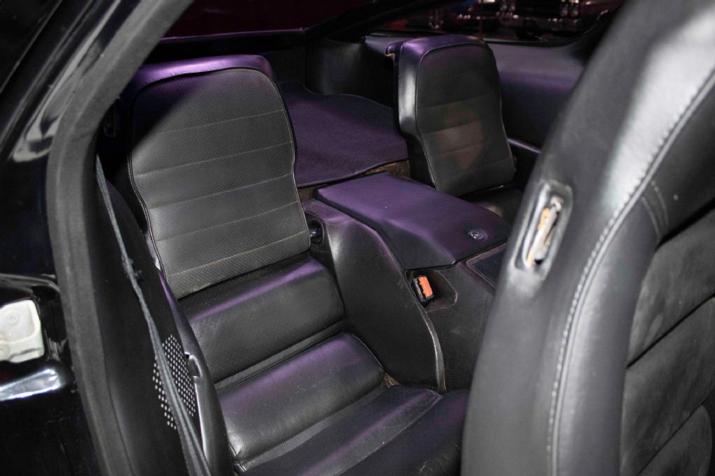 The interior is trimmed in black upholstery with sueded inserts covering later-model power-adjustable front seats installed in 2018. Features include: