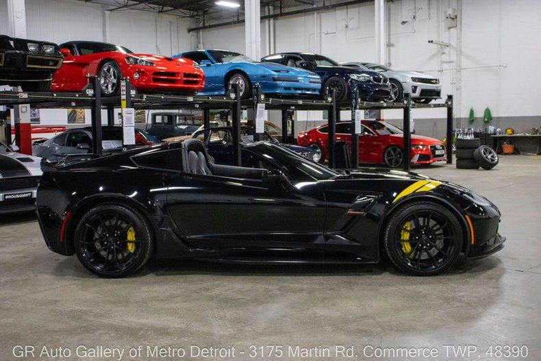 GR Auto Gallery is pleased to present this 2017 Chevrolet Corvette Grand Sport for your consideration. This Grand Sport comes finished in a sleek Black exterior over a matching Black interior and shows just 33,036 miles. Power comes from a 6.2L V8 engine paired with an 8-speed automatic transmission, delivering the performance and refinement Corvette is known for. This example is well equipped with features including Bose speakers, power windows, power door locks, power seating, dual climate control, heated and cooled seats, memory driver seat settings, removable hard top, heads-up display, tinted windows, paddle shifters, intermittent wipers, push-to-start ignition, front and rear HD cameras, sport mode select, WeatherTech floor mats, yellow Corvette brake calipers, and much more. Drive this one out of our showroom or have us assist with shipping it to you anywhere in the United States! Don't hesitate to call us with any questions or for more information.