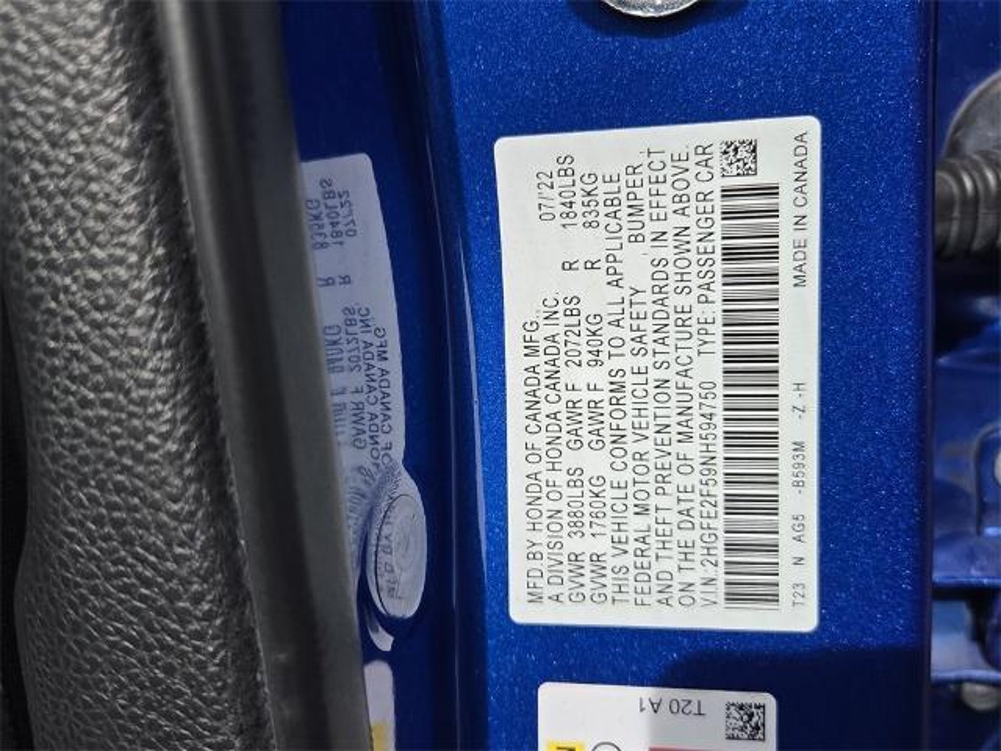 VIN 2HGFE2F59NH594750