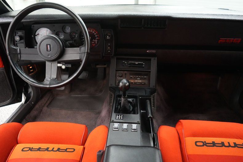 THIS VEHICLE IS LOCATED IN OUR PA. SHOWROOM !!!!! 5.0L L69 H. O. V8 Chevrolet Engine. 5-Speed Manual Transmission. Power Steering. Power Brakes. Front Disc Brakes. Rear Drum Brakes. 15 Inch Wheels. Front Tires: 215/65/15. Rear Tires: 215/65/15. GM 10 Bolt Rear End. 3.73 Gear Ratio. Stock Intake. 4 Barrel Quadrajet Carburetor. Stock Distributor. Stock Coil. Mechanical Fuel Pump. Stock Ignition. Stock Radiator. Electric Cooling Fan. Black Exterior. 13,972 Original Miles. Original Wheels Included. Color Matched Driver & Passenger Side Mirrors. Removable T-Tops. Rear Defrost. Hatch Mounted Spoiler. Black Window Trim. Fog Lights. Hood Louvers. Orange & Red Conteur Cloth Interior. Power Windows. Front Bucket Seats. Rear Bench Seat. Factory AM/FM/Cassette Radio. Manual Adjust Seats. Remote Driver Side Mirror. Factory Gauges. Tilt Steering Column. Center Console. 1 1/4" Front Sway Bar. 1" Rear Sway Bar. Black Carpeting. Black Headliner. Black & Orange Door Panels. 3" Exhaust . Transverse Muffler. Dual Exhaust Tips. Catalytic Converter. Lower Body Stripes. All Original. Real Z/28.