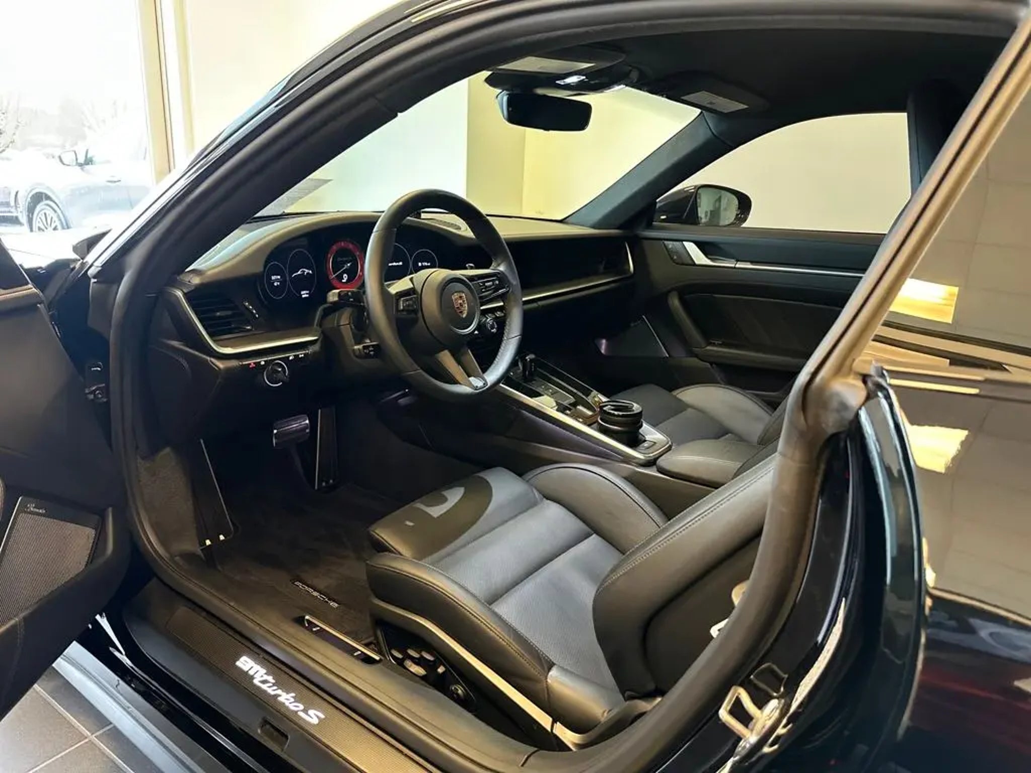 Introducing the 2023 Porsche 911 Turbo S - a truly exceptional sports car that epitomizes the pinnacle of engineering and performance. This stunning Black beauty is a testament to Porsche's unwavering commitment to excellence, boasting a captivating design and an unparalleled driving experience. Beneath the sleek exterior lies a heart-pounding 3.8L H6 Turbocharged DOHC 24V engine that delivers an awe-inspiring 572 horsepower, seamlessly channeled through an 8-Speed Porsche Doppelkupplung (PDK) transmission and Porsche's renowned all-wheel-drive system. With a thrilling 0-60 mph time of just 2.6 seconds and a top speed of 205 mph, this 911 Turbo S is a true performance icon, ready to ignite your passion for the open road. - 14-Way Power Sport Seats w/Memory Package - 18-Way Adaptive Sport Seats Plus w/Memory Package - 911 Turbo SportDesign Package in High Gloss Black - Exclusive Manufaktur Leather Interior - Exterior Package Painted in High Gloss Black - Smoking Package - Storage Package - Navigation system: Porsche Communication Management (PCM) - Exclusive Manufaktur Lthr Seat Trim w/Two-Tone Interior The 2023 Porsche 911 Turbo S offers an unparalleled driving experience, with a host of advanced features that cater to the discerning enthusiast. From the adaptive suspension and four-wheel independent suspension to the powerful brakes and electronic stability control, this sports car is engineered to deliver uncompromising performance and exceptional handling. Step inside the cabin and be enveloped in a world of luxury and refinement. The Exclusive Manufaktur Leather Interior, with its two-tone design, creates a truly bespoke atmosphere, while the Porsche Communication Management system provides seamless connectivity and intuitive control at your fingertips. Whether you're carving through twisty mountain roads or cruising down the highway, the 2023 Porsche 911 Turbo S is a masterpiece of engineering that will captivate your senses and leave an indelible mark on your driving experience. This exceptional sports car is a true testament to Porsche's unwavering commitment to excellence, and it's waiting to be discovered by the discerning enthusiast. We invite you to experience the power, precision, and poise of the 2023 Porsche 911 Turbo S. Schedule a test drive today and unlock the true potential of this extraordinary machine.