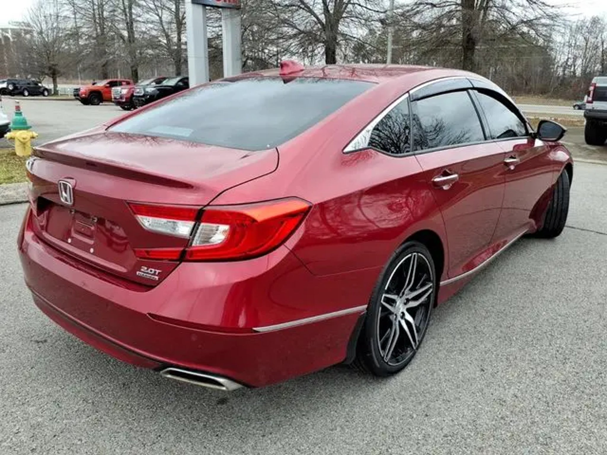 The 2021 Honda Accord comes equipped with the following Ivory Leather, 10 Speakers, 4-Wheel Disc Brakes, ABS brakes, Adaptive Cruise Control: Adaptive Cruise Control (ACC) with Low-Speed Follow, Adaptive suspension, Air Conditioning, Alloy wheels, AM/FM radio: SiriusXM, Apple CarPlay/Android Auto, Auto High-beam Headlights, Auto-dimming Rear-View mirror, Automatic temperature control, Blind Spot Information (BSI) System warning, Brake assist, Bumpers: body-color, Compass, Delay-off headlights, Driver door bin, Driver vanity mirror, Dual front impact airbags, Dual front side impact airbags, Electronic Stability Control, Emergency communication system: HondaLink, Exterior Parking Camera Rear, Forward collision: Collision Mitigation Braking System (CMBS) FCW mitigation, Four wheel independent suspension, Front anti-roll bar, Front Bucket Seats, Front Center Armrest, Front dual zone A/C, Front fog lights, Front reading lights, Fully automatic headlights, Garage door transmitter: HomeLink, Heads-Up Display, Heated & Ventilated Front Bucket Seats, Heated door mirrors, Heated front seats, Heated rear seats, Illuminated entry, Knee airbag, Lane Departure Warning System, Leather steering wheel, Leather-Trimmed Seats, Low tire pressure warning, Memory seat, Navigation System, Occupant sensing airbag, Outside temperature display, Overhead airbag, Overhead console, Panic alarm, Passenger door bin, Passenger vanity mirror, Power door mirrors, Power driver seat, Power moonroof, Power passenger seat, Power steering, Power windows, Radio data system, Radio: 450-Watt AM/FM/HD Premium Audio System, Rain sensing wipers, Rear anti-roll bar, Rear seat center armrest, Rear window defroster, Remote keyless entry, Security system, Speed control, Speed-sensing steering, Speed-Sensitive Wipers, Split folding rear seat, Steering wheel mounted audio controls, Tachometer, Telescoping steering wheel, Tilt steering wheel, Traction control, Trip computer, Turn signal indicator mirrors, Variably intermittent wipers, Ventilated front seats, and Wheels: 19 Machine-Finished Alloy w/Gray Inserts. 2021 Honda Accord Ivory Leather. CARFAX One-Owner. Red 2021 Honda Accord Touring 2.0T FWD 10-Speed Automatic I4 DOHC 16V Turbocharged Odometer is 24220 miles below market average! 22/32 City/Highway MPG Call us today to schedule your VIP test drive!