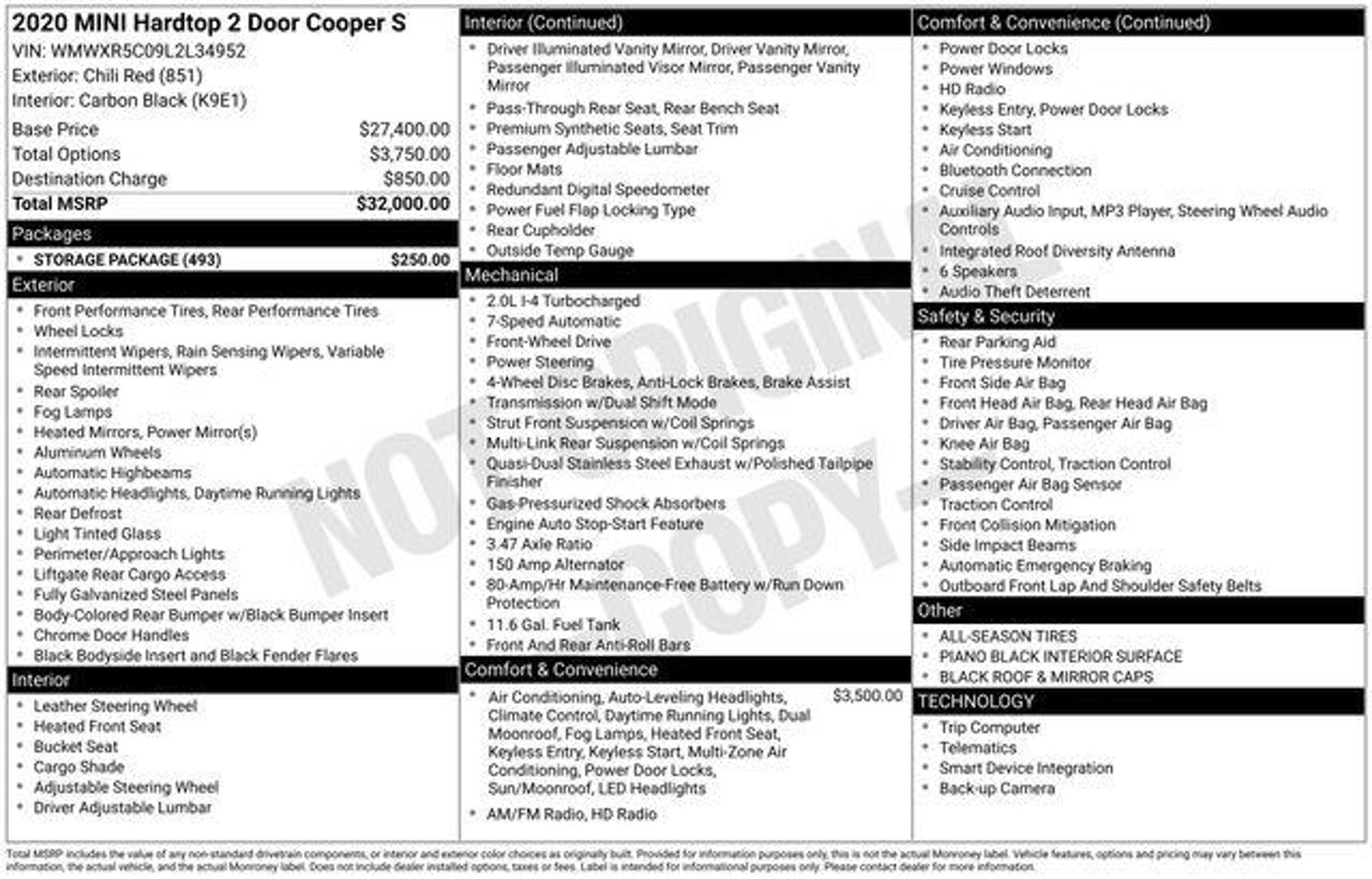Discover the perfect blend of style, performance, and convenience with this 2020 MINI Cooper S Classic. Boasting a sleek red exterior and an impressive 2.0L 16V TwinPower Turbo engine, this MINI is ready to take you on an unforgettable driving experience. - Signature Trim features: Comfort Access Keyless Entry, LED Fog Lights, Panoramic Moonroof, Piano Black Interior Surface, Automatic Climate Control, LED Headlights with Cornering Lights, All-Season Tires, Heated Front Seats - Storage Package - Remote keyless entry, Traction control, ABS brakes, Emergency communication system, Low tire pressure warning, Electronic Stability Control, Heated door mirrors, Illuminated entry, Alloy wheels This MINI Cooper S Classic is more than just a head-turning vehicle ? it's a testament to MINI's commitment to engineering excellence. With an EPA-estimated 26 MPG in the city and 35 MPG on the highway, this MINI delivers impressive fuel efficiency without sacrificing the exhilarating performance you expect. As a Certified Pre-Owned vehicle, this MINI has undergone a rigorous inspection and reconditioning process, ensuring it meets the highest standards of quality and reliability. You can drive with confidence, knowing this MINI has been meticulously cared for and is backed by a comprehensive warranty. Experience the thrill of the open road in this 2020 MINI Cooper S Classic. With its dynamic handling, premium features, and exceptional value, this MINI is the perfect choice for the discerning driver who demands the best. Visit our showroom today and let us demonstrate why this MINI Cooper S Classic is the perfect fit for you.
