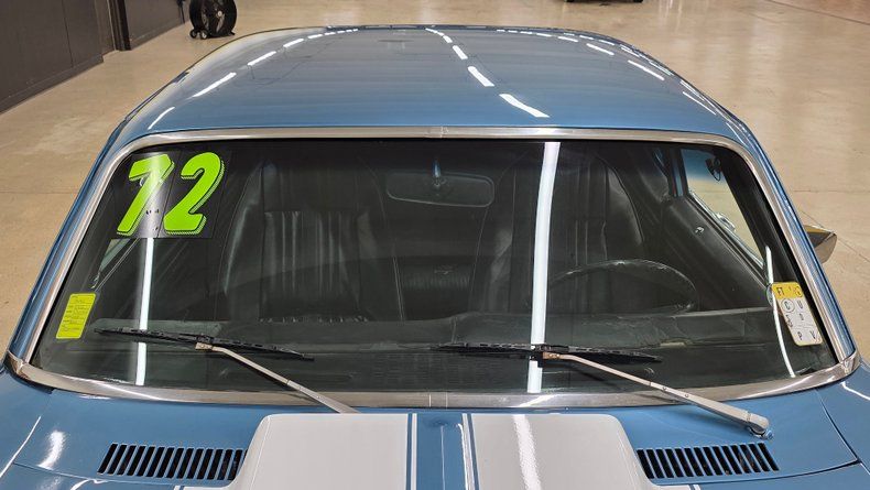 1972 Chevrolet Nova two-door sport coupe SS tribute. 350 V8 engine featuring aluminum heads, a Holley four-barrel carburetor, and paired to a Turbo Hydramatic 350 automatic transmission. Featuring an MSD coil, headers, and power brakes. It comes with a build sheet, owner's manual, along with a folder documenting ownership history from 1983 to 2004. Medium blue metallic with white stripes with a cowl induction hood, complemented by polished centerline wheels with radial tires. Black vinyl interior with bucket seats and a B&M shifter, aftermarket gauge cluster, and Pioneer stereo system. Oil pressure, fuel, amps and temp gauges reading. The tires, brakes, and alignment have recently been serviced. The speedometer is noted to read slightly fast, tachometer is not entirely accurate, and there is minor rear tire rubbing. Inside, the door panels and carpeting are in good shape, the car maintains a largely original look with factory-style bucket seats, the rear vinyl seat on the passenger side shows some cracking due to age. Nice throttle response and a mild cam sound. On the road, smooth acceleration, firm braking, and a fun to drive feel.