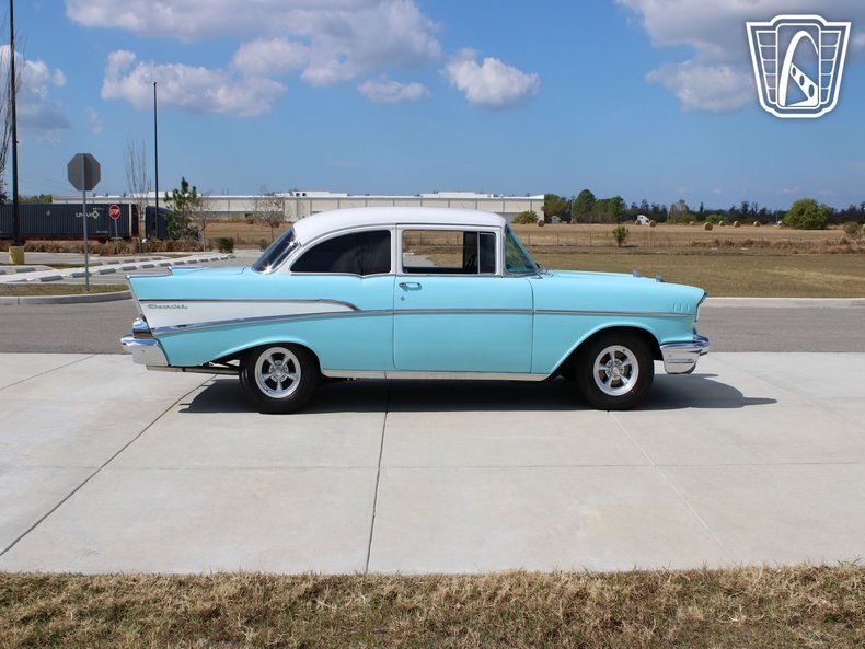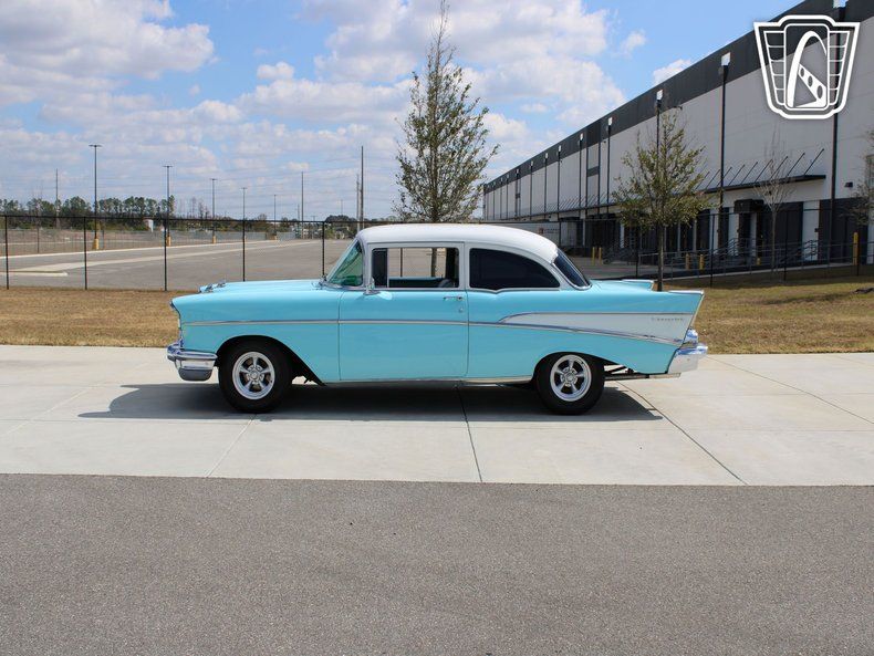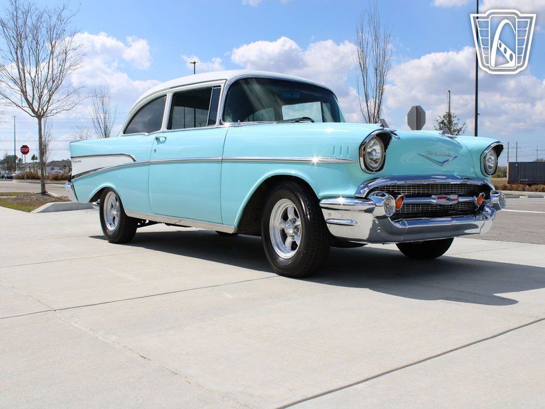 Gateway Classic Cars of Tampa is proud to digitally offer this clean 1957 Chevrolet 210. This Larkspur Blue and white beauty is a great example of going back to basics and not overcomplicating things. A base 210 post with a bench seat, crate 350ci, and a 5-speed manual is all you need. Front disk brakes and Hotchkis front and rear anti-roll bars keep this Tri-Five handling better than it ever did new. On the inside, it's pretty much how Chevrolet designed it except for Dakota Digital gauges and an aftermarket steering wheel. The 350 is peppy, the clutch is not too stiff, and the 5-speed trans make for an enjoyable driving experience. The chrome has a nice shine and overall, the car is a super nice driver sure to turn heads anywhere you go. And did we mention, this '57 has been a featured magazine car. Pop in the America Graffiti soundtrack and go cruise the strip. Looking for a solid '57, we've got one.