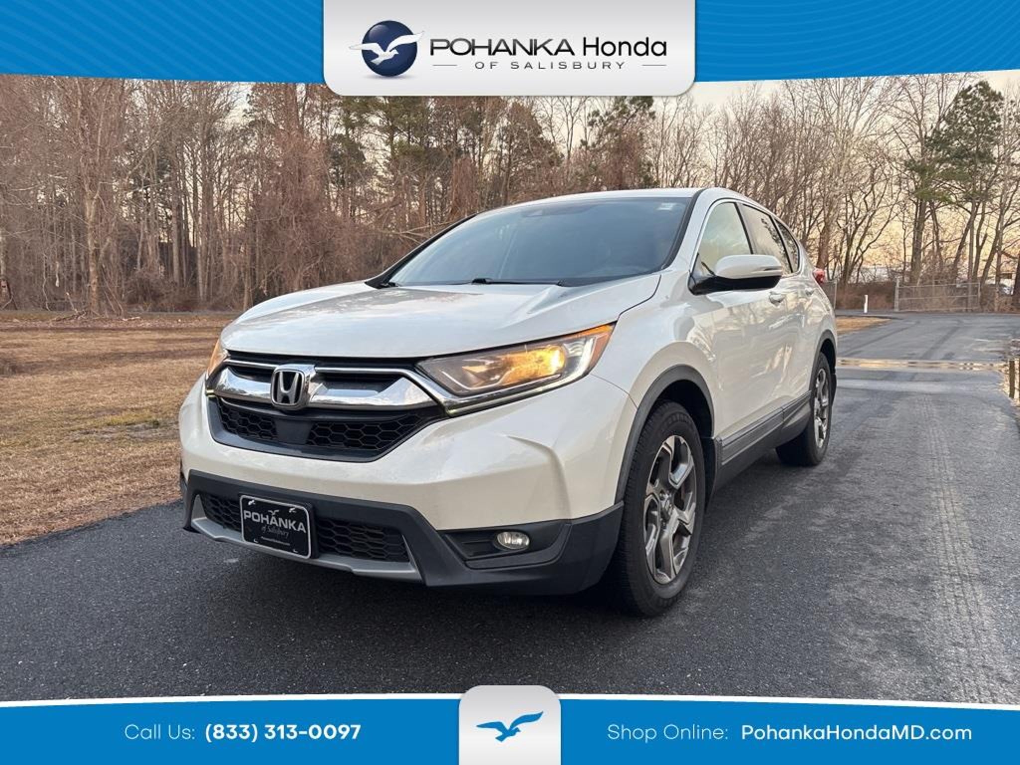Certified. CARFAX One-Owner. This 2018 White Diamond Pearl Honda CR-V EX FWD is well equipped. HondaTrue Used Certified comes with 100 days/5,000 miles powertrain warranty. 1 complimentary oil change with in the first year. Recent Arrival! 2018 Honda CR-V EX CVT 1.5L I4 DOHC 16V FWD 28/34 City/Highway MPG Maryland State Inspected, Huge Discounts For Local Heroes *MILITARY *VETERANS *FIRST RESPONDERS *TEACHERS, Our Best Online Pricing, Guaranteed Financing, CarFax One Owner, Rear View Camera, HondaTrue Used Certified, Low Miles, Power Sunroof. Odometer is 18587 miles below market average! 28/34 City/Highway MPG HondaTrue Used Details: * Honda Care Roadside Assitance for 1 year/12,000 miles whichever comes first). Trip Interruption and Concierge Service for 1 year/12,000 miles (whichever occurs first) beginning at the expiration of the New Vehicle Limited Warranty, or from the date of sale of the vehicle if the New Vehicle Limited Warranty has expired at the time of sale. 2015 and newer models, Honda Roadside Assistance is available throughout the New Vehicle Limited Warranty period. One complimentary oil change within the first year of ownership. SiriusXM 90-Day free trial. * Vehicle History * Roadside Assistance * Warranty Deductible: $0 * Limited Warranty: 5,000 Mile 100-days/5000 miles(whichever comes first) after new car warranty expires or from certified purchase date * Powertrain Limited Warranty: 5,000 Mile 100-days/5000 miles(whichever comes first) after new car warranty expires or from certified purchase date * Transferable Warranty * 112 Point Inspection Awards: * Motor Trend Automobiles of the year * 2018 KBB.com 10 Most Awarded Brands * 2018 KBB.com Brand Image Awards Kelley Blue Book Brand Image Awards are based on the Brand Watch(tm) study from Kelley Blue Book Market Intelligence. Award calculated among non-luxury shoppers. For more information, visit Kelley Blue Book is a registered trademark of Kelley Blue Book Co., Inc. Every effort has been made to ensure the accuracy of this listing; however, errors or omissions may occur. Pricing, incentives, and availability are subject to change without notice due to market conditions. All prices exclude tax, tags, and an $800 dealer processing fee (not required by law). Sales tax is determined by the buyer's residence, not the dealership location. See dealer for complete details at Pohanka Honda of Salisbury.