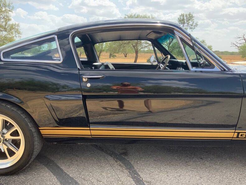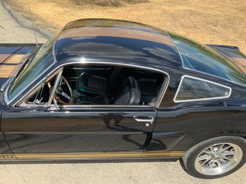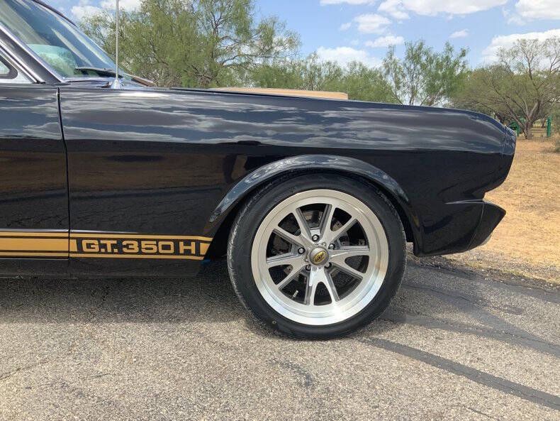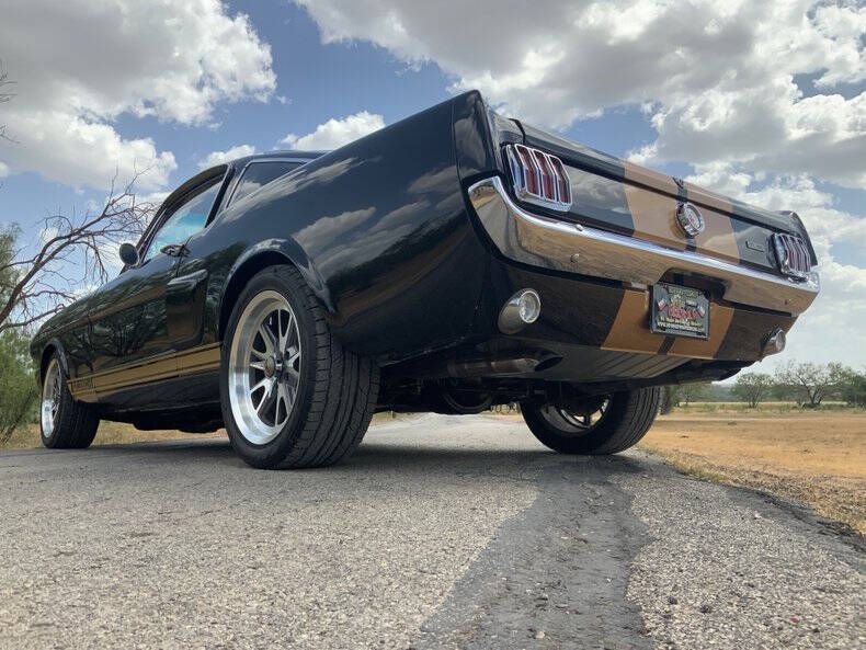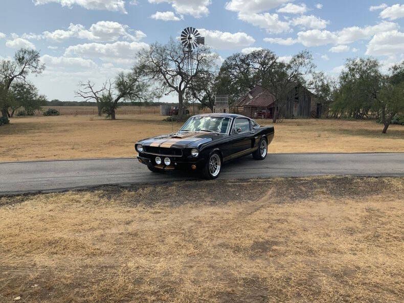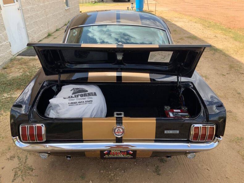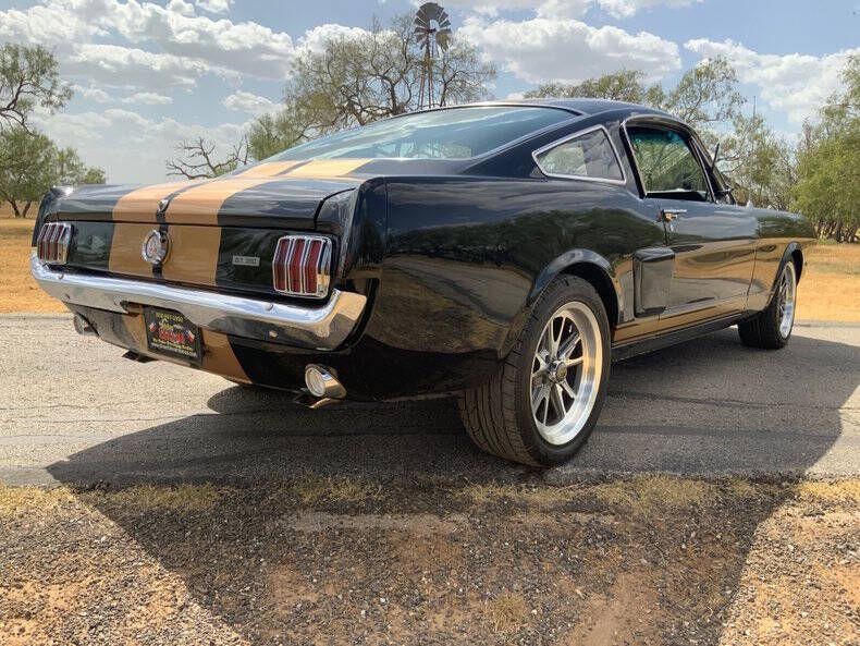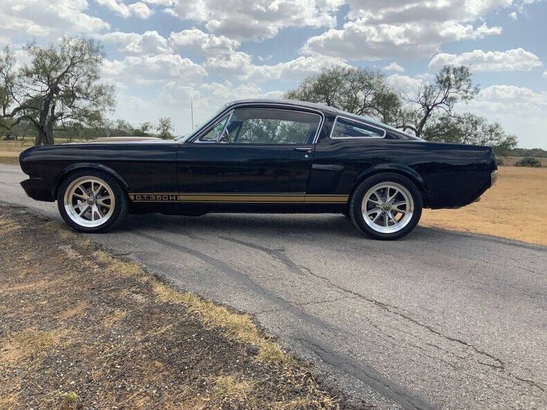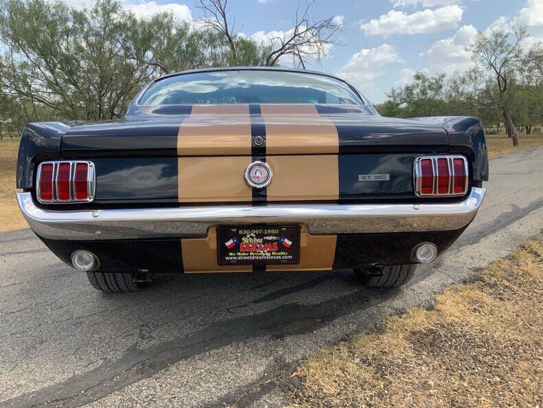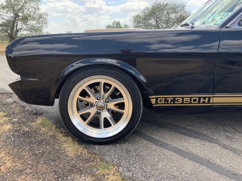Welcome to Street Dreams Texas as we celebrate our 27th year in the classic and muscle car business. Since 1999, we've specialized in putting dreams in driveways - and this one is the kind of dream that shows up loud, fast, and unapologetic. Feast your eyes on this wicked 1965 Shelby GT350-H Tribute, one of the wildest Mustangs we've had the pleasure of driving. The H refers to Hertz, the century-old rental car company that partnered with Shelby American in 1966 to supply high-performance Mustangs for its Sports Car Club program - a partnership forever linked with Carroll Shelby. While most originals were finished in black and gold, a handful were delivered in other colors - including 61 red cars without stripes - making the history as cool as the cars themselves. This gorgeous '65 captures that iconic black-and-gold presence - but what's under the hood is where this car separates itself from the past. Modern Muscle Beneath a Classic Hood Lift the scooped fiberglass hood and you'll find a Ford 5.0L DOHC 32-valve Coyote V8 - a 7,000 RPM screamer that produces FAR more power than an original Shelby ever dreamed of. This all-aluminum powerhouse delivers explosive acceleration, razor-sharp throttle response, and a soundtrack that is nothing short of addictive. Supporting performance upgrades include: Custom stainless 80mm throttle body air induction system i Speed Inc. return-style fuel system Stainless Works long-tube headers High-capacity 8-quart oil pan Aluminum radiator with electric fan SCT Performance tuning This is modern Ford performance wrapped in vintage attitude. Built to Drive - Hard Power is routed through a Spec clutch to a Tremec TKO600 5-speed manual transmission and into a bulletproof Ford 9-inch rear end with aggressive 3.90 gears. The result? Brutal acceleration and highway-friendly cruising in fifth gear. Handling and braking match the horsepower thanks to: Heidts front subframe Tubular steel control arms Coil-over shocks Heidts Power rack-and-pinion steering HD front and rear stabilizer bars 4-wheel disc brakes with drilled and slotted rotors Custom 2.5-inch MagnaFlow stainless exhaust with X-pipe The power-to-weight ratio is astounding - plenty of power, no waiting - and the car feels planted, responsive, and confidence-inspiring whether carving corners or cruising the boulevard. Nitto high-performance tires (225/45ZR17 front, 245/45ZR17 rear) wrap alloy wheels with Hertz Sport Car Club spinners, giving the car an aggressive stance that perfectly balances vintage style and modern grip. Rotisserie Restoration & Show-Stopping Presence This Mustang began life as a solid 1965 fastback and underwent a comprehensive rotisserie restoration. The body was meticulously massaged into a wave-free, arrow-straight canvas before being finished in Ford Code A Raven Black basecoat/clearcoat and topped with Code Z Sauterne Gold Metallic Shelby stripes, complete with correct G.T. 350 H callouts. Highlights include: Fresh Ceramic Coating Shelby-style grille with offset Mustang emblem Shelby GT350R front valance with Elanor Style Fog Lights Fiberglass hood with Shelby scoop Shelby exclusive plexi-glass rear quarter inserts Chrome GT350 fuel filler cap Excellent brightwork and trim throughout Classic Interior with Driver-Focused Upgrades Inside, you'll find a nicely restored factory-style black vinyl interior that honors Shelby tradition while delivering modern comfort. Features include: Classic Instruments Shelby gauges Tilt steering column Shelby Moto-Lita teak wood steering wheel Billet shifter Shelby-branded seat belts Clean black carpet and tight headliner Air conditioning for comfortable cruising Custom Stereo with sub woofer The cockpit feels authentic, focused, and ready for action. Pro-touring cars remain one of the hottest segments in the collector market because they deliver the best of both worlds - classic muscle car swagger with modern performance and reliability. Ent