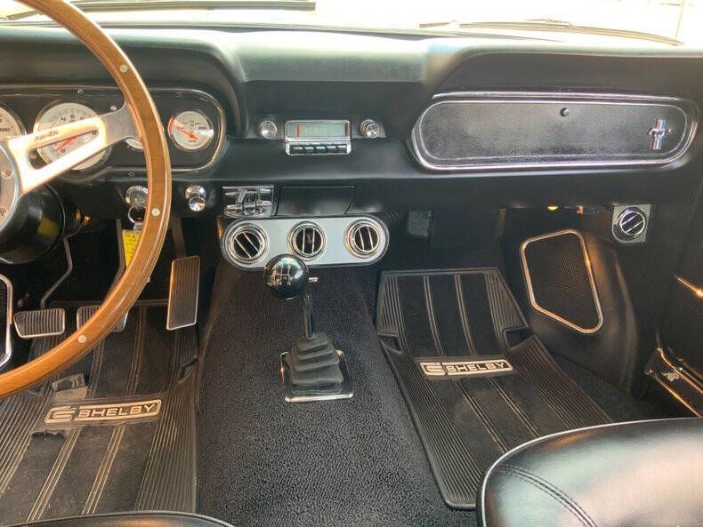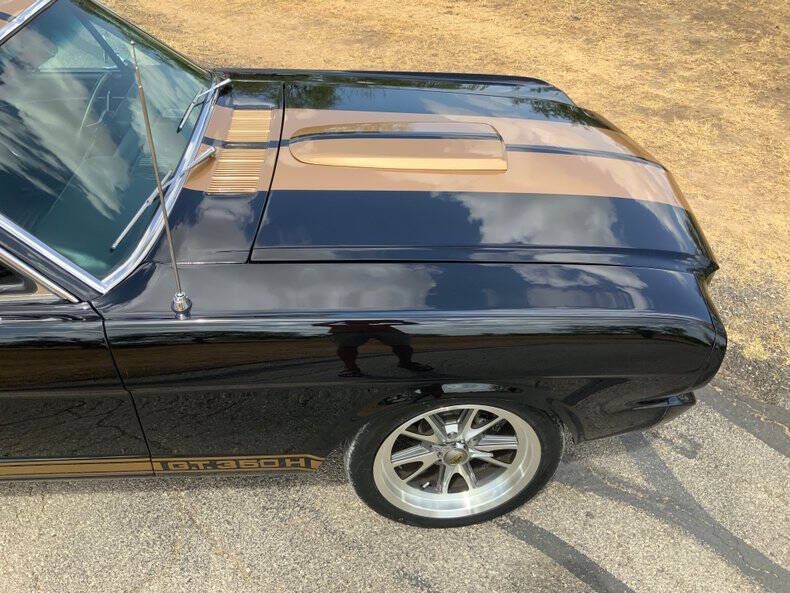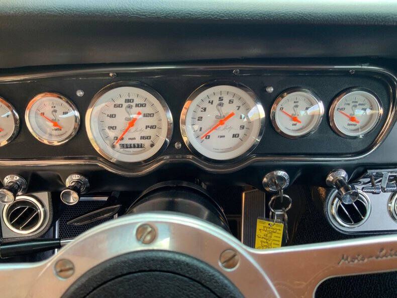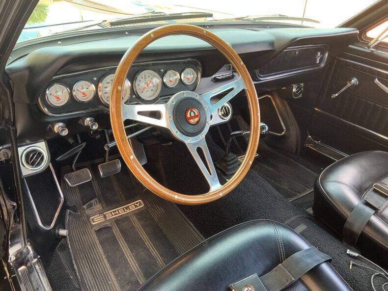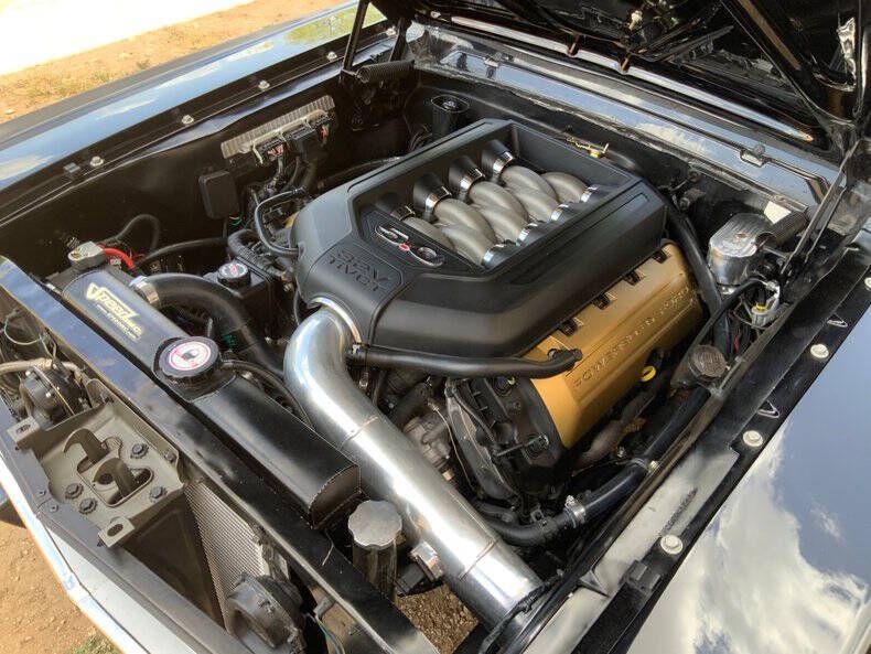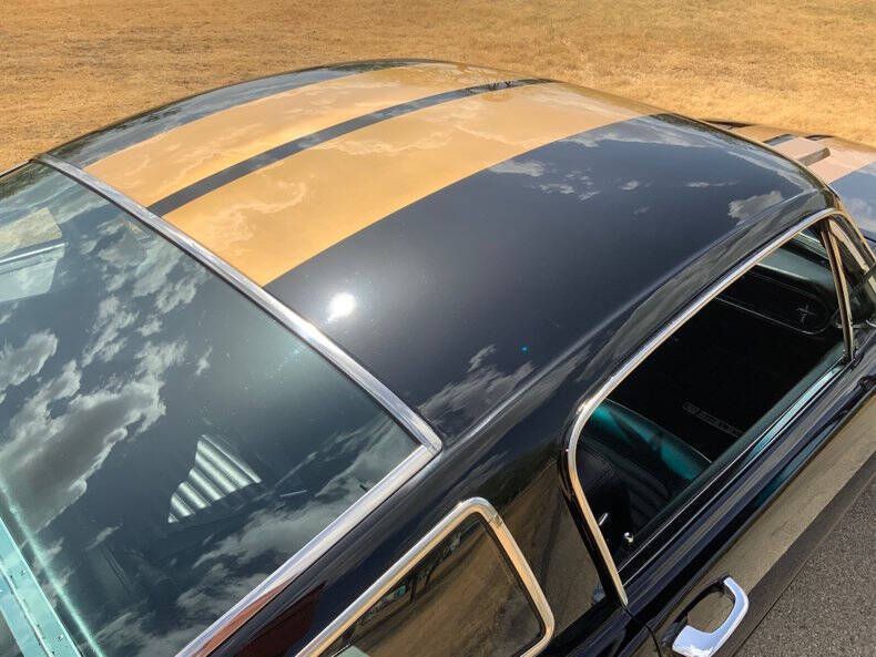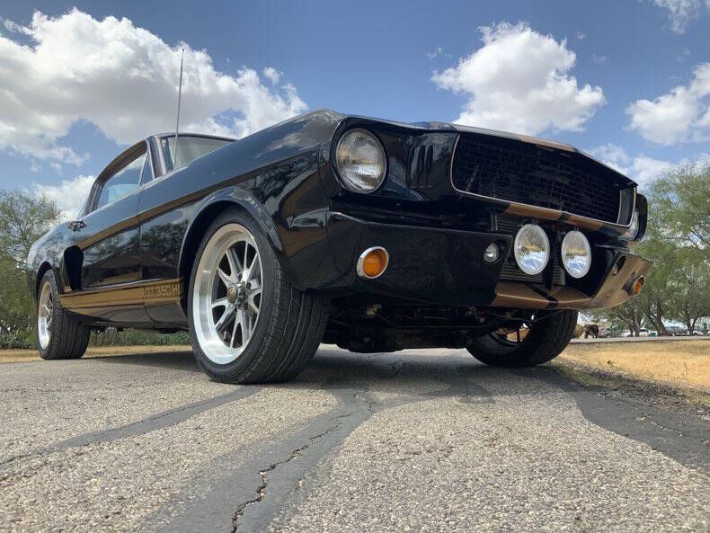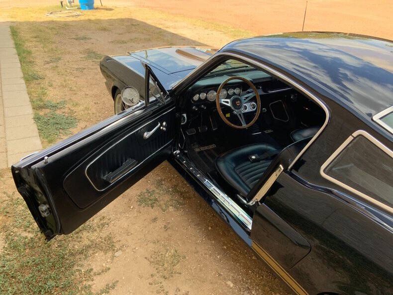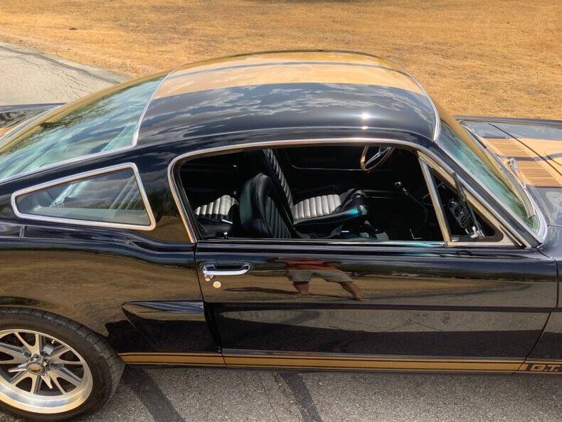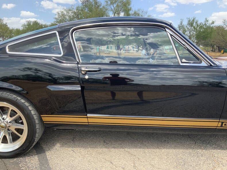 Welcome to Street Dreams Texas as we celebrate our 27th year in the classic and muscle car business. Since 1999, we've specialized in putting dreams in driveways - and this one is the kind of dream that shows up loud, fast, and unapologetic. Feast your eyes on this wicked 1965 Shelby GT350-H Tribute, one of the wildest Mustangs we've had the pleasure of driving. The H refers to Hertz, the century-old rental car company that partnered with Shelby American in 1966 to supply high-performance Mustangs for its Sports Car Club program - a partnership forever linked with Carroll Shelby. While most originals were finished in black and gold, a handful were delivered in other colors - including 61 red cars without stripes - making the history as cool as the cars themselves. This gorgeous '65 captures that iconic black-and-gold presence - but what's under the hood is where this car separates itself from the past. Modern Muscle Beneath a Classic Hood Lift the scooped fiberglass hood and you'll find a Ford 5.0L DOHC 32-valve Coyote V8 - a 7,000 RPM screamer that produces FAR more power than an original Shelby ever dreamed of. This all-aluminum powerhouse delivers explosive acceleration, razor-sharp throttle response, and a soundtrack that is nothing short of addictive. Supporting performance upgrades include: Custom stainless 80mm throttle body air induction system i Speed Inc. return-style fuel system Stainless Works long-tube headers High-capacity 8-quart oil pan Aluminum radiator with electric fan SCT Performance tuning This is modern Ford performance wrapped in vintage attitude. Built to Drive - Hard Power is routed through a Spec clutch to a Tremec TKO600 5-speed manual transmission and into a bulletproof Ford 9-inch rear end with aggressive 3.90 gears. The result? Brutal acceleration and highway-friendly cruising in fifth gear. Handling and braking match the horsepower thanks to: Heidts front subframe Tubular steel control arms Coil-over shocks Heidts Power rack-and-pinion steering HD front and rear stabilizer bars 4-wheel disc brakes with drilled and slotted rotors Custom 2.5-inch MagnaFlow stainless exhaust with X-pipe The power-to-weight ratio is astounding - plenty of power, no waiting - and the car feels planted, responsive, and confidence-inspiring whether carving corners or cruising the boulevard. Nitto high-performance tires (225/45ZR17 front, 245/45ZR17 rear) wrap alloy wheels with Hertz Sport Car Club spinners, giving the car an aggressive stance that perfectly balances vintage style and modern grip. Rotisserie Restoration & Show-Stopping Presence This Mustang began life as a solid 1965 fastback and underwent a comprehensive rotisserie restoration. The body was meticulously massaged into a wave-free, arrow-straight canvas before being finished in Ford Code A Raven Black basecoat/clearcoat and topped with Code Z Sauterne Gold Metallic Shelby stripes, complete with correct G.T. 350 H callouts. Highlights include: Fresh Ceramic Coating Shelby-style grille with offset Mustang emblem Shelby GT350R front valance with Elanor Style Fog Lights Fiberglass hood with Shelby scoop Shelby exclusive plexi-glass rear quarter inserts Chrome GT350 fuel filler cap Excellent brightwork and trim throughout Classic Interior with Driver-Focused Upgrades Inside, you'll find a nicely restored factory-style black vinyl interior that honors Shelby tradition while delivering modern comfort. Features include: Classic Instruments Shelby gauges Tilt steering column Shelby Moto-Lita teak wood steering wheel Billet shifter Shelby-branded seat belts Clean black carpet and tight headliner Air conditioning for comfortable cruising Custom Stereo with sub woofer The cockpit feels authentic, focused, and ready for action. Pro-touring cars remain one of the hottest segments in the collector market because they deliver the best of both worlds - classic muscle car swagger with modern performance and reliability. Ent