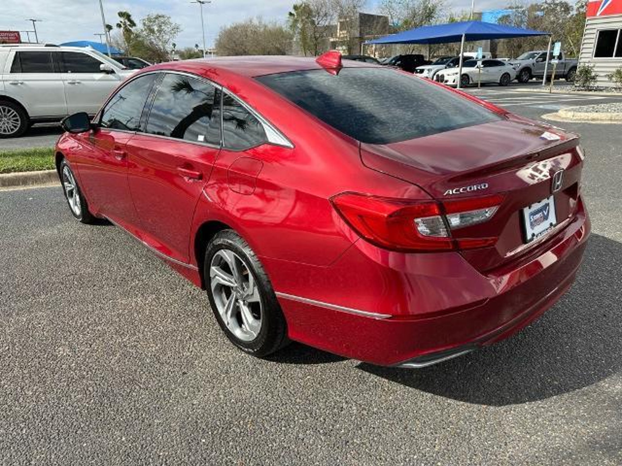 This 2019 Honda Accord EX-L in Radiant Red Metallic comes with the following features: 1.5T I4 DOHC 16V Turbocharged VTEC CVT FWD Gray Leather, 10 Speakers, 17 Machine-Finished Alloy Wheels, 4-Wheel Disc Brakes, ABS brakes, Air Conditioning, Alloy wheels, AM/FM radio: SiriusXM, Apple CarPlay/Android Auto, Auto High-beam Headlights, Auto-dimming Rear-View mirror, Automatic temperature control, Blind Spot Information (BSI) System warning, Brake assist, Bumpers: body-color, Delay-off headlights, Driver door bin, Driver vanity mirror, Dual front impact airbags, Dual front side impact airbags, Electronic Stability Control, Emergency communication system: HondaLink, Exterior Parking Camera Rear, Forward collision: Collision Mitigation Braking System (CMBS) FCW mitigation, Four wheel independent suspension, Front anti-roll bar, Front Bucket Seats, Front Center Armrest, Front dual zone A/C, Front fog lights, Front reading lights, Fully automatic headlights, Garage door transmitter: HomeLink, Heated door mirrors, Heated Front Bucket Seats, Heated front seats, Illuminated entry, Knee airbag, Leather Shift Knob, Leather steering wheel, Leather-Trimmed Seats, Low tire pressure warning, Memory seat, Occupant sensing airbag, Outside temperature display, Overhead airbag, Overhead console, Panic alarm, Passenger door bin, Passenger vanity mirror, Power door mirrors, Power driver seat, Power moonroof, Power passenger seat, Power steering, Power windows, Radio data system, Radio: 450-Watt AM/FM/HD Premium Audio System, Rear anti-roll bar, Rear seat center armrest, Rear window defroster, Remote keyless entry, Security system, Speed control, Speed-sensing steering, Speed-Sensitive Wipers, Split folding rear seat, Steering wheel mounted audio controls, Tachometer, Telescoping steering wheel, Tilt steering wheel, Traction control, Trip computer, Turn signal indicator mirrors, and Variably intermittent wipers. Sames Auto Group stores have been in business for over 115 years, as part of the Oldest Auto Group in Texas we're committed to providing exceptional service before, during, and after your purchase. Our expert team at Sames Ford Lincoln of McAllen will ensure you drive away completely satisfied. Schedule your virtual consultation or test drive today. No hassle remote delivery to Houston, Austin and San Antonio and the rest of Texas available upon request. Awards: * JD Power Automotive Performance, Execution and Layout (APEAL) Study * ALG Residual Value Awards, Residual Value Awards