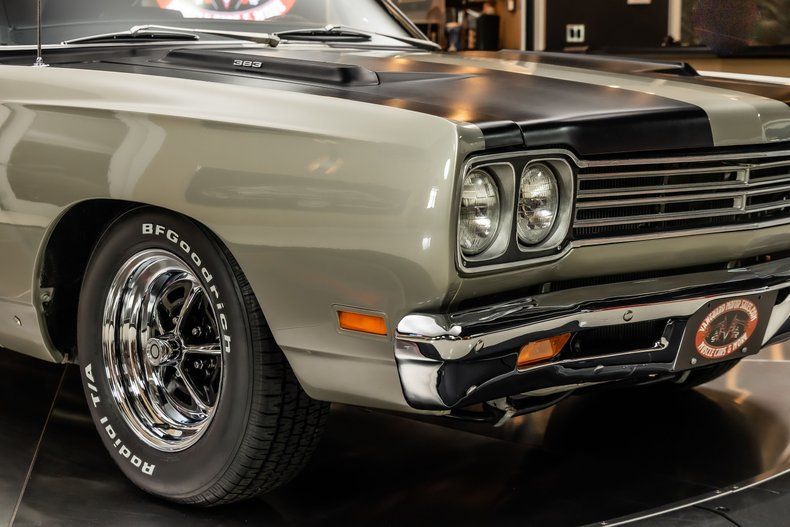 Check out this beautiful 1969 Plymouth Roadrunner! This Roadrunner has undergone a complete & meticulous frame-off restoration with no expense spared! This Roadrunner has been finished in Silver with a Black Vinyl Top, Black Hood Accents and features Magnum 500 Wheels Wrapped In BFGoodrich Radial T/A Tires! Under the hood sits a Numbers Matching Mopar 383ci V8 paired with a Holley Four Barrel Carburetor! Power is sent to the rear wheels through a A833 4 Speed Manual Transmission, & an 8 3/4 Rear End with a 3.23:1 Gear Ratio. Additional Features Include, Manual Brakes, Four Wheel Drum Brakes, Manual Steering, New Hardware, New Brake Lines, New Factory Style Suspension, New Fuel Lines and a New Gas Tank!