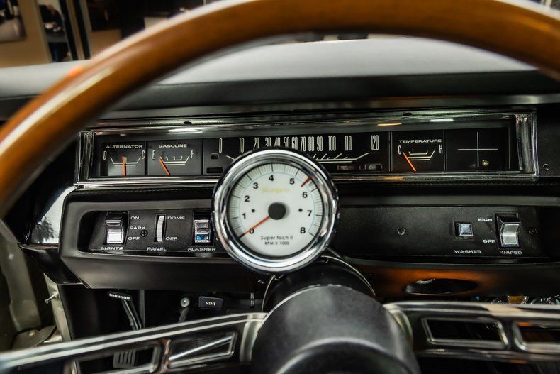 Inside, this Roadrunner is a fully restored cabin finished in Black along with the Black dashboard with Wood Grained and Pained Accents. The cabin features Front Bucket Seating, Rear Bench Seating, New Carpeting, Lap Belts & the Manual Floor Shifter! On the dash is Factory Gauges with Column Mounted Tachometer and the Wooden steering wheel! This Roadrunner also features a Finished Trunk with the Spare tire! The underside has been Painted to match the rest of the car and features a new Exhaust System!