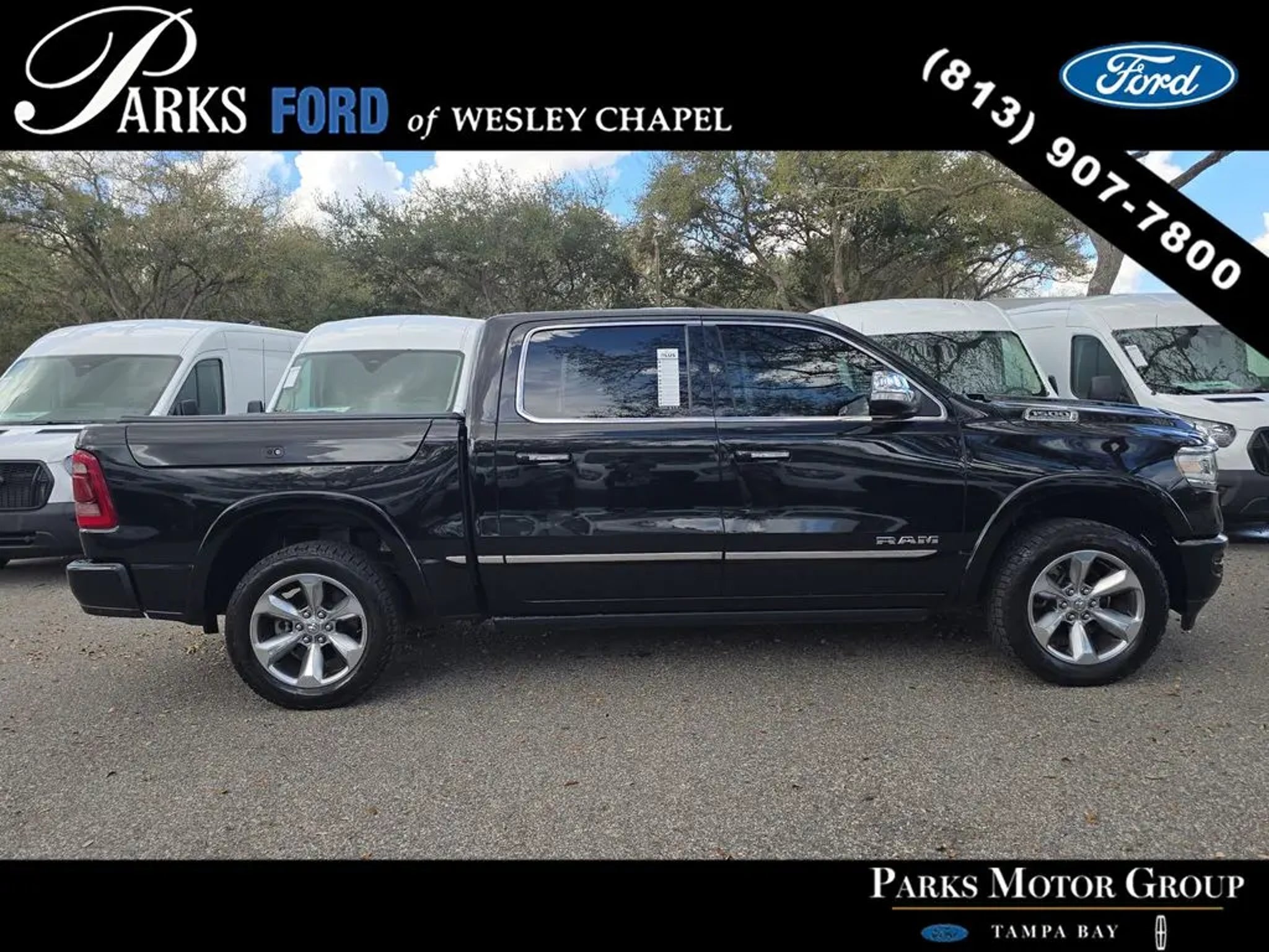 This 2021 Ram 1500 Limited Crew Cab 4x4 delivers flagship-level luxury, proven 5.7L HEMI V8 performance, and advanced suspension technology in one of the most refined full-size pickups on the market. With just 18,898 miles and Blue Certified status, this Limited represents a high-content configuration designed for buyers who want premium comfort without stepping into new-truck pricing. Under the hood is the 5.7L HEMI V8 with eTorque mild hybrid system paired with the 8-speed automatic transmission. The 48-volt belt starter generator enhances low-speed torque response and smooths start/stop transitions while maintaining strong towing capability. The 3.92 rear axle ratio and anti-spin differential maximize performance and traction, while the Class IV receiver hitch supports serious trailering demands. The 4-Corner Air Suspension system is a defining feature, allowing adjustable ride height for improved aerodynamics on the highway, easier entry and exit, or increased ground clearance when needed. This system significantly enhances ride quality compared to conventional coil or leaf spring setups. Finished in Diamond Black Crystal Pearl-Coat over Black premium leather-trimmed bucket seats, this Limited stands apart visually. 20-inch polished wheels with inserts, power running boards, LED lighting front and rear, rain-sensing wipers, power tailgate release, and the multi-function tailgate deliver both style and everyday convenience. The RamBox Cargo Management System adds lockable, illuminated bedside storage rarely found on competing trucks. Inside, the Limited trim reflects true luxury-truck status. Heated and ventilated front seats, heated and ventilated rear seats, heated leather-wrapped steering wheel, wood and leather interior accents, power adjustable pedals with memory, wireless charging pad, 115-volt outlet, and dual-zone automatic climate control create an upscale cabin experience. The Limited Level 1 Equipment Group adds Harman Kardon 19-speaker premium audio, adaptive cruise control with stop and go, lane keep assist, pedestrian emergency braking, surround-view camera system, and parallel/perpendicular park assist. The Uconnect 12-inch touchscreen with navigation, SiriusXM 360L capability, Apple CarPlay, Android Auto, and connected services provides modern connectivity and intuitive control. Safety features include blind-spot and cross-path detection, front and rear park assist with stop, forward collision warning plus, advanced multistage airbags, and electronic stability systems designed to enhance driver confidence. As a Blue Certified vehicle, this Ram has passed a comprehensive multi-point inspection and includes manufacturer-backed limited warranty coverage and roadside assistance, providing added peace of mind. Through the Parks Plus program, this vehicle also includes exterior and interior surface protection, VIN etching anti-theft security, roadside assistance enhancements, ID theft protection services, and additional long-term ownership benefits designed to help safeguard your investment. If you are searching in the Tampa Bay area for a low-mileage luxury 4x4 with HEMI V8 power, air suspension ride quality, RamBox storage, and top-tier interior refinement, this Ram 1500 Limited stands at the top of the segment. High-content Limited models with this mileage continue to attract strong demand. Contact Parks Ford today to schedule your test drive.