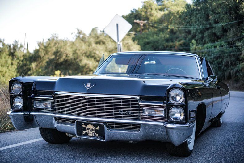CONDITION This 1968 Cadillac Coupe DeVille is a striking full-size classic finished in black with a red interior and featured in Justin Bieber's "Peaches" video. It is equipped with its original 472 big block V8, and the engine has been rebuilt with 20,000 miles. The car retains the original transmission and runs strong with no leaks, no smoke, and no knocking. The body is clean with no rust. Exterior chrome shows some oxidation, and some chrome pieces have been blacked out for a custom touch. Inside, the red interior delivers timeless Cadillac luxury, and the dash includes automatic climate control. It also features airbags and a Bluetooth boom box sound system for a modern twist while keeping the car's classic character intact.
