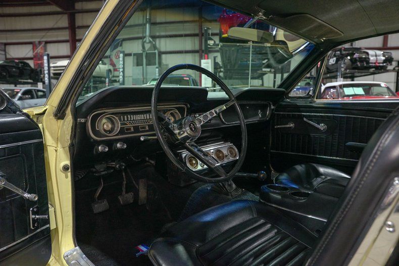 GR Auto Gallery is pleased to bring this beautiful 1965 Ford Mustang 2 Door coupe to market. The car comes to us finished in its original factory color combination: Springtime Yellow over black interior. It is powered by Ford's legendary 200 Cubic Inch inline six cylinder engine, 3 speed manual transmission and rear wheel drive. The car is optioned with power steering, power brakes, and Ford airconditioning.