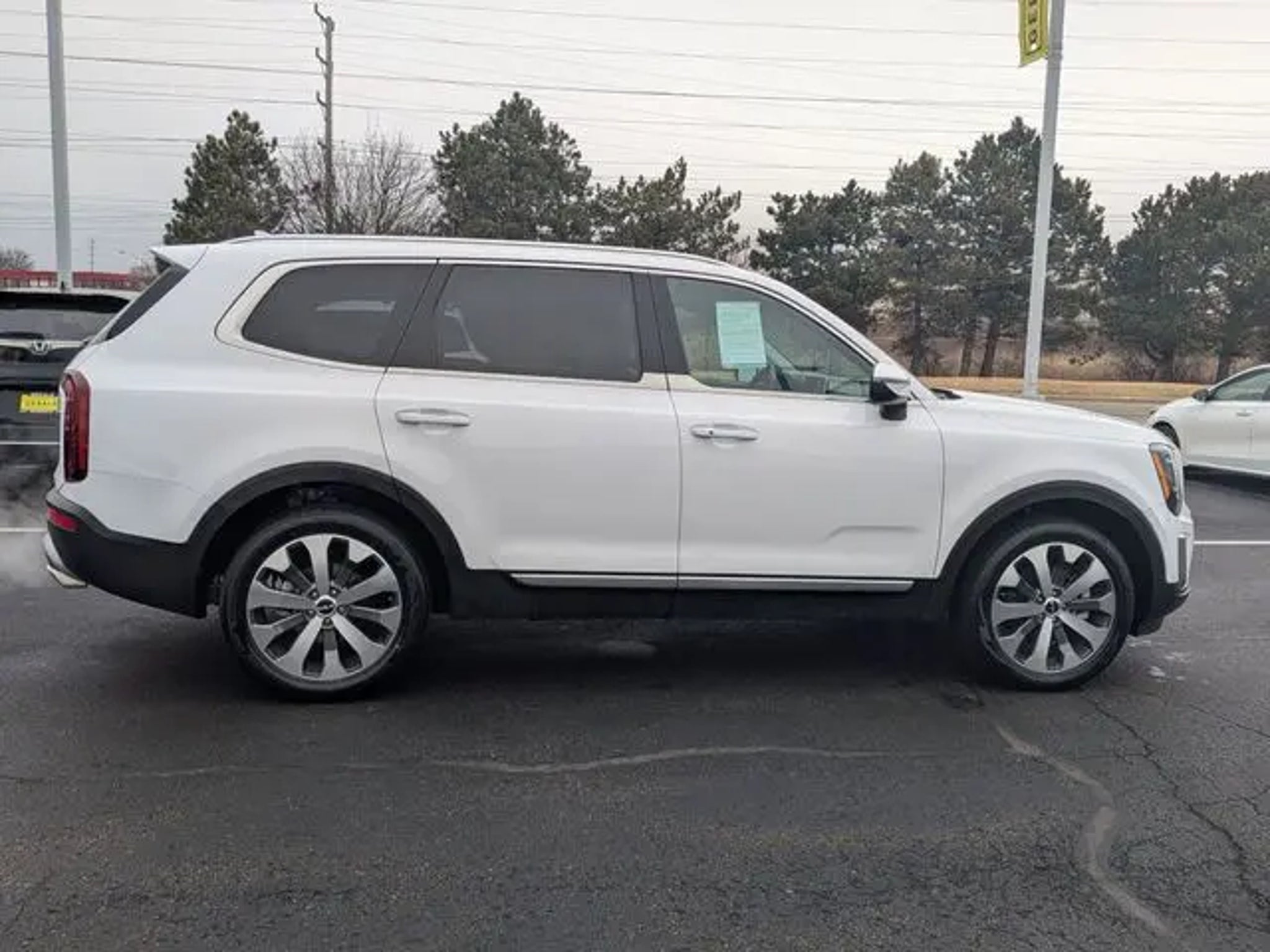 Recent Arrival! 2022 Kia Telluride S Glacial White Pearl *BLUETOOTH, *HEATED SEATS, *LEATHER INTERIOR, *NAVIGATION, *ONE OWNER, *REAR VIEW CAMERA, *SUNROOF/MOONROOF, 20 x 7.5 Machined Alloy Wheels, 3.648 Axle Ratio, 3rd row seats: split-bench, 4-Wheel Disc Brakes, 6 Speakers, ABS brakes, Air Conditioning, Alloy wheels, AM/FM radio: SiriusXM, Apple CarPlay & Android Auto, Automatic temperature control, Brake assist, Bumpers: body-color, Carpeted Floor Mats, Delay-off headlights, Driver door bin, Driver vanity mirror, Dual front impact airbags, Dual front side impact airbags, Electronic Stability Control, Emergency communication system: 911 Connect, Four wheel independent suspension, Front anti-roll bar, Front Bucket Seats, Front Center Armrest, Front dual zone A/C, Front reading lights, Fully automatic headlights, Heated door mirrors, Heated Front Bucket Seats, Heated front seats, Illuminated entry, Knee airbag, Leather Shift Knob, Leather steering wheel, Low tire pressure warning, Navigation System, Occupant sensing airbag, Outside temperature display, Overhead airbag, Overhead console, Panic alarm, Passenger door bin, Passenger vanity mirror, Power door mirrors, Power driver seat, Power moonroof, Power steering, Power windows, Radio data system, Radio: AM/FM Display Audio System, Rear air conditioning, Rear anti-roll bar, Rear audio controls, Rear reading lights, Rear window defroster, Rear window wiper, Reclining 3rd row seat, Remote keyless entry, Roof rack: rails only, Security system, Smart Key w/ Push Button and Remote Start, Speed control, Speed-sensing steering, Split folding rear seat, Spoiler, Steering wheel mounted audio controls, Synthetic Leather Seat Trim, Tachometer, Telescoping steering wheel, Tilt steering wheel, Traction control, Trip computer, Turn signal indicator mirrors, Variably intermittent wipers. Kia Certified Pre-Owned Details: * 165 Point Inspection * Transferable Warranty * Includes Rental Car and Trip Interruption Reimbursement. 3 month Sirius trial subscription * Warranty Deductible: $50 * Powertrain Limited Warranty: 120 Month/100,000 Mile (whichever comes first) from original in-service date * Roadside Assistance * Limited Warranty: 12 Month/12,000 Mile (whichever comes first) Platinum Coverage from certified purchase date * Vehicle History Odometer is 25533 miles below market average! 20/26 City/Highway MPG