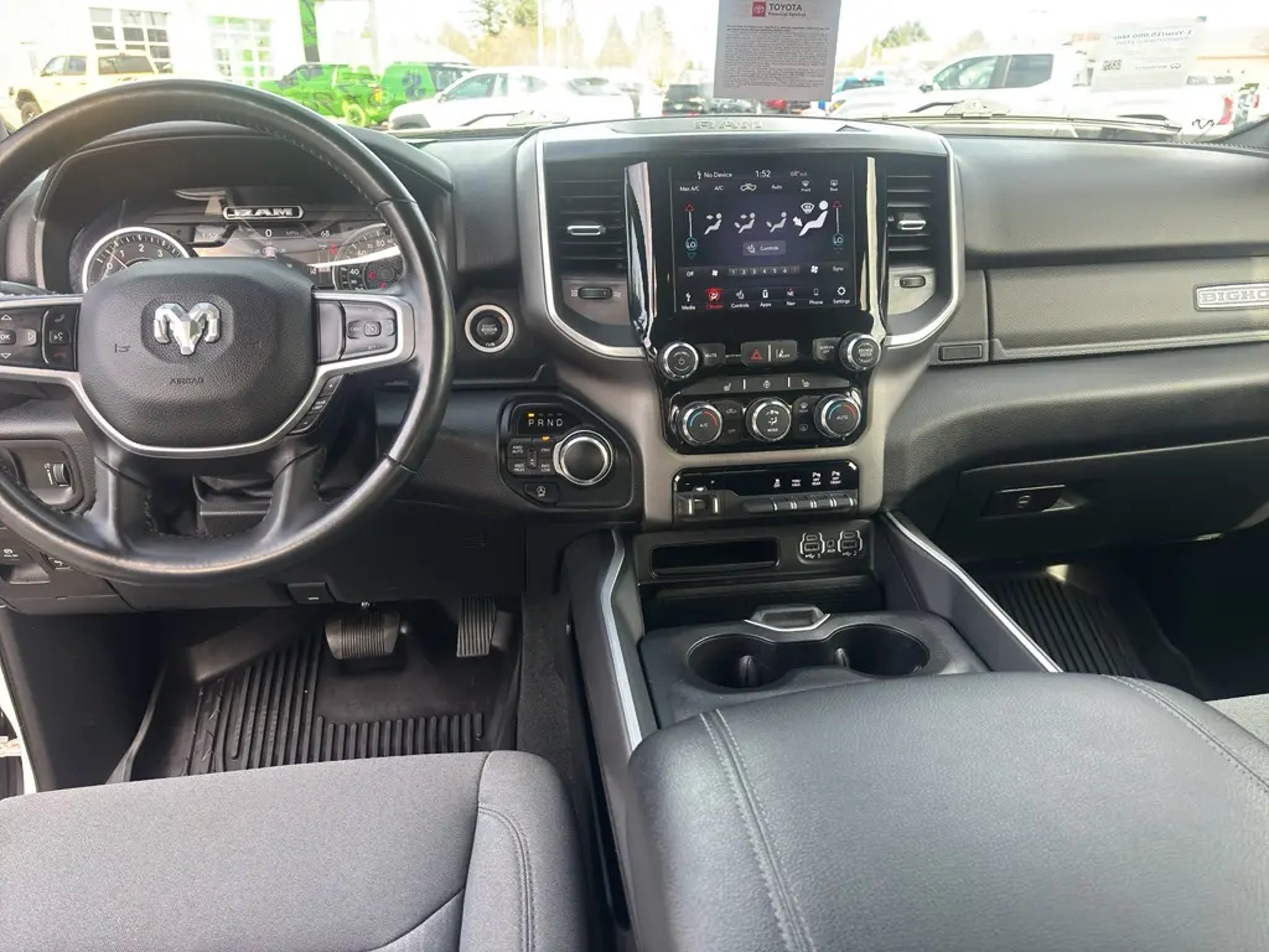 *Equipment* It offers Automatic Climate Control for personalized comfort. This vehicle is a certified CARFAX 1-owner. Apple CarPlay: Seamless smartphone integration for this Ram 1500 - stay connected and entertained on the go! with XM/Sirus Satellite Radio you are no longer restricted by poor quality local radio stations while driving this unit. Anywhere on the planet, you will have hundreds of digital stations to choose from. This Ram 1500 features a hands-free Bluetooth phone system. It has satellite radio capabilities. See what's behind you with the back up camera on this 2021 Ram 1500 . This 1/2 ton pickup is pure luxury with a heated steering wheel. This 1/2 ton pickup has a clean CARFAX vehicle history report. The state of the art park assist system will guide you easily into any spot. The vehicle comes equipped with Android Auto for seamless smartphone integration on the road. Never get into a cold vehicle again with the remote start feature on this 2021 Ram 1500 . *Packages* Quick Order Package 27Z Big Horn: Big Horn Badge. Big Horn Level 2 Equipment Group: SiriusXM Radio Service; Rear Window Defroster; ParkSense Front/rear Park Assist with Stop; Rear View Auto Dim Mirror; Power Adjustable Pedals; For More Info. Call 800-643-2112; Rear Power Sliding Window; Rear Dome with On/off Switch L Glove Box L Power 4-Way Driver Lumbar Adjust; 115V Auxiliary Rear Power Outlet; Media Hub with 2 Charge Only USBs; Power 8-Way Driver Seat; Auto Dim Exterior Driver Mirror; Heated Front Seats; Heated Steering Wheel; Foam Bottle Insert (door Trim Panel); Class IV Receiver Hitch; Security Alarm; Black Premium Power Mirrors; Big Horn Instrument Panel Badge; Remote Start System; SiriusXM Satellite Radio; Exterior Mirrors with Supplemental Signals; Exterior Mirrors Courtesy Lamps; Air Conditioning ATC with Dual Zone Control; 115V Auxiliary Power Outlet; Cluster 7.0" TFT Color Display; Universal Garage Door Opener; Power-Folding Mirrors; 2nd Row in Floor Storage Bins; Sun Visors with Illuminated Vanity Mirrors. Level 1 Safety Group: Advanced Brake Assist; Cluster 3.5" TFT Color Display; Rear View Auto Dim Mirror; Pedestrian Emergency Braking; Full Speed Forward Collision Warning Plus; Lane Keep Assist. Quick Order Package 23Z Big Horn: Big Horn Badge. 20" X 9" Aluminum Chrome Clad Wheels. Uconnect 4C Navigation Radio with 8.4" Display. Deluxe Cloth Bucket Seats. ParkSense Front/rear Park Assist with Stop. Trailer Brake Control. Remote Start System. MOPAR Front and Rear Rubber Floor Mats. 115V Auxiliary Power Outlet. **Equipment listed is based on original vehicle build and subject to change. Please confirm the accuracy of the included equipment by calling the dealer prior to purchase.** *Additional Information* Dealer Disclosure: Price excludes taxes, license and title fees, and a Doc fee of $250