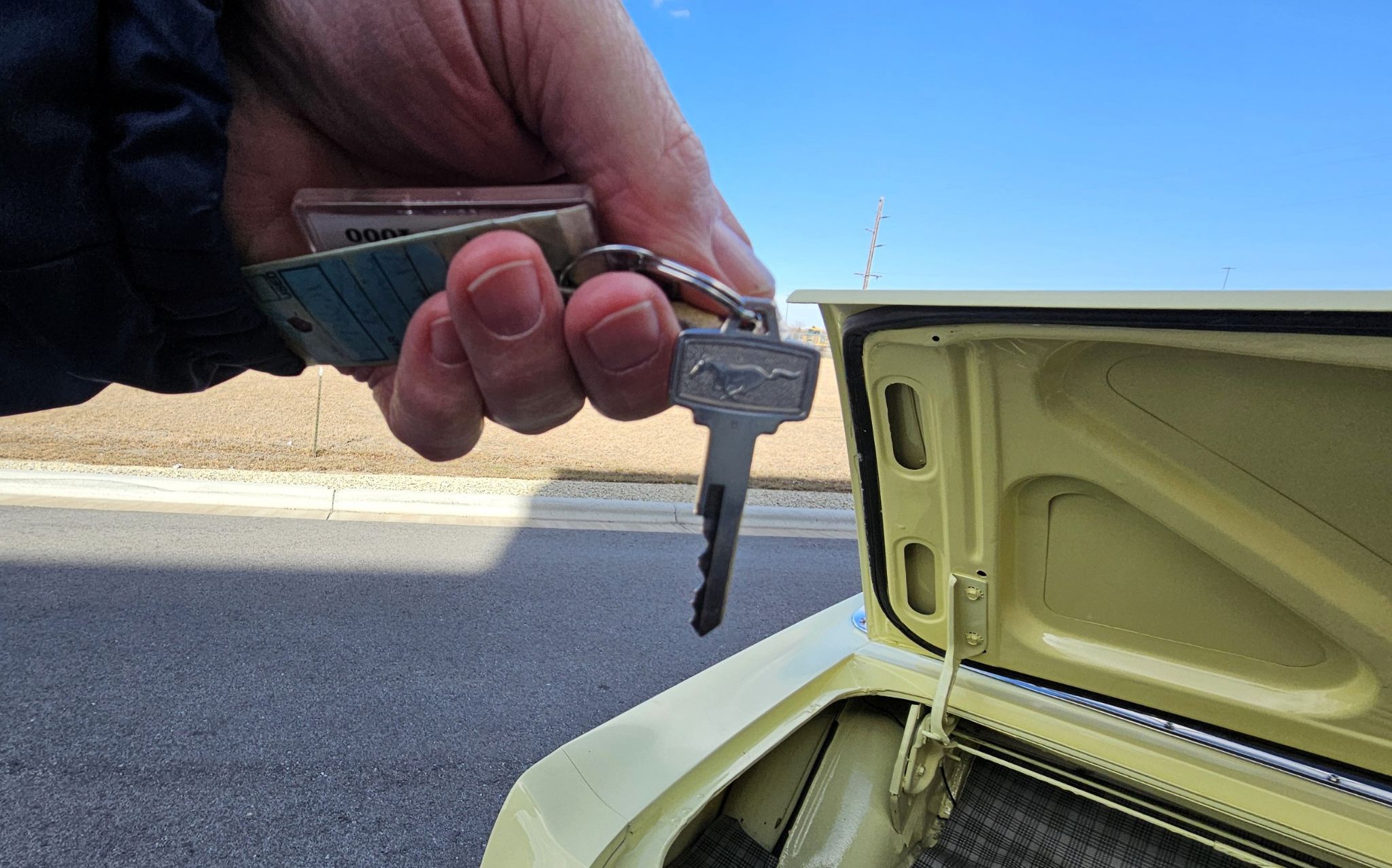 This 1966 Ford Mustang Convertible began it's life in Great Falls Montana where the owners father was a car salesman at Bison Ford. He sold this car new to a School Teacher in the area, who very rarely drove it. In fact, it was put in a barn for several years and was untouched. The owner became related to that School Teacher through marriage and it took him 10 years to convince them to sell it to him. Since it had been sitting for several years in that barn, it needed all new interior and the motor gone through completely. This was done 20 years ago and he has all the receipts to show the work done to the car, which included a repaint back to the factory color of Canary Yellow. It boasts a 6 cylinder engine and an automatic transmission. After this beauty was all fixed up, the owner, a then salesman at a local Ford dealership, parked it on the showroom floor where it was admired for several years. It's currently showing 56,869 miles on the odometer and the owner states that they are original.