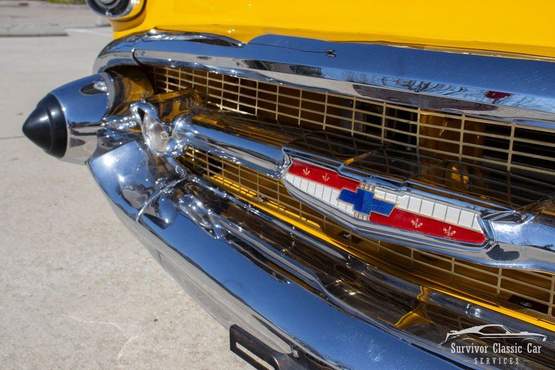It's safe to say that the Bel Air has become America's sweetheart and is one of the most recognized icons of the car world. With its elegant rear fins and anodized aluminum side trim panels. Even though this 1957 Chevrolet is not a Bel-Air, but instead a 210, it still pays tribute those iconic aluminum sails and badging. The Exterior is painted in this bright yellow, which helps accentuate the chrome & Vintage 17in Billet Specialties "Pyscho" Wheels.