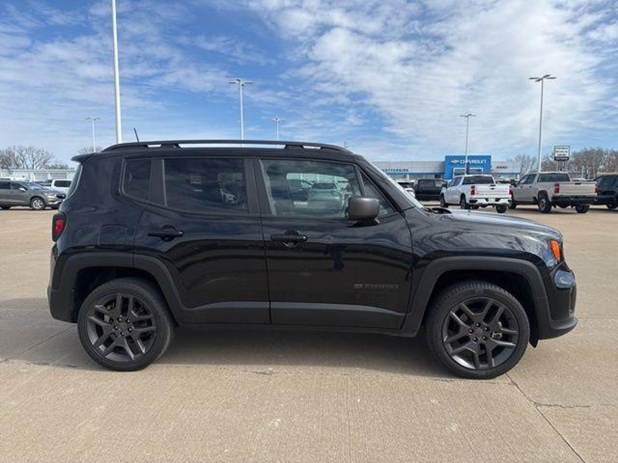 [CARFAX One-Owner. Clean CARFAX. Navigation XM SIRIUS Radio Shottenkirk Certified Fully Serviced and Detailed Bluetooth Rear Back Up Camera Blind spot indicator Tow package Apple Car Play Balance of factory warranty Free Carfax history report Steering Wheel Controls Alloy Wheels Lane Monitor Renegade 80th Edition 4D Sport Utility 2.4L I4 9-Speed 948TE Automatic 4WD Black Clearcoat Black w/Premium Cloth Bucket Seats or 80th Edition Premium Cloth Bucket Seats 1-Year SiriusXM Guardian Trial 3.734 Final Drive Ratio 4 Pin Wiring Harness 4-Wheel Disc Brakes 5-Year SiriusXM Traffic Service 5-Year SiriusXM Travel Link Service 6 Speakers 8.4 Touchscreen Display 80th Edition Premium Cloth Bucket Seats ABS brakes Accent Color Exterior Mirrors Air Conditioning Alloy wheels AM/FM radio: SiriusXM Anti-whiplash front head restraints Apple CarPlay/Android Auto Automatic temperature control Berber Floor Mats w/80th Anniversary Tag Black Headliner Brake assist Class III Receiver Hitch Compass Delay-off headlights Driver door bin Driver vanity mirror Dual front impact airbags Dual front side impact airbags Electronic stabiliy control Emergency communication system: SiriusXM Guardian For Details Visit DriveUconnect.com Four wheel independent suspension Front anti-roll bar Front Bucket Seats Front Center Armrest Front dual zone A/C Front fog lights Front reading lights Fully automatic headlights Gloss Black Steering Wheel Bezel GPS Navigation Granite Crystal Jeep Badge HD Radio Heated door mirrors Illuminated entry Jeep 80th Anniversary Edition Jeep 80th Anniversary Instrumental Panel Badge Keyless Entry w/Panic Alarm Knee airbag Low tire pressure warning Manual Adjust 4-Way Front Passenger Seat Normal Duty Suspension Occupant sensing airbag Outside temperature display Overhead airbag Panic alarm ParkView Rear Back-Up Camera Passenger door bin Passenger vanity mirror Passive Entry Remote Start Package Power door mirrors Power steering Power windows Premium Cloth Bucket Seats Protective Clear Plastic Film - 2 (DISC) Quick Order Package 2XY 80th Edition Radio data system Radio: Uconnect 4 w/7 Display Radio: Uconnect 4C Nav w/8.4 Display Rear anti-roll bar Rear window defroster Rear window wiper Remote keyless entry Remote Start System Roof rack: rails only Satin Granite Exterior Accents Satin Granite Roof Rails Security system SiriusXM Traffic Plus SiriusXM Travel Link Speed control Split folding rear seat Spoiler Steering wheel mounted audio controls Tachometer Telescoping steering wheel Tilt steering wheel Traction control Trailer Tow Group Trip computer Variably intermittent wipers Voltmeter Wheels: 19 x 7.5 Granite Painted Aluminum. Odometer is 12358 miles below market average! 21/29 City/Highway MPG Black Clearcoat 2021 Jeep Renegade 80th Edition 4D Sport Utility 2.4L I4 4WD 6 Months / 6 000 mile Powertrain and Air Conditioning Coverage DENT REPAIR WINDSHIELD REPAIR TIRE AND WHEEL REPAIR PAINT PROTECTION AND NITROGEN IN THE TIRES all for $895.00.] [Shottenkirk Fort Madison is your local full-service Chevrolet, Buick and GMC dealership, proudly serving Burlington, IA and Quincy, IL area drivers with new and used auto sales, financing and service. Whether you're after a brand-new Buick, a pre-owned Chevy or professional automotive maintenance, we're here for you!]
