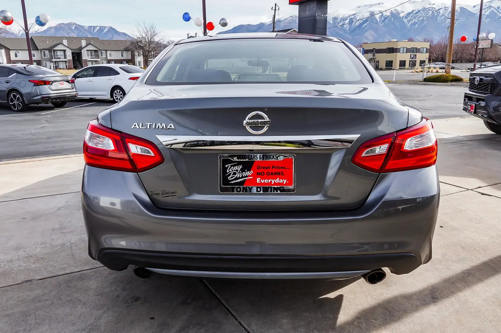 Vehicle located at new Layton location!Tony Divino Used Cars And Trucks 1573 N. Main StreetLayton Utah 84041 Introducing the 2016 Nissan Altima! A comfortable ride with plenty of style! This 4 door, 5 passenger sedan provides exceptional value! Nissan paid particular attention to efficiency and practicality with the following features: speed sensitive wipers, tilt steering wheel, and a split folding rear seat. Under the hood you'll find a 4 cylinder engine with more than 170 horsepower, and for added security, dynamic Stability Control supplements the drivetrain. We pride ourselves on providing excellent customer service. Please don't hesitate to give us a call. * Estimated Monthly Payment will depend on vehicle make and model and will be determined upon actual vehicle inspection. All payments are estimates. Tax, title, registration and documentation fee ($349) are extra.* While every reasonable effort is made to ensure the accuracy of this information, we are not responsible for any errors or omissions contained on these pages. Please verify any information in question with Tony Divino Toyota.