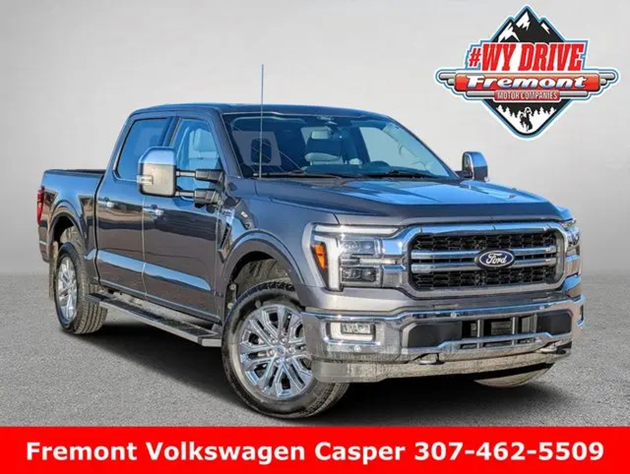 Fremont Certified. 2024 Gray Ford F-150 Lariat 4WD 3.5L V6 EcoBoost 4WD. Fremont Certified Certified, 4WD, 3.31 Axle Ratio, 4-Wheel Disc Brakes, 8 Speakers, ABS brakes, Adjustable pedals, Air Conditioning, Alloy wheels, AM/FM radio: SiriusXM with 360L, Auto High-beam Headlights, Auto-dimming door mirrors, Auto-dimming Rear-View mirror, Automatic temperature control, Brake assist, Bumpers: chrome, Chrome wheels, Compass, Delay-off headlights, Driver door bin, Driver vanity mirror, Dual front impact airbags, Dual front side impact airbags, Electronic Stability Control, Emergency communication system: SYNC 4 911 Assist, Front anti-roll bar, Front Bucket Seats, Front Center Armrest, Front dual zone A/C, Front fog lights, Front reading lights, Front wheel independent suspension, Fully automatic headlights, Garage door transmitter, Heated Door Mirrors, Heated Front Seats, Heated steering wheel, Illuminated entry, Low tire pressure warning, Memory seat, Navigation system: Connected Navigation, Occupant sensing airbag, Outside temperature display, Overhead airbag, Overhead console, Panic alarm, Passenger door bin, Passenger vanity mirror, Pedal memory, Power Door mirrors, Power driver seat, Power passenger seat, Power steering, Power windows, Radio data system, Radio: B&O Sound System by Bang & Olufsen, Rain sensing wipers, Rear reading lights, Rear seat center armrest, Rear step bumper, Rear window defroster, Remote keyless entry, Security system, Speed control, Split folding rear seat, Steering wheel mounted audio controls, SYNC 4 w/Enhanced Voice Recognition, Tachometer, Telescoping steering wheel, Tilt steering wheel, Traction control, Trip computer, Turn signal indicator mirrors, Variably intermittent wipers, Ventilated front seats, Voltmeter, and Wheels: 20 Chrome-Like PVD. Clean CARFAX. Odometer is 817 miles below market average! Certification Program Details: FREMONT CERTIFIED 3 months/3,000 miles Limited Powertrain Warranty VISIT US TODAY At Fremont Motor Companies, We Are Wyoming! We're not just about cars; we're about growing people and communities through relationship-driven transportation. Reach out to see what we offer and discover the perfect vehicle for you. Note: Prices exclude additional fees such as government taxes, finance charges, a dealer documentation fee of $599, emissions testing fees, and others. Prices and details might change, so please contact us for the latest information. WE DELIVER, INQUIRE FOR DETAILS!